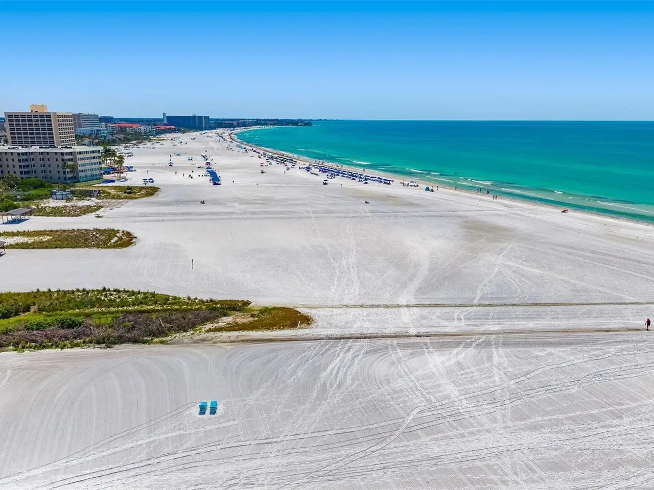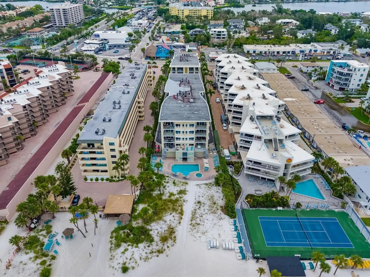 Breathtaking and poised alongside Crescent beach on Siesta Key, discover the rare opportunity to own a spacious beachfront condo that combines contemporary design, durability, and pet-friendly living. With only 26 residences in the community, the Crescent offers an intimate, exclusive lifestyle with an eye-catching façade and meticulously maintained grounds that stands out amongst the adjacent communities. The exterior elegance is paired perfectly with an exceptional, 1,883 square foot interior featuring neutral tones, luxurious furnishings and delightful coastal charm. Three bedrooms and a den afford you the ability to entertain your family and friends with ease while the generous designer kitchen and open concept living area allow you to enjoy every moment and memory of your festivities. Step outside to savor the sea breeze on either one of your two terraces, one with views of the crystal blue waters of the Gulf and the other with a built-in gas grill overlooking the dazzling mid-complex pool. Saunter to the gulf front pool, situated at the western edge of the property, featuring luxury loungers and a soothing whirlpool hot tub. You will feel the difference of the interior luxury finishes while enjoying top of the line amenities including an onsite property manager, social room, modern fitness center, two covered parking spaces, e-vehicle charging stations, an engaged and active homeowner’s association, and professional, onsite rental management. One of the most coveted features of this property is its welcoming pet policy, allowing up to two pets, making it the perfect haven for those that want a beachfront lifestyle that includes the four-legged family members! Location matters on Siesta Key, and this one is considered one of the best. Positioned just across the street from the ‘south village’ is the convenience of grocery, dining, coffee and donut shops, shopping and beach vehicle and equipment rentals. Whether as a primary residence, a vacation retreat, or an investment property, this condo offers a blend of modern comfort, storm-ready construction, and exceptional space all on Siesta Key, Florida’s premier gulf coast destination.construction, and exceptional space all on Siesta Key, Florida’s premier gulf coast destination.