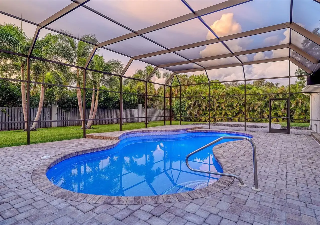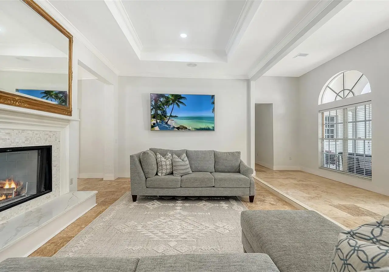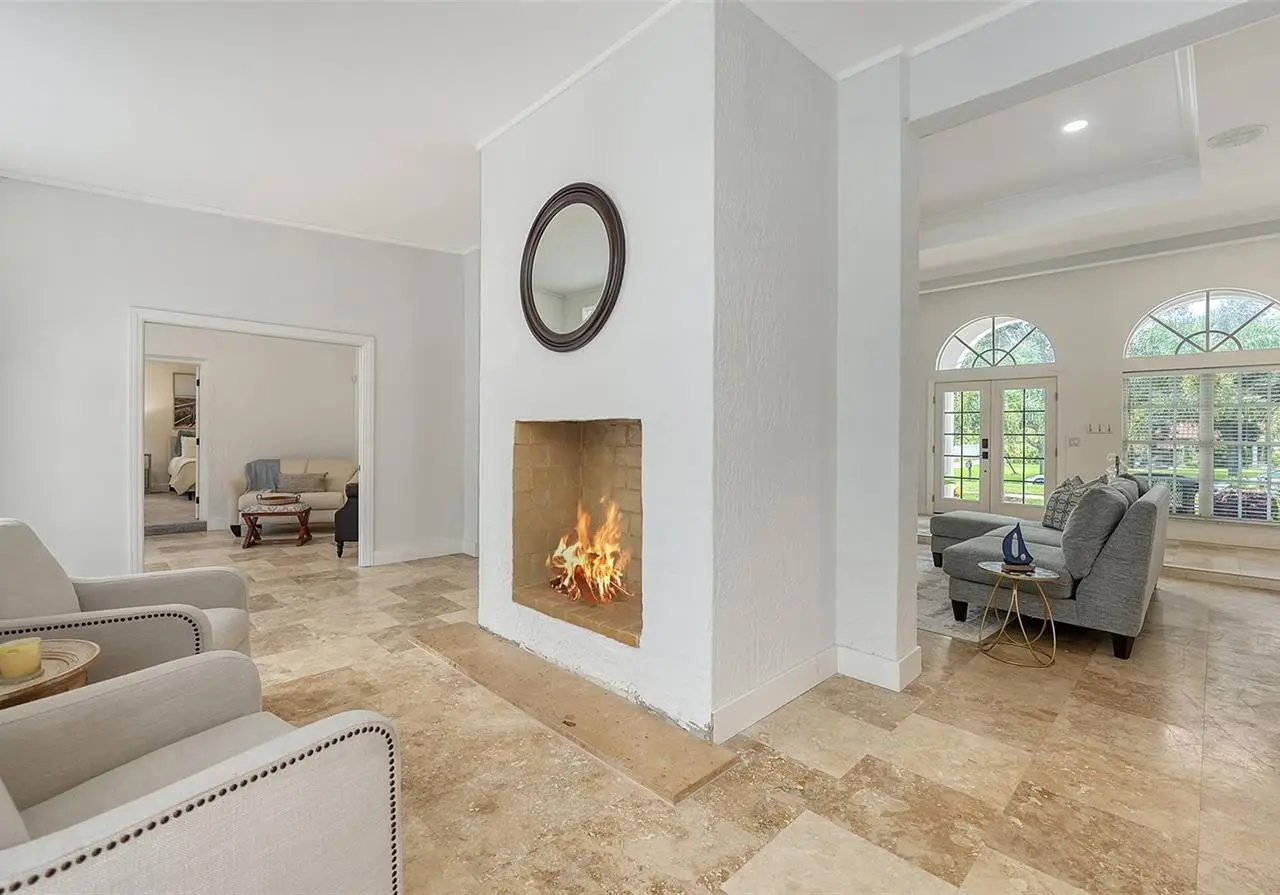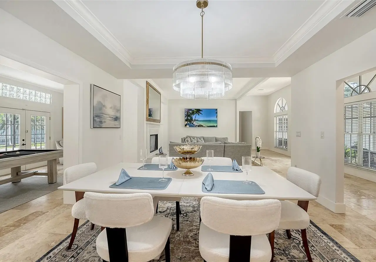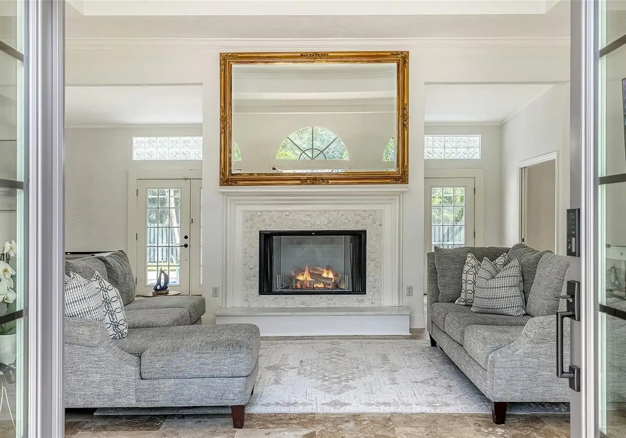 Tucked within the prestigious, gated enclave of Beneva Oaks, where centuries-old live oaks line meandering streets, this masterfully renovated home on a ½ acre lot offers incredible 2025 updates and a wonderful 4-bedroom, 3.5-bath, 1-story floor plan providing both grandeur and comfort across the expansive space. A circular drive framed by lush landscaping leads to the elegant entry of this modern residence, where refined upgrades blend seamlessly with timeless architectural features. Inside, travertine floors flow through the main living areas, while new designer carpet enhances the comfort of the bedrooms. The heart of the home is the extraordinary new eat-in kitchen featuring gleaming quartz countertops, crisp white wood cabinetry, stainless appliances including an induction cooktop, wide plank porcelain tile floor, and a custom tile backsplash. Accents like gold hardware, designer lighting, crown molding, and wide baseboards add the feel of luxury, while four sets of French doors connect the interior seamlessly with the lush exterior surroundings. An elegant dual-sided wood-burning fireplace with brick and tile surround and quartz and travertine hearths anchors the living and sitting areas, creating inviting spaces for conversation or quiet moments. With multiple entertaining areas designed for both intimate gatherings, grand-scale events or even a game of pool, the home's layout flows effortlessly from indoors to the screened lanai with paver deck, where a heated pool enhanced by Iconic Pools with sparkling new glass tile surface invites year-round enjoyment. The spacious primary suite, is a sanctuary unto itself, offering three walk-in closets with custom closet systems, and an extraordinary spa-inspired bath with bespoke tile work, frameless glass shower, gold fixtures, and a quartz-topped dual-sink vanity that exudes luxury. Two additional guest bedrooms enjoy new carpet, large closets, and generous natural light, while the newly redesigned guest bath impresses with design-forward flooring, quartz dual-sink vanity, and clean, modern finishes. The 4th bedroom can also be used as in-law suite, enjoying its own private French door entry and full bath with walk-in shower. The office with a custom built-in loft, closet, and a front facing window is ideal as a workspace, study, play, or creative escape. A chic updated powder bath adds further convenience. The thoughtfully designed laundry room features quartz countertops, utility sink, abundant cabinetry, and front-load GE Whirlpool washer/dryer. The oversized 2-car garage and beautifully landscaped grounds complete this exceptional property in one of Sarasota's most serene and sought-after neighborhoods. Located in a top rated school district, X flood zone and within close proximity to Sarasota's dining, shopping, culture, and the pristine Gulf of Mexico beaches, this exceptional property offers an unparalleled combination of design and craftsmanship in one of Sarasota's best-kept secret neighborhoods, presenting a rare opportunity to experience refined Florida living at its finest!
