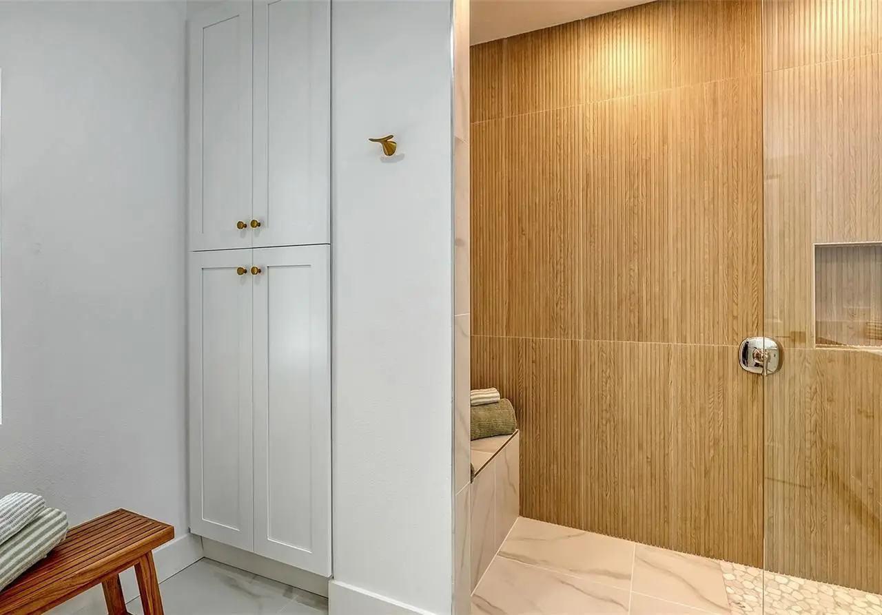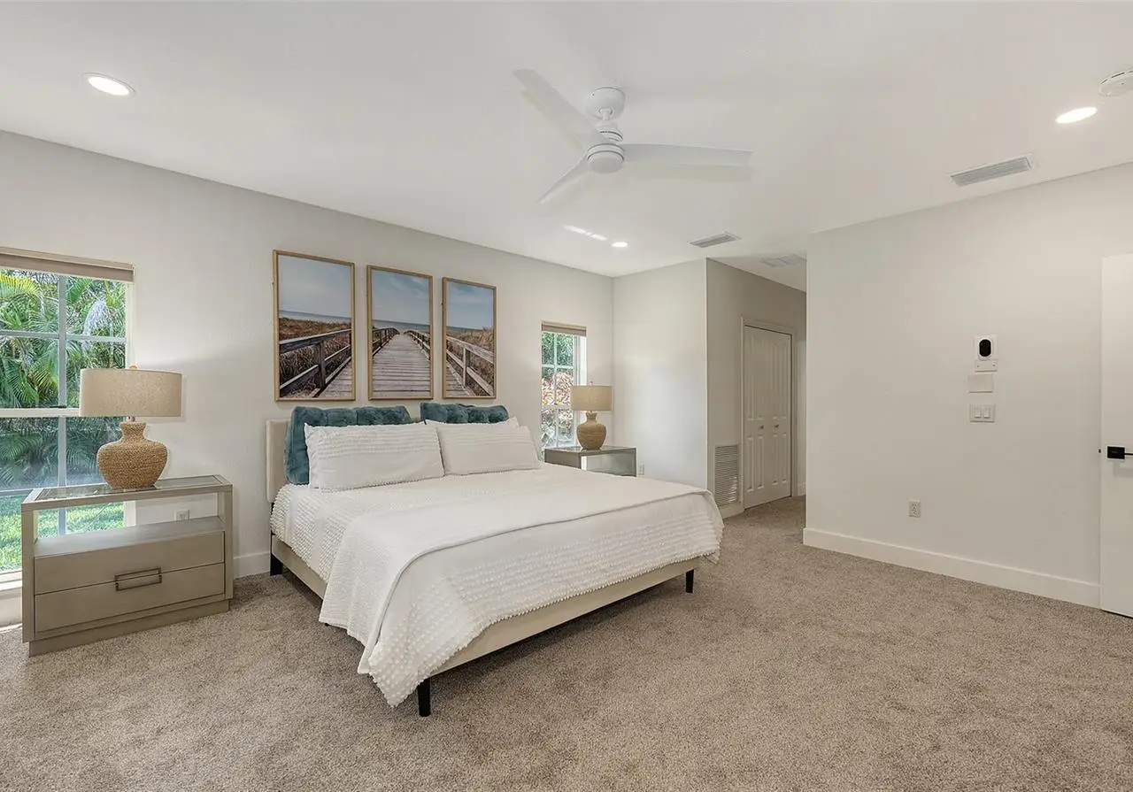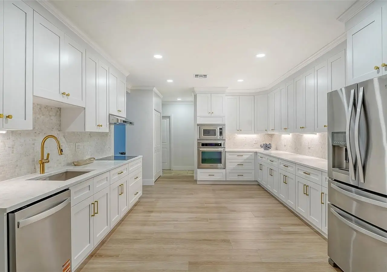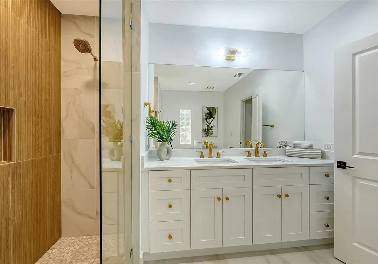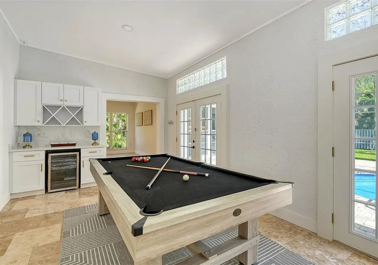 Tucked within the prestigious, gated enclave of Beneva Oaks, where centuries-old live oaks line meandering streets, this masterfully renovated home on a ½ acre lot offers incredible 2025 updates and a wonderful 4-bedroom, 3.5-bath, 1-story floor plan providing both grandeur and comfort across the expansive space. A circular drive framed by lush landscaping leads to the elegant entry of this modern residence, where refined upgrades blend seamlessly with timeless architectural features. Inside, travertine floors flow through the main living areas, while new designer carpet enhances the comfort of the bedrooms. The heart of the home is the extraordinary new eat-in kitchen featuring gleaming quartz countertops, crisp white wood cabinetry, stainless appliances including an induction cooktop, wide plank porcelain tile floor, and a custom tile backsplash. Accents like gold hardware, designer lighting, crown molding, and wide baseboards add the feel of luxury, while four sets of French doors connect the interior seamlessly with the lush exterior surroundings. An elegant dual-sided wood-burning fireplace with brick and tile surround and quartz and travertine hearths anchors the living and sitting areas, creating inviting spaces for conversation or quiet moments. With multiple entertaining areas designed for both intimate gatherings, grand-scale events or even a game of pool, the home's layout flows effortlessly from indoors to the screened lanai with paver deck, where a heated pool enhanced by Iconic Pools with sparkling new glass tile surface invites year-round enjoyment. The spacious primary suite, is a sanctuary unto itself, offering three walk-in closets with custom closet systems, and an extraordinary spa-inspired bath with bespoke tile work, frameless glass shower, gold fixtures, and a quartz-topped dual-sink vanity that exudes luxury. Two additional guest bedrooms enjoy new carpet, large closets, and generous natural light, while the newly redesigned guest bath impresses with design-forward flooring, quartz dual-sink vanity, and clean, modern finishes. The 4th bedroom can also be used as in-law suite, enjoying its own private French door entry and full bath with walk-in shower. The office with a custom built-in loft, closet, and a front facing window is ideal as a workspace, study, play, or creative escape. A chic updated powder bath adds further convenience. The thoughtfully designed laundry room features quartz countertops, utility sink, abundant cabinetry, and front-load GE Whirlpool washer/dryer. The oversized 2-car garage and beautifully landscaped grounds complete this exceptional property in one of Sarasota's most serene and sought-after neighborhoods. Located in a top rated school district, X flood zone and within close proximity to Sarasota's dining, shopping, culture, and the pristine Gulf of Mexico beaches, this exceptional property offers an unparalleled combination of design and craftsmanship in one of Sarasota's best-kept secret neighborhoods, presenting a rare opportunity to experience refined Florida living at its finest!