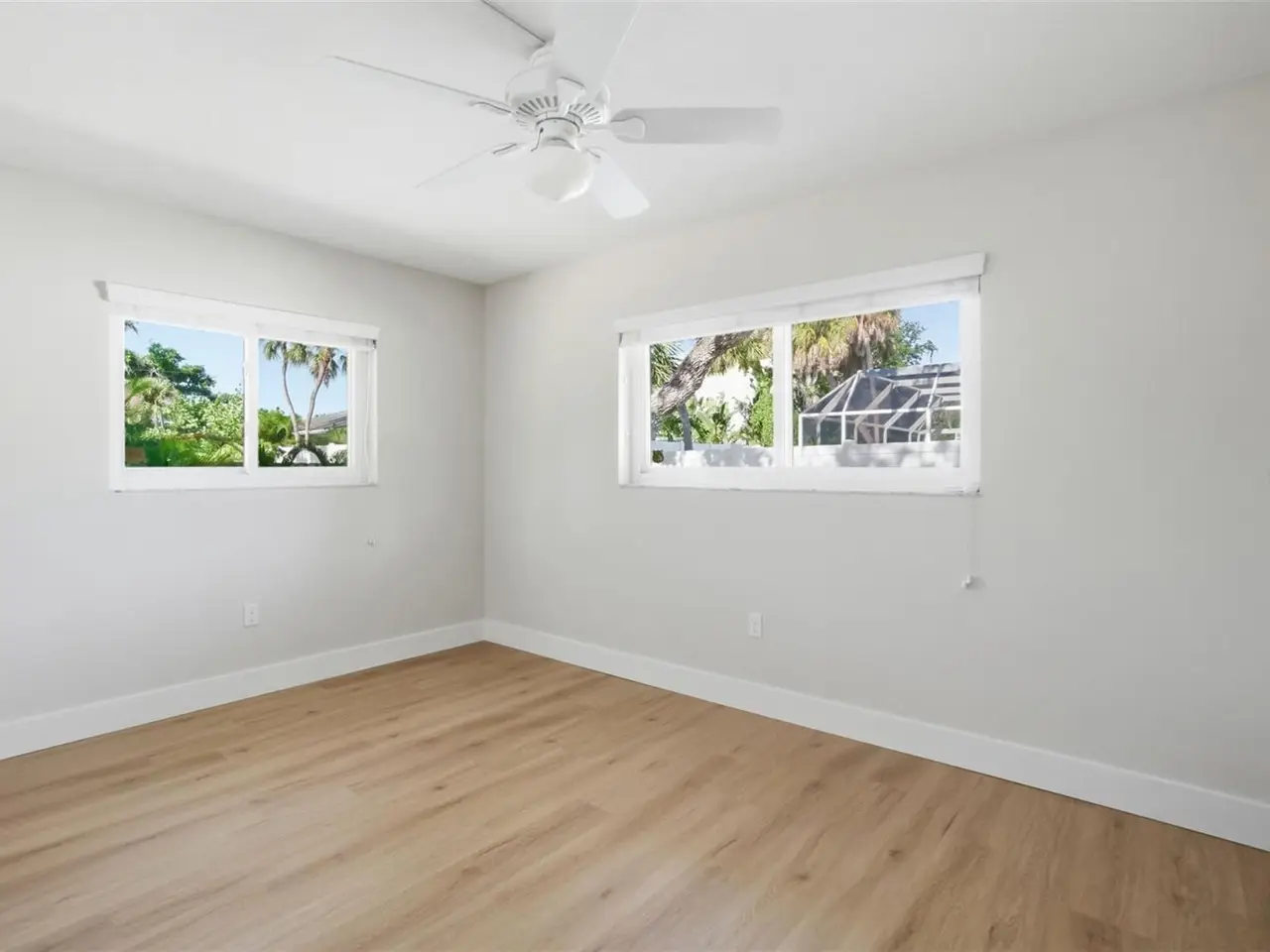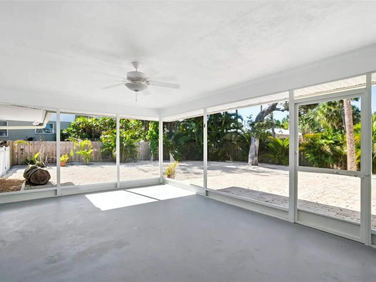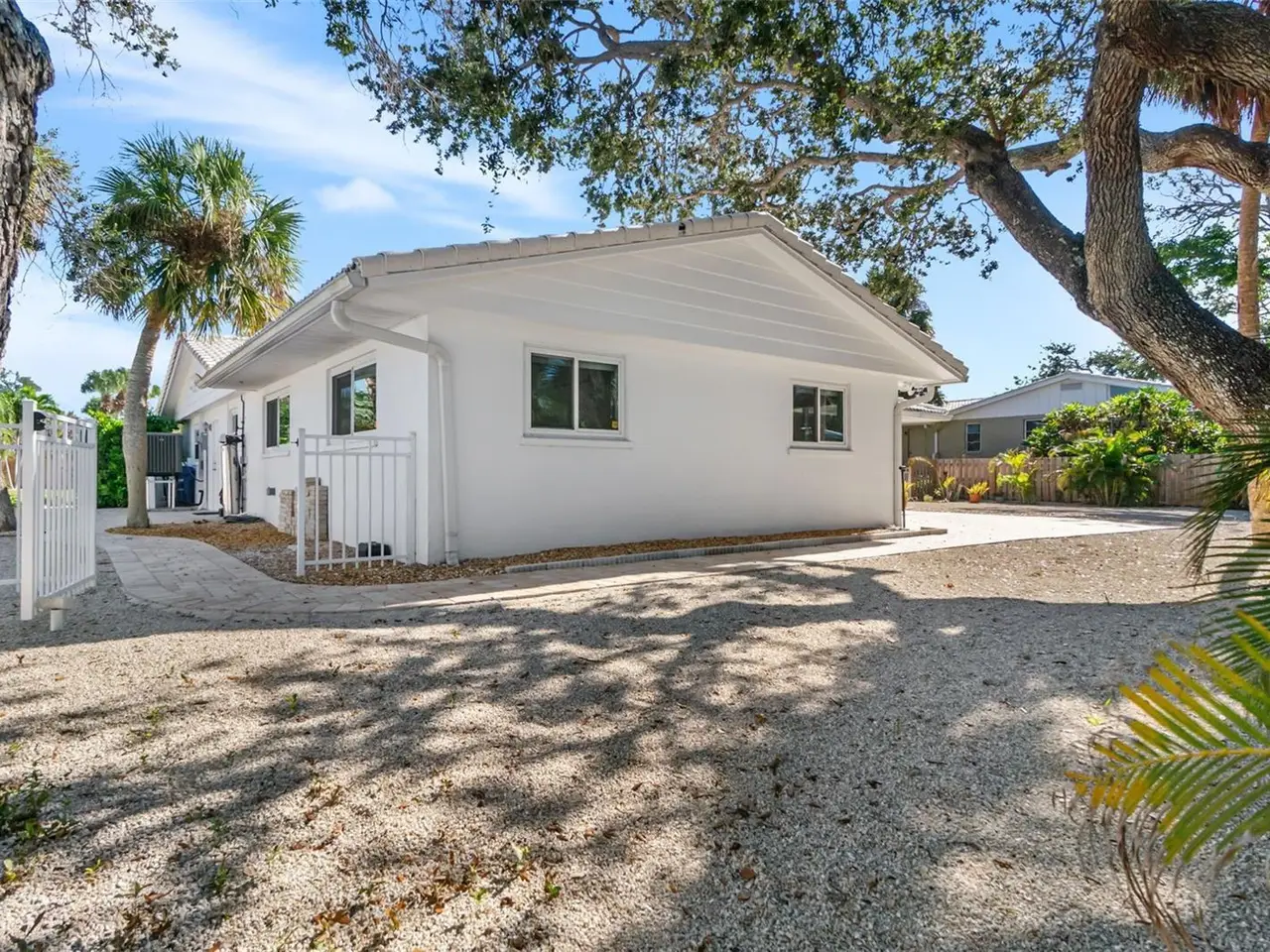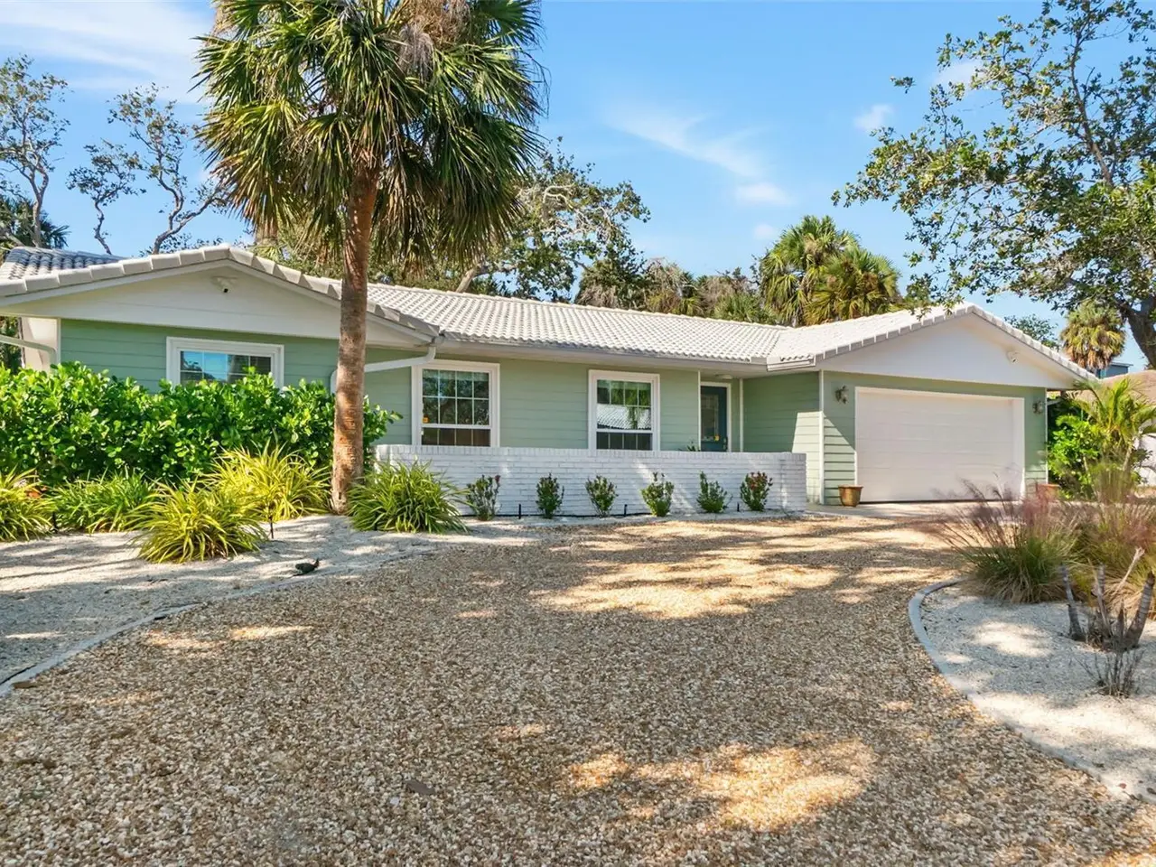 One or more photo(s) has been virtually staged. Nestled near the gentle waters of Roberts Bay, this enchanting Siesta Key home rests on a quiet cul de sac street where the only sounds are the whisper of palms and the laughter of neighbors walking by. Though not waterfront, the location captures the essence of island life - peaceful, private, and just moments from where the sun dips into the Gulf. A short stroll or quick bike or golf cart ride has you in the center of vibrant Siesta Key. Step inside, and you'll feel the warmth of a home that's been lovingly renewed. Every detail reflects care and comfort - from the four inviting bedrooms and two full baths to the light-filled kitchen adorned with stainless steel appliances and a captivating blue glass tile backsplash reminiscent of the Gulf waters just moments from your front door. The dining area invites long, easy meals, while two separate living spaces offer versatility for gathering, relaxing, or simply enjoying the rhythm of coastal living. Life is low maintenance and carefree with durable lvp flooring that looks modern and will compliment your coastal decor. Beyond the back door lies a spacious, fenced yard - a blank canvas waiting for your imagination. Picture a pool glimmering under the afternoon sun, a lush garden framed with tropical blooms, or a firepit where evenings stretch into starlit conversations. Here, you aren't confined to someone else's vision - you have the freedom to create your own perfect oasis suited to your tastes and dreamy outdoor vibe. The charming front porch welcomes your guests - a cheerful prelude to the life that awaits within. New hurricane-rated windows offer confidence and calm, while the spacious two-car garage with smart epoxy flooring and the generous, indoor laundry room offers convenience. This is more than a house; it's a fresh beginning on Siesta Key - a place where your coastal dream can take root.
