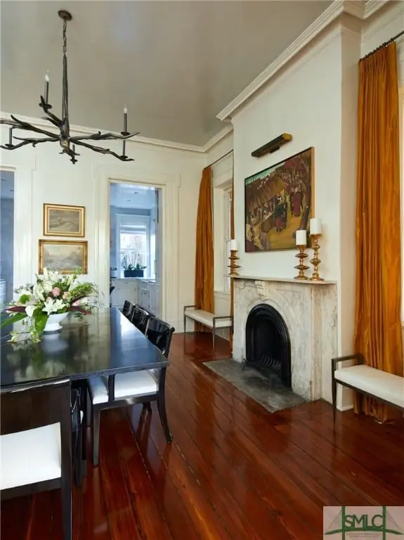 Enjoy unparalleled luxury and experience the pinnacle of downtown Savannah living at this exquisite freestanding c.1855 brick residence located in the heart of the Historic Landmark District on Monterey Square. Distinctive architectural design seamlessly blends period details with sophisticated modern elements. Couture-furnished interiors appointed with extraordinary natural materials and quality finishes are defined by beautifully proportioned light-filled spaces, soaring ceilings, exquisite plaster work, Old World craftsmanship, custom-lacquered finishes, hand-painted walls by renowned artist Bob Christian and custom lighting. The primary suite with private veranda stands apart as a sanctuary of style that occupies the entire second floor. A breathtaking chef's kitchen serves as a haven for home chefs and wine connoisseurs. This 5,500-plus square foot architectural masterpiece offers additional amenities, including stunning outdoor spaces, private elevator, garden-level apartment, two-car garage and much more.