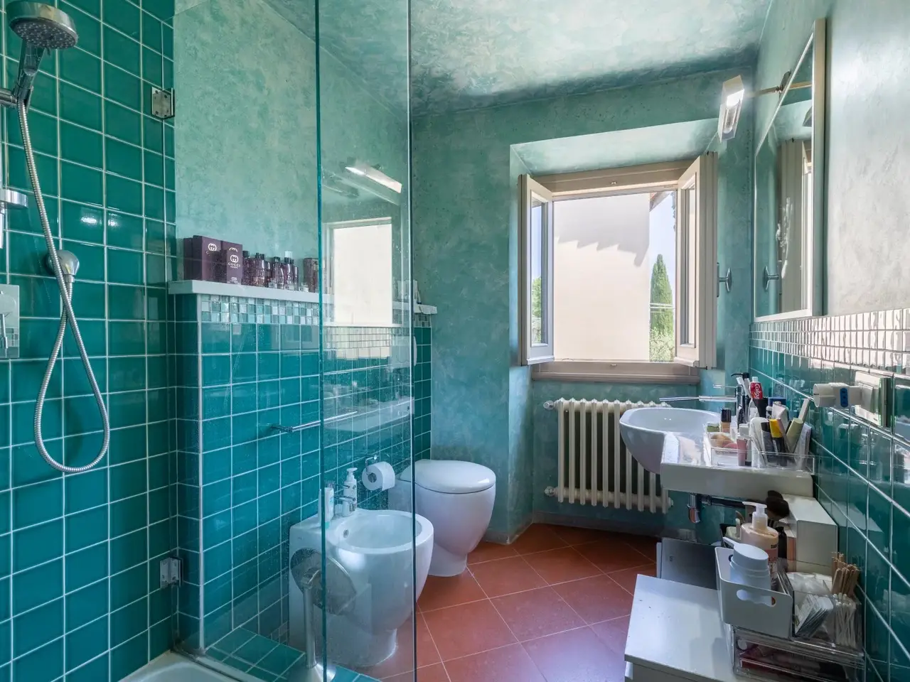 Portion of a villa on the hills of Scandicci, surrounded by lush countryside, with a panoramic view of the surrounding hills. The property combines classic elegance with a modern twist, offering a comfortable and refined place to live.The property is accessed through an exclusive gate that opens onto the well-kept garden with trees. The facade is embellished with windows and openings that offer a panoramic view of the surrounding picturesque countryside and allow you to experience the outdoor space as an extension of the interior spaces in the summer.The ground floor features an entrance hall with fireplace, a large living room, a dining room and a beautiful equipped and furnished kitchen designed by a prestigious Florentine interior designer. Service bathroom.The heart of this property is undoubtedly this welcoming living area with plenty of space for all the family's needs.Upstairs we find the master bedroom with bathroom and walk-in closet, two bedrooms and a second bathroom.On the second floor a large living room with exposed beams and four panoramic windows. This space can be used for various functions, lounge, study, gym or for a very large 4th bedroom.In the basement there is a large service area with storage room and laundry.The materials used for the renovation are of high quality and represent a synthesis between respect for the original materials used for this type of property and a contemporary touch.The resulting atmosphere is light, airy, very welcoming and comfortable. The colors used are neutral and blend perfectly with the modern and refined furnishings.The equipped garden is a great opportunity to experience the greenery and an opportunity to relax.The property includes a small outbuilding in the final part of the garden.Land with olive trees of about 2,500 square meters.For information 339 5356103