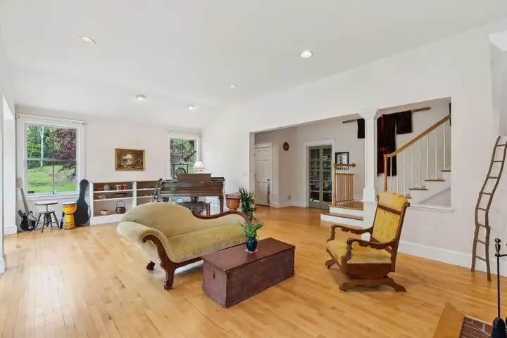A true Maine retreat, tucked away on 26+ acres and surrounded by the protected lands of the Rachel Carson Wildlife Preserve, 99 Quarry Road offers an extraordinary level of privacy and connection to nature. Just minutes from Portland and the beaches of southern Maine. Set over a half mile from the nearest paved road, the approach alone sets the tone - a winding, tree-lined drive through gently rolling forest, alive with wildlife and the quiet of country living. The contemporary home is filled with windows and natural light, offering striking views of forest, sky, and open yard in every season. Step outside to south-facing decks or enjoy peaceful meals on the screened porch while listening to birdsong and spotting the occasional bald eagle, bobcat, or even coyote pups at play across the hillside. With direct access to a network of private trails that wind through the woods to tidal marsh views, outdoor adventure is quite literally at your doorstep - from morning walks to snowshoeing and cross-country skiing in winter. The landscape here invites both reflection and recreation: expansive lawns for play and gathering, trails for exploring, and a sense of peace that deepens the further you travel down the long drive. While the property feels like a secluded retreat, it's under 20 minutes to Portland and just a short hop to five local beaches and nearby Robinson Woods trail system. Protected on three sides by conservation land and buffered from future development, this property is more than a home, it's a sanctuary. Whether you're drawn to the natural light, the wildlife, the unmatched privacy, or simply the calming sense of space, 99 Quarry Road is a rare opportunity to own a piece of Maine's quieter, wilder side.
