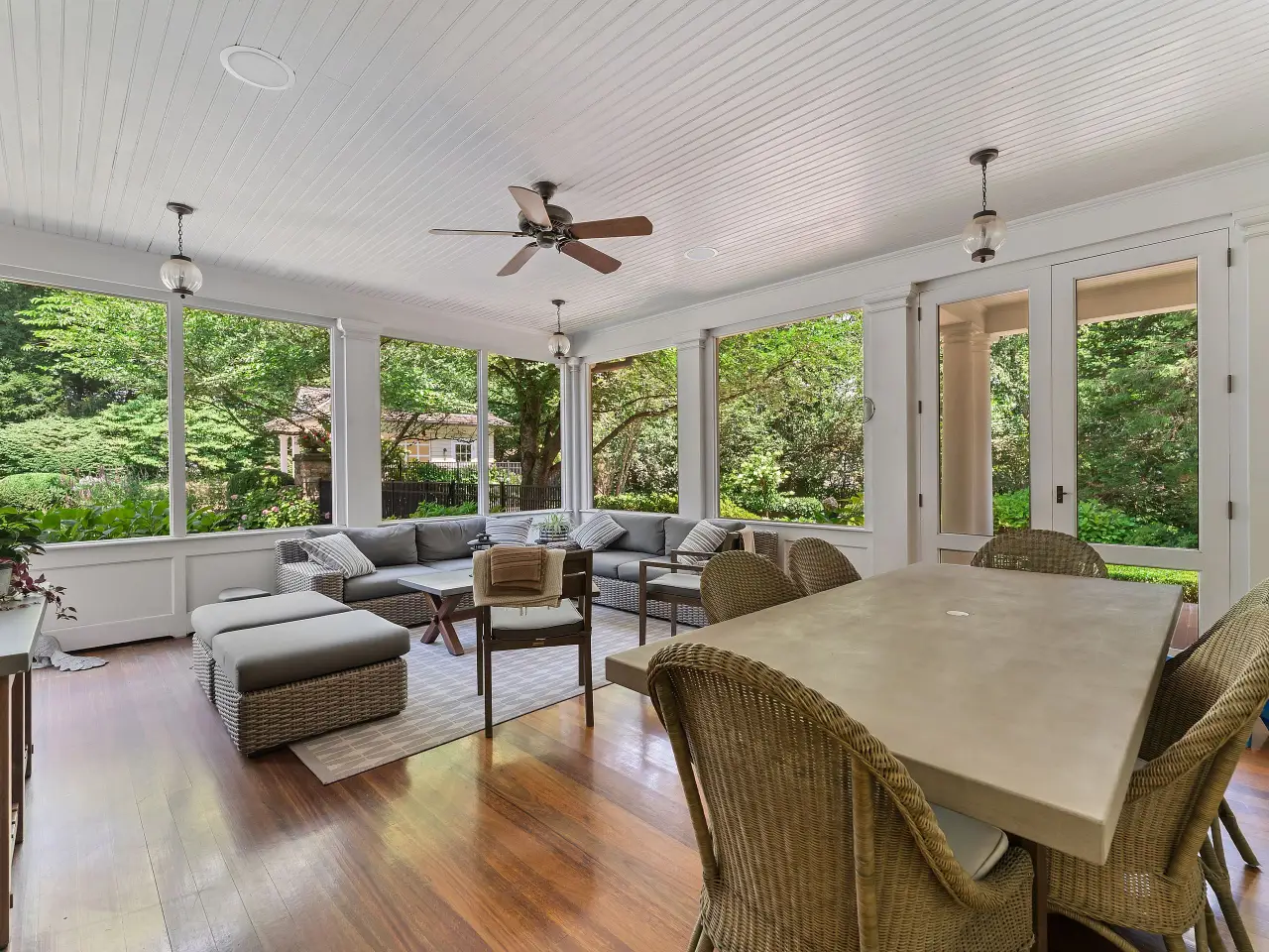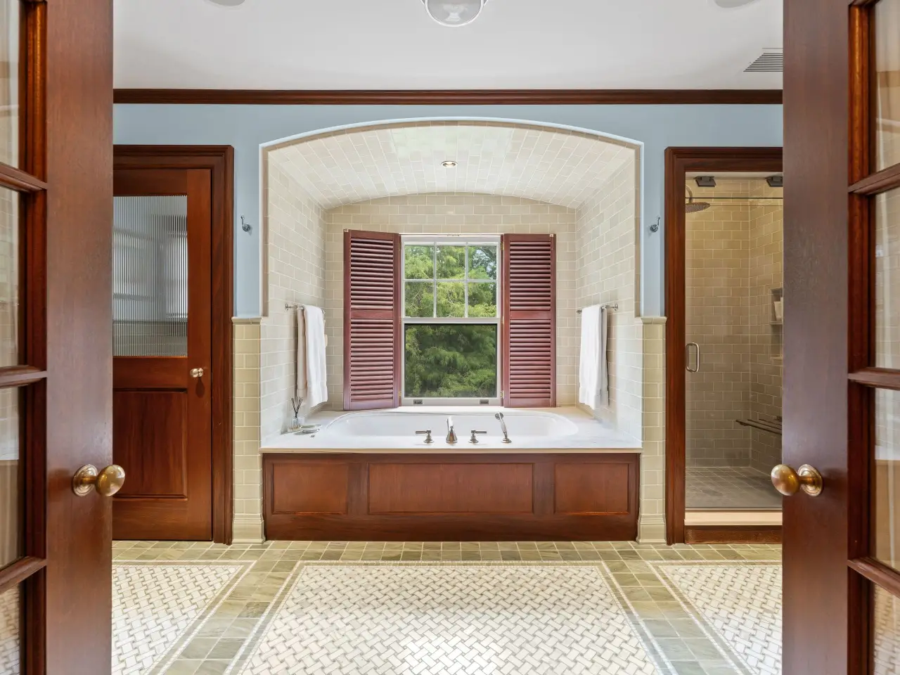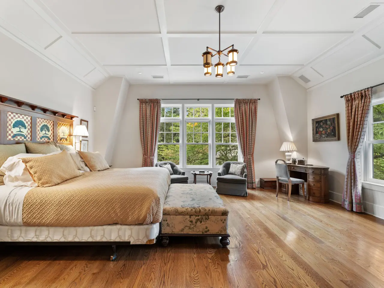This spectacular six-bedroom home in the coveted Grange section of Greenacres, sits on 2.61 sweeping, park-like acres. Rebuilt in 2001 with attention to detail and exquisite finishings, this home blends modern luxury with classic warmth. The foyer opens to a formal living room with a fireplace and an adjoining study. A gracious dining room connects to a butlers pantry and chefs kitchen with large island and views of the patio and pool. Enjoy seamless indoor-outdoor living with a screened-in porch, family room with French doors, and access to the patio, gardens, pool, hot tub and cabana with half bath and laundry. Upstairs, a magnificent primary bedroom suite offers an elevated ceiling, luxurious primary bathroom, expansive closet, and a second office. An additional family bedroom includes a fireplace, en-suite bath, and oversized closet. Two more bedrooms share a Jack and Jill bath, while a fifth bedroom suite with a full bath is ideal for guests. A large central playroom and spacious laundry room complete the second floor. The third floor has another charming bedroom, full bath, and flexible space for a home office or playroom. The lower level offers an additional 1376 square feet and boasts soaring ceilings, a grand recreation room, movie theater, kitchenette, gym, and half bath. The property also includes a two-car attached garage with mudroom entry, second powder room and a two-car detached garage. Private, elegant, and reimagined for modern living, 65 Garden is a true Greenacres gem!