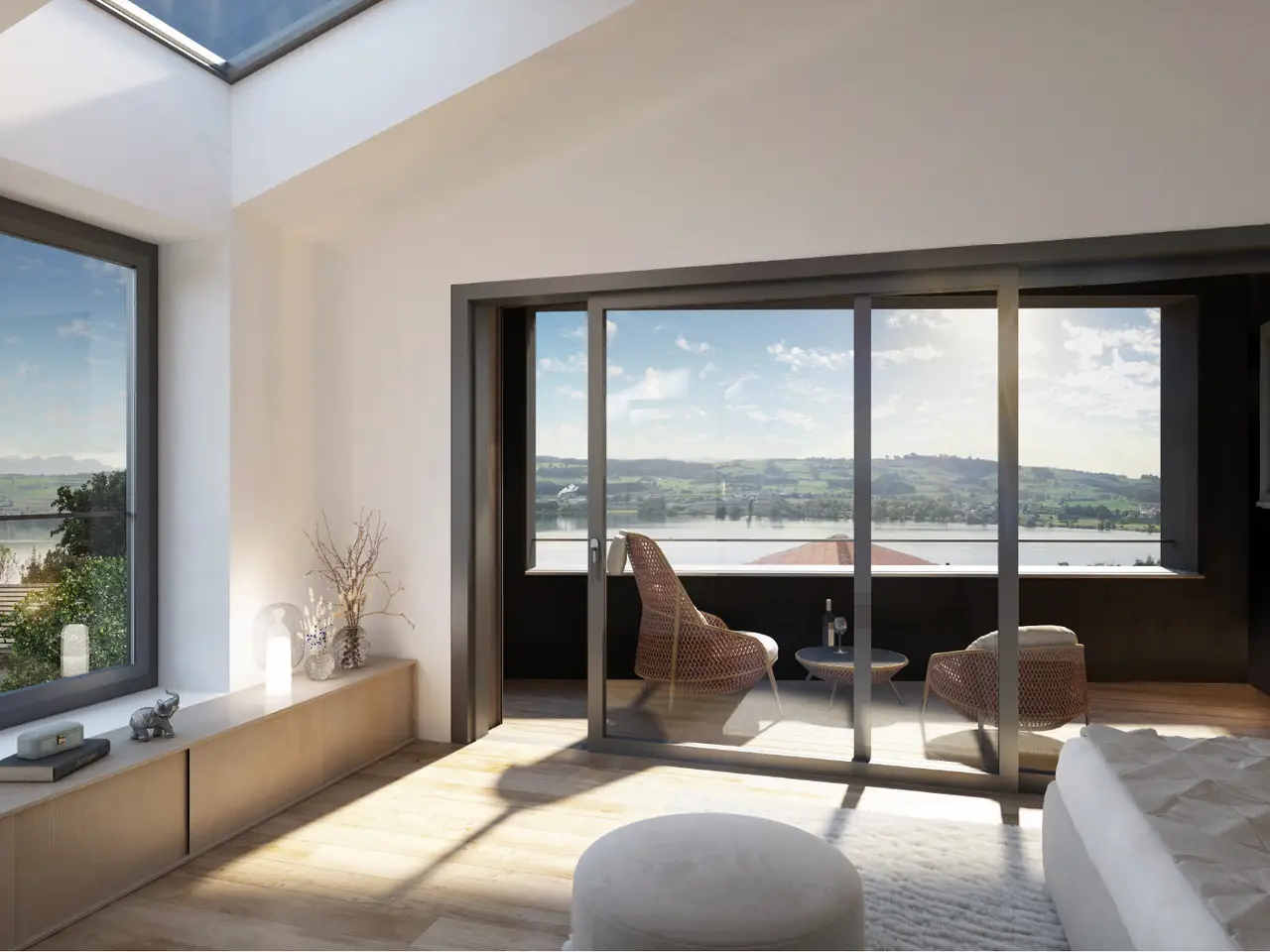 This sustainably built detached house with a stylish wooden look is being built on the edge of the forest with a view of Lake Sempach and the Alps. Enjoy light-flooded rooms, energy-efficient installations and the tranquillity of nature right on your doorstep. Thanks to low taxes and a natural and well-connected location, it offers a unique living experience for anyone who appreciates sustainability, closeness to nature and urbanity. - Breathtaking views over Lake Sempach and the Alps - Quiet, prefered and tax-favourable location - Sustainable construction with a wooden facade and integrated photovoltaic system - Master bedroom with dressing room and private loggia - Romantic seating area (partially covered) with beautiful garden. Our Bader team is always available via phone, WhatsApp, FaceTime and email.
