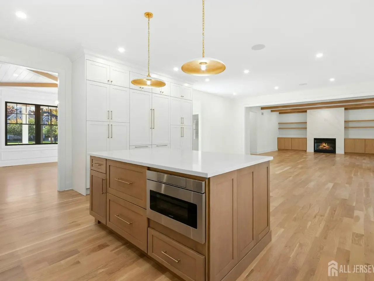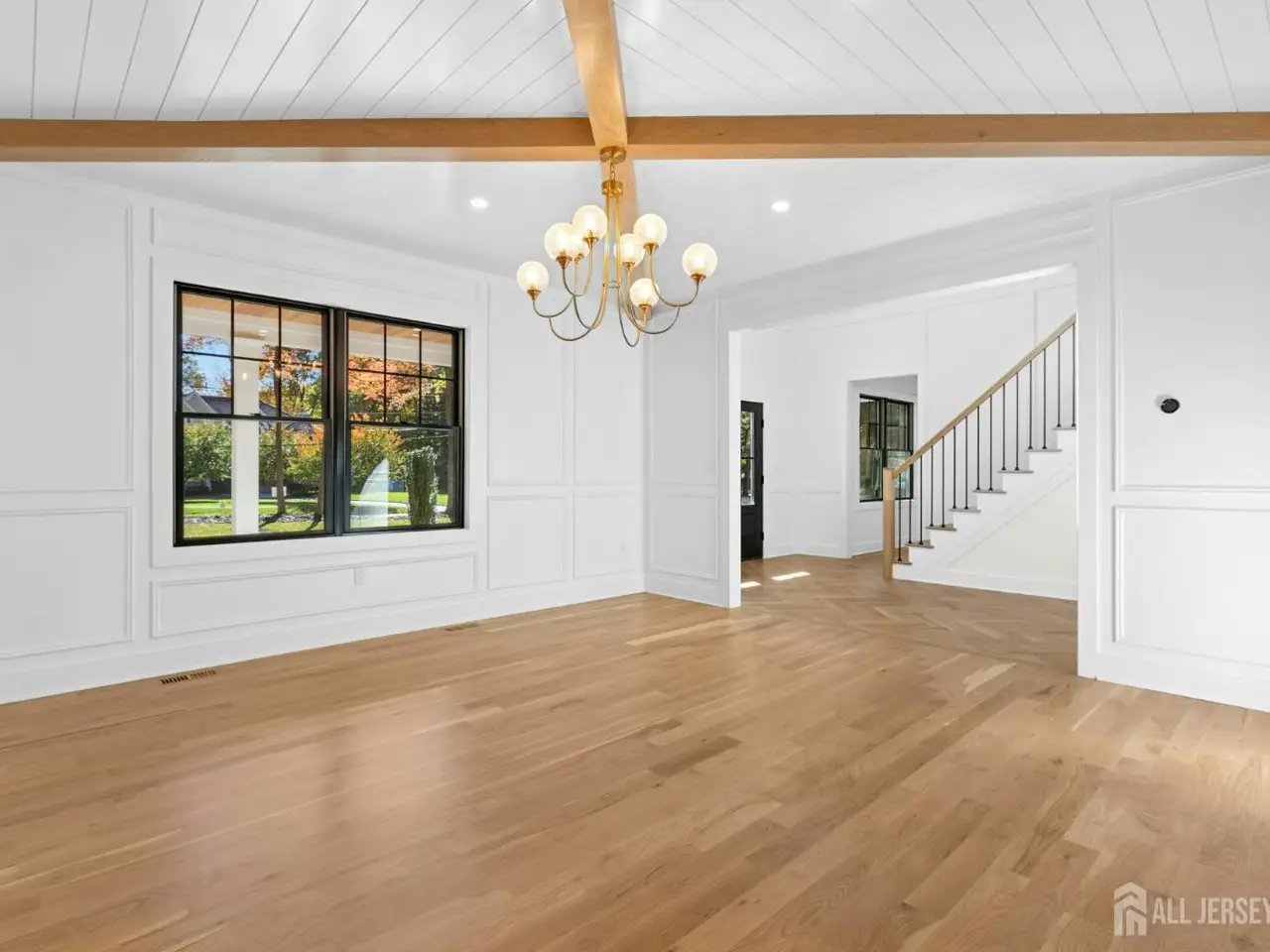 Welcome to a residence that redefines custom living. This brand-new 7,500+ square foot estate set on a level .95 acre lot is not just a house...it's a statement of vision, timeless design, and craftsmanship. Perfectly situated in one of Scotch Plains' most desirable neighborhoods, this home seamlessly blends modern sophistication with classic architectural elegance. Step inside through the grand double doors into a soaring two-story foyer filled with natural light and extraordinary attention to detail. The main level features an open-concept layout centered around a state-of-the-art chef's kitchen with Thermador appliances, quartz countertops and custom cabinetry. An adjoining prep kitchen is ideal for entertaining, storage, and simply keeping the main kitchen pristine. The en suite bedroom on this main level provides flexibility for guests, an au pair, or multigenerational living. Upstairs, the luxurious primary suite includes a spa-like bath with heated floors, and two individual walk-in showers...a rare indulgence. Two bedrooms are connected by a Jack and Jill bath while the remaining bedroom enjoys a private bath. The finished attic with full bath provides options for a second office, gym, quiet retreat. You will find a sprawling entertainment area in the basement anchored by a custom bar, a full bath, and a bedroom with an oversized egress window. Enjoy an ideal canvas for refined outdoor living and prepare to design the ultimate outdoor entertaining space. With the paver patio, full irrigation system, and fresh sod, the foundation for your dream outdoor oasis awaits. The interior details are both refined and enduring: 4 white oak flooring, white oak wood beam ceilings, extensive custom millwork, Andersen 400 Series black windows, hand-selected designer lighting, Sonos sound system, Nest thermostats, Kohler fixtures, and unique exquisite tile selections.This home provides for a wonderfully elevated lifestyle - a truly extraordinary opportunity in Scotch Plains.