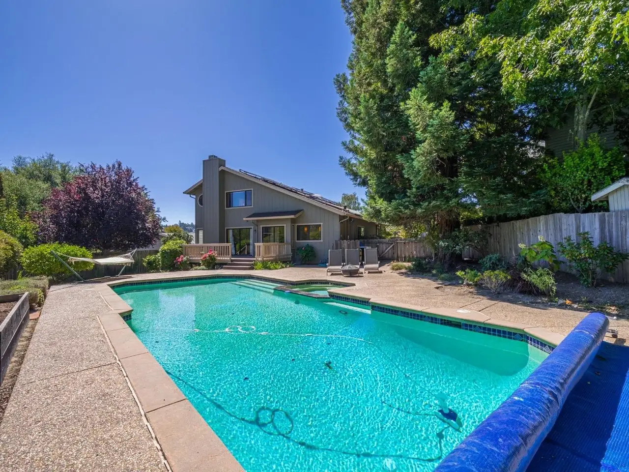 Just Listed in Scotts Valley! Neatly tucked away on a quiet cul-de-sac, not far off the beaten path, 14 Sageland Court is situated on a large sunny lot and features a versatile spacious open floorplan with vaulted ceilings, abundant natural light, warm wood floors, wood burning fireplace, and a combined kitchen, living, and family room space, perfect for family gatherings and entertaining with easy access to the backyard deck and pool. The well thought out sensible floor plan incorporates three upstairs bedrooms, including the primary bedroom and bath, with views of the backyard pool, and an additional main level bedroom and bath and inside washer & dryer area with an attached two car garage. This home also boasts many energy efficient upgrades: Solar electric panels, electrical storage batteries, EV charging station, on demand water heater, hydronic solar panels for heating the pool. Location, Location, Location! Take advantage of one of the most convenient locations in Scotts Valley, close to schools, a few minutes drive to Hwy 17 and walking distance to the local market and shopping center with restaurants, specialty shops, and just a ten-minute drive to the beach and downtown Santa Cruz and 20 minutes to Los Gatos.