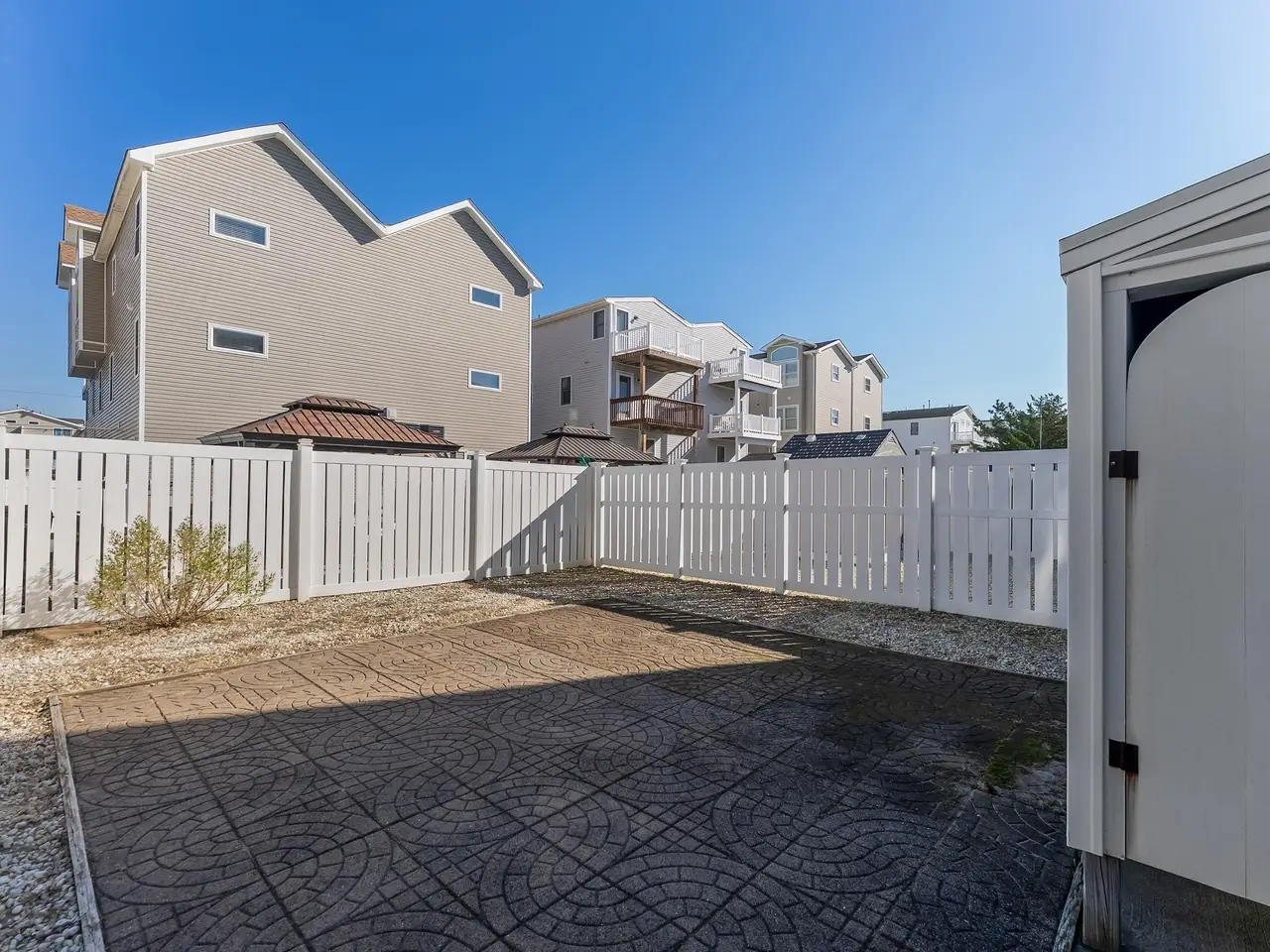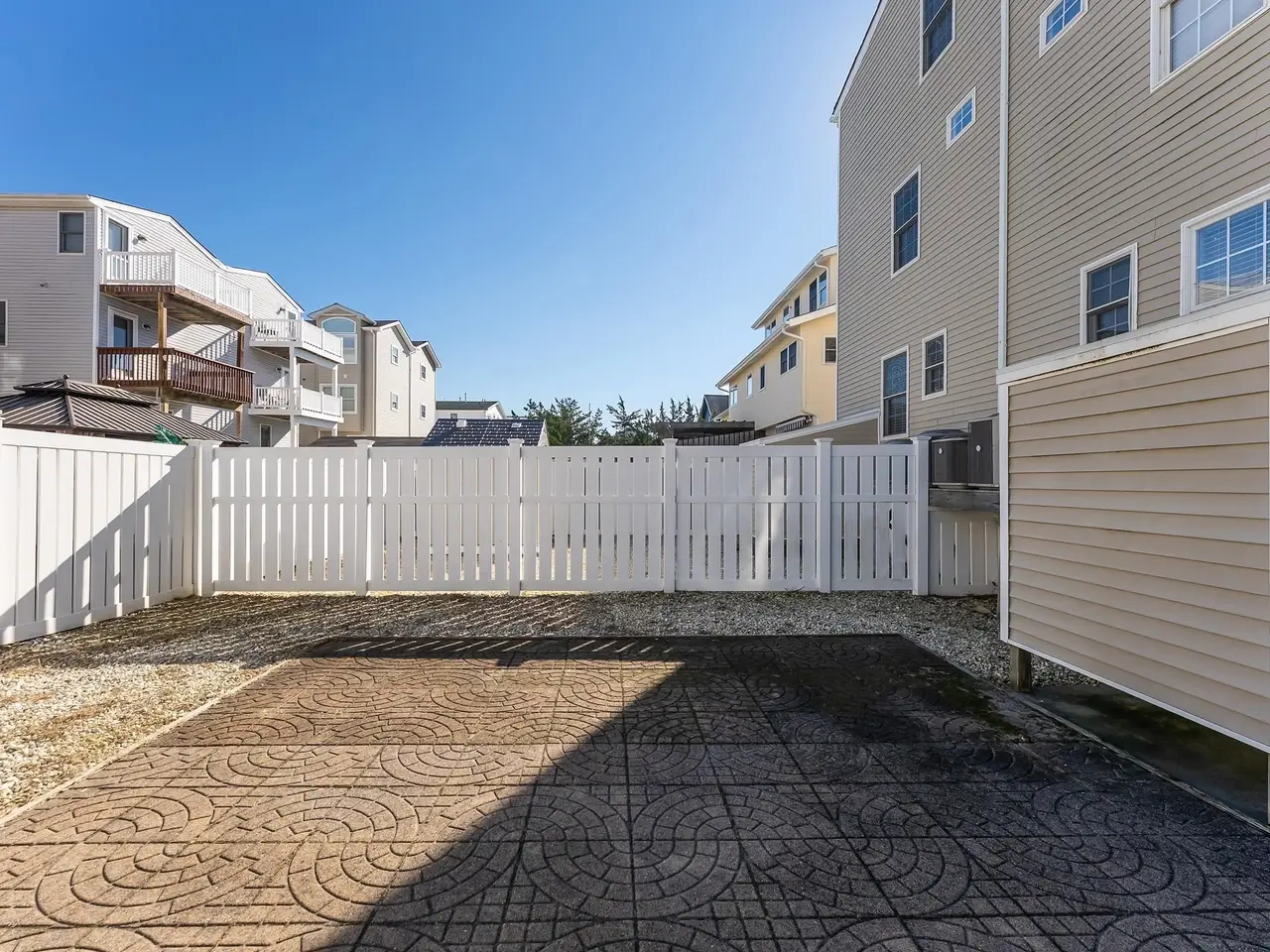 Fenced-in rear yard with pavers
