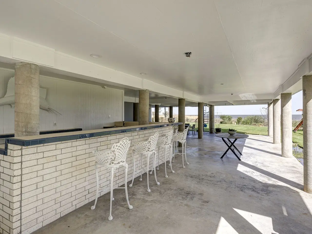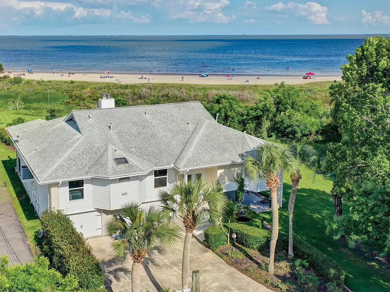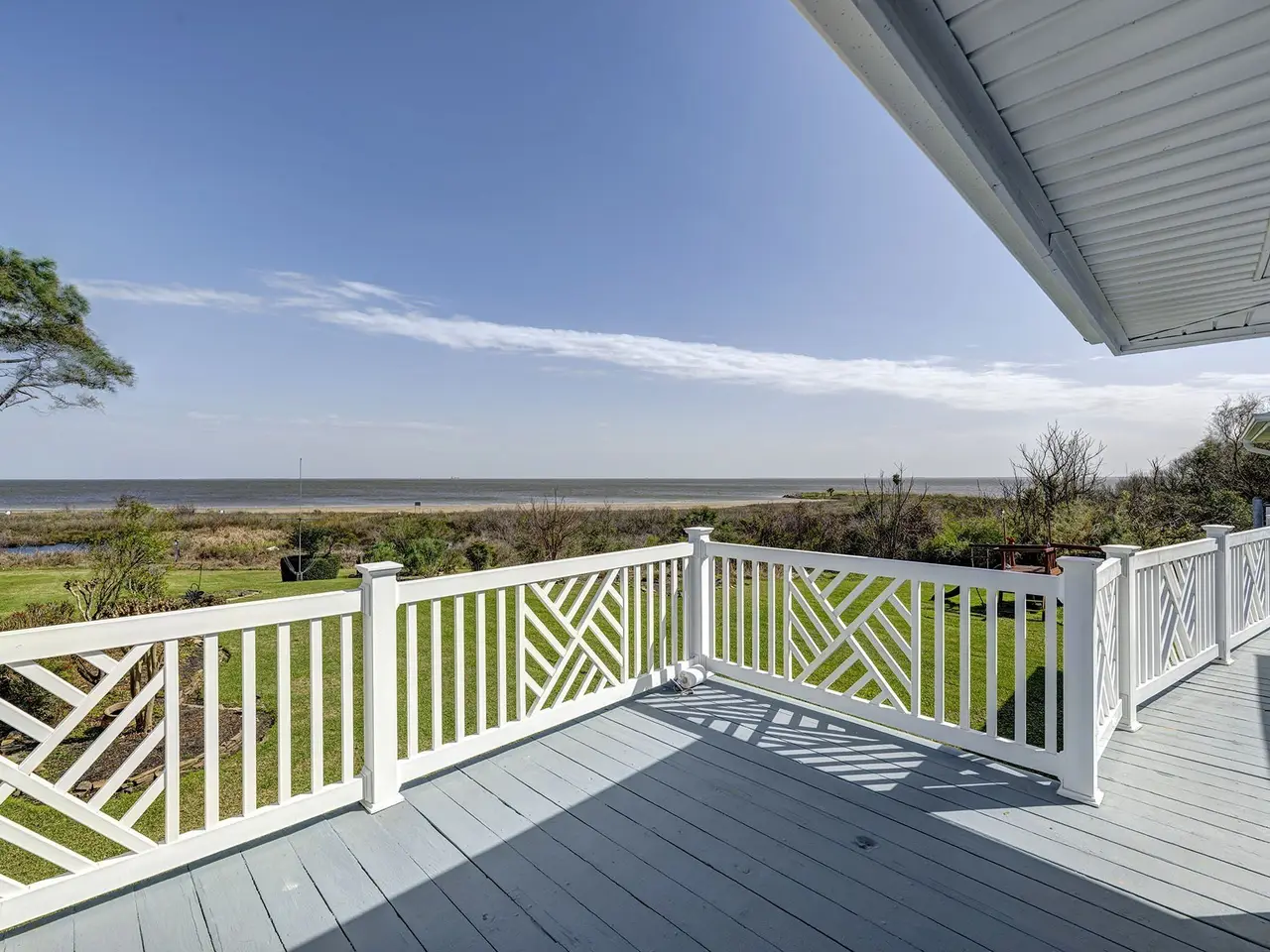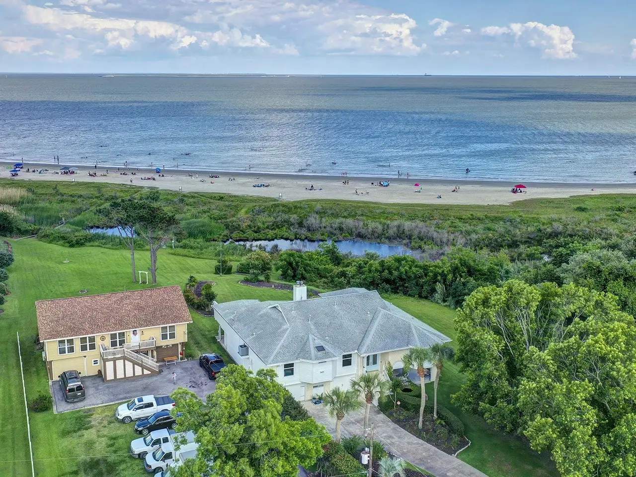 Rare and special find - a beachfront paradise nestled along the pristine shores of Galveston Bay! This designer-owned & recently renovated (2024) property offers unparalleled beachfront living w/direct access to a secluded stretch of sand! The light-filled home offers a wonderful open floorplan w/spectacular water views from almost every room! The home includes an elevator & the sliding doors open to breathtaking ocean views, inviting the outside in. This special property is ideal for entertaining w/a beautiful porch overlooking the water & a wonderful outdoor kitchen. Constructed on robust concrete piers with electric storm shutters, this waterfront oasis is as sturdy as it is stunning. Living in this wonderful neighborhood comes with a touch of history as it is best known for being the home of John Harris, the namesake of Harris County. You won't want to miss an opportunity to tour this rare & special property just a short drive from downtown Houston! All info per Seller.