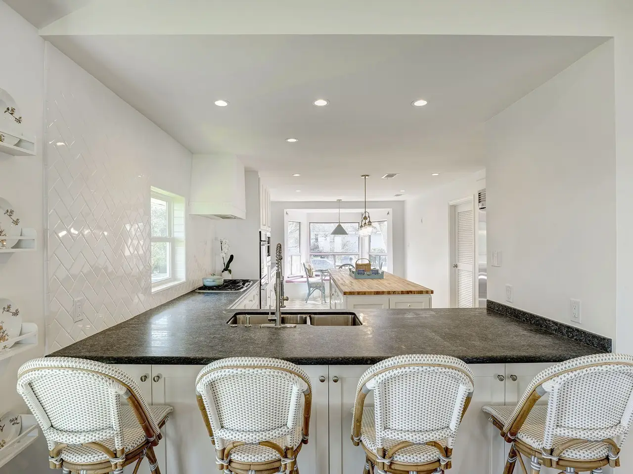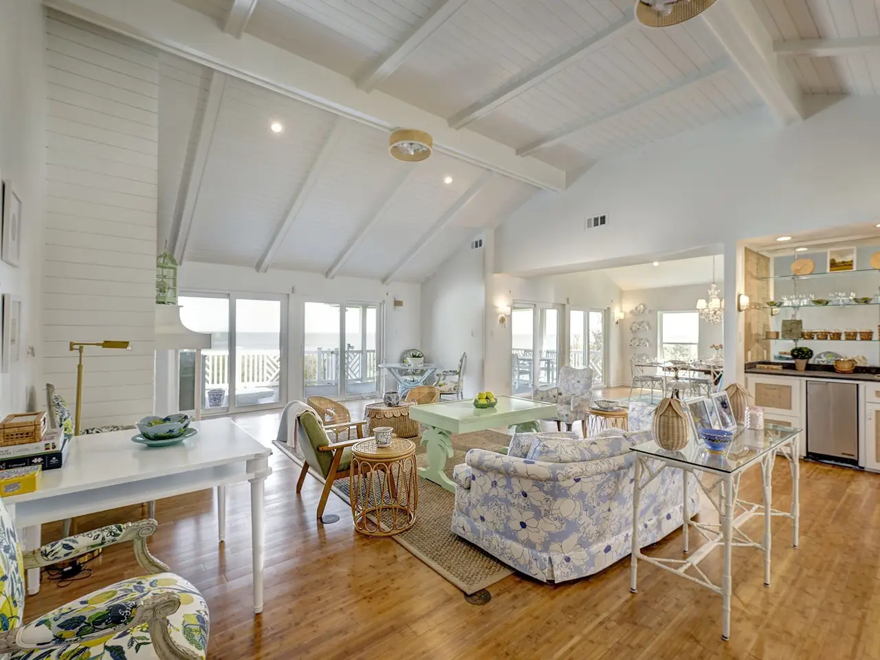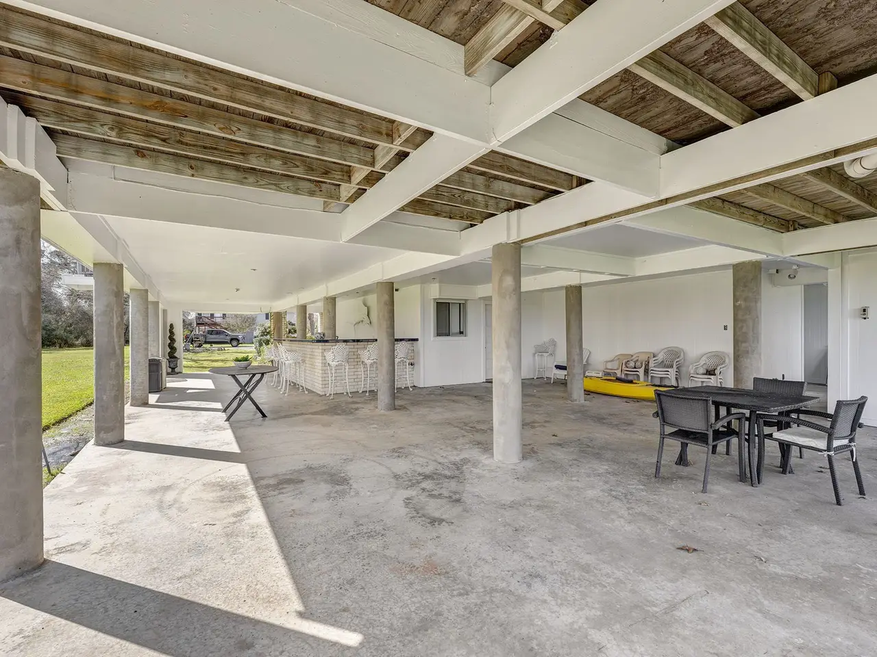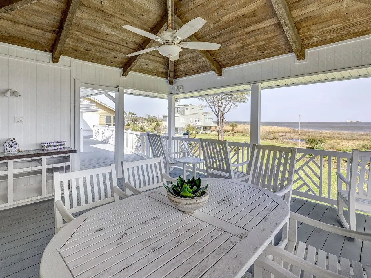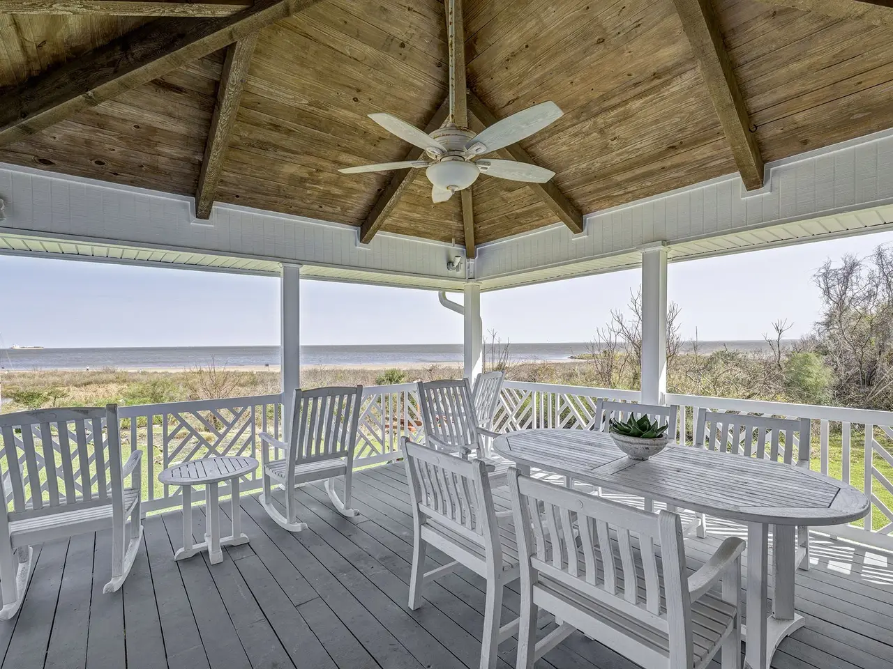 Rare and special find - a beachfront paradise nestled along the pristine shores of Galveston Bay! This designer-owned & recently renovated (2024) property offers unparalleled beachfront living w/direct access to a secluded stretch of sand! The light-filled home offers a wonderful open floorplan w/spectacular water views from almost every room! The home includes an elevator & the sliding doors open to breathtaking ocean views, inviting the outside in. This special property is ideal for entertaining w/a beautiful porch overlooking the water & a wonderful outdoor kitchen. Constructed on robust concrete piers with electric storm shutters, this waterfront oasis is as sturdy as it is stunning. Living in this wonderful neighborhood comes with a touch of history as it is best known for being the home of John Harris, the namesake of Harris County. You won't want to miss an opportunity to tour this rare & special property just a short drive from downtown Houston! All info per Seller.
