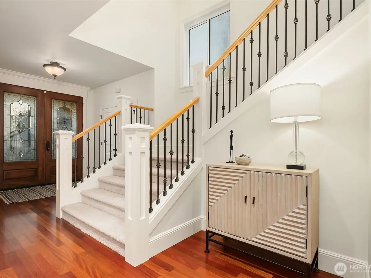 Beautifully maintained home in the sought-after Laurelhurst community. Built in 2006, this classic residence features hardwood floors, custom molding, arched doorways, & soaring ceilings throughout. The main level includes a bedroom/office, powder bath, formal dining & living areas, plus a spacious kitchen & family room with stone-surround fireplace & bar-style counter seating. Upstairs offers two bedrooms, laundry, a secondary bath, & a generous primary suite with private office space, walk-in closet, soaking tub, oversized shower, & double vanity. The sunny backyard boasts a patio, built-in BBQ area, grass, new fencing, & vibrant gardens. Oversized two-car garage provides ample space for parking, storage, & workouts.