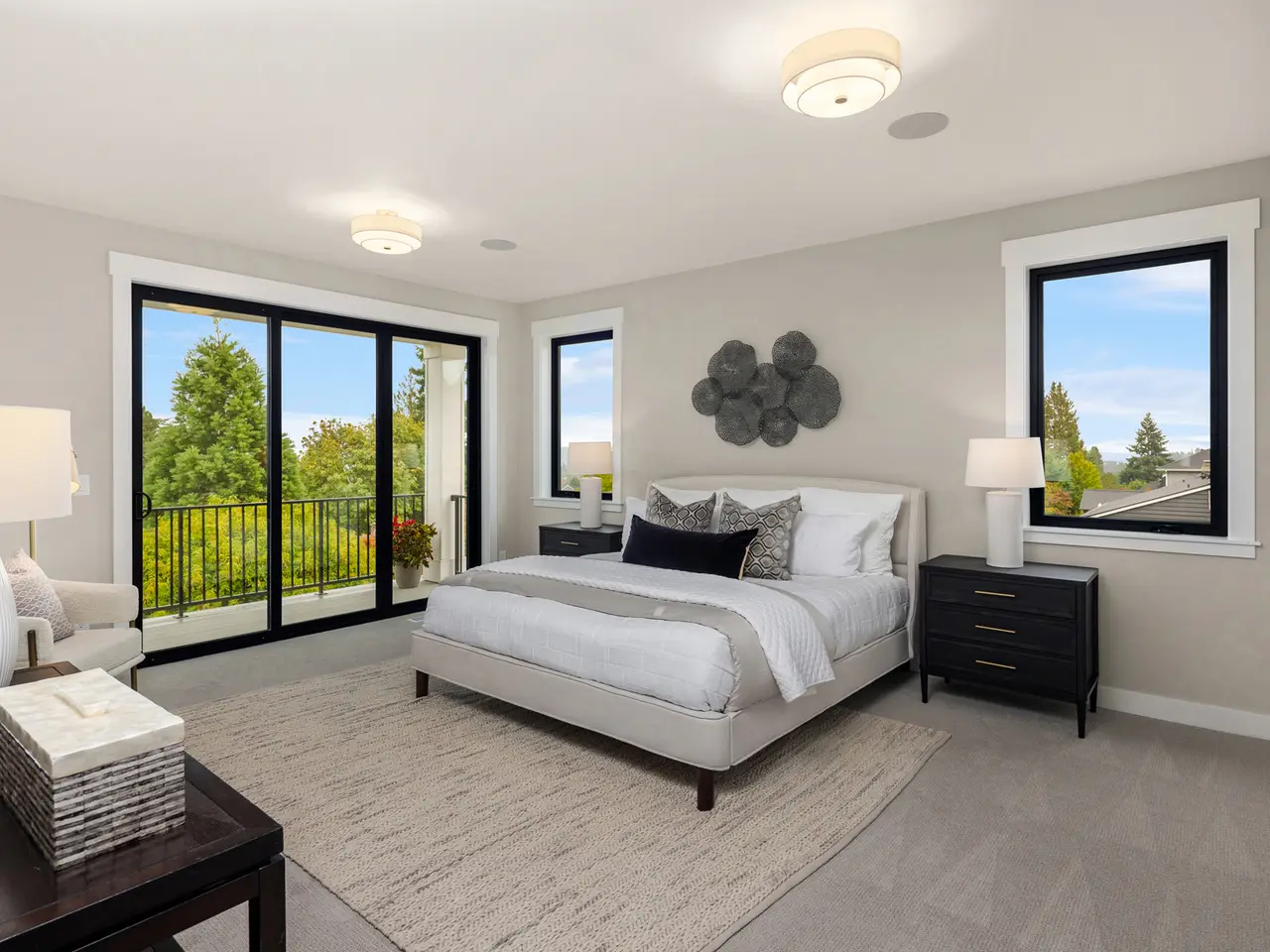 Presenting this new modern farmhouse home by Winfield Homes in the heart of View Ridge offering lake & mountain views. The spacious great room with fireplace, built-ins, wide plank hardwood floors and a gourmet kitchen featuring a quartz waterfall island, Wolf 48 range & Sub-Zero refrigerator, is a chef's dream! Entertain with ease from the outdoor covered deck w/ patio heater for year-round comfort. Upper floor primary suite with view deck and 5-piece spa bath with heated floors. The lower level offers a family room, 2 bedrooms, 3/4 bath & 2nd kitchen - ideal for multi-generational living or guest suite. A fully fenced backyard and a 2-car garage completes this beautiful home.