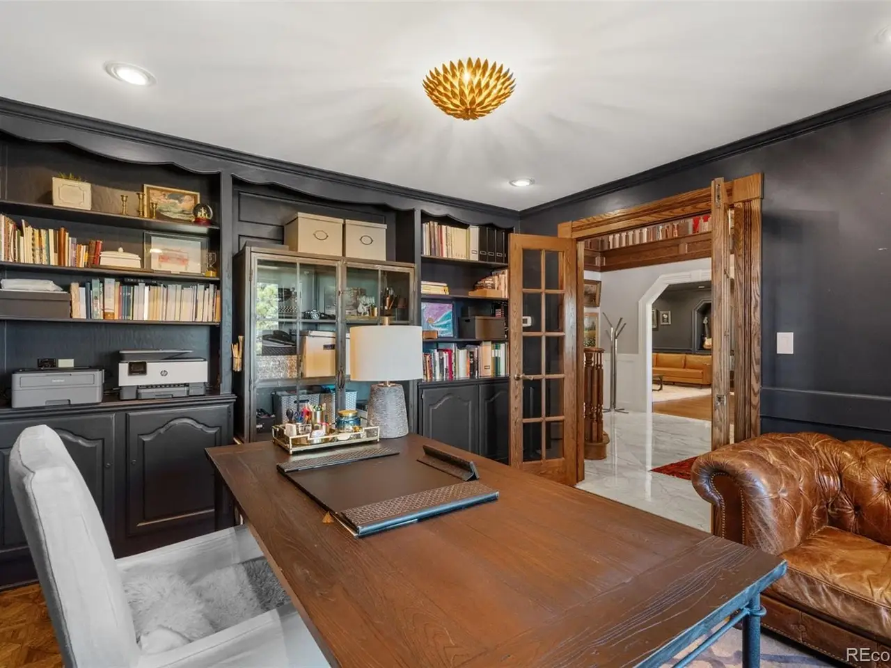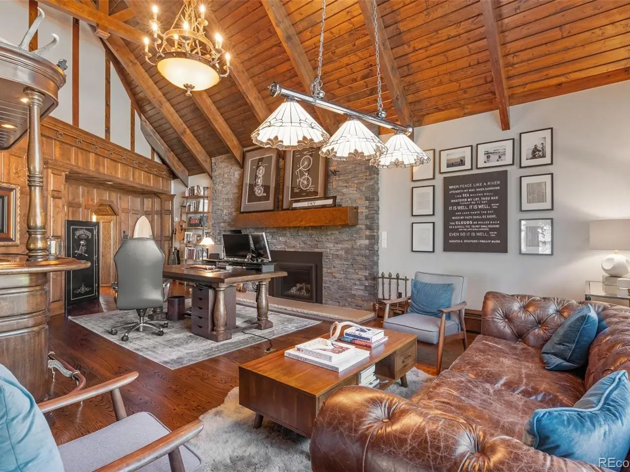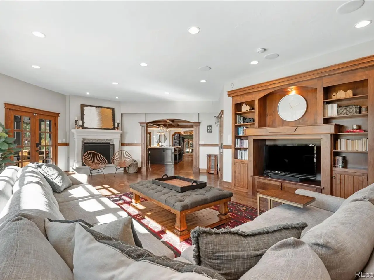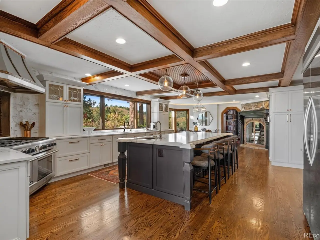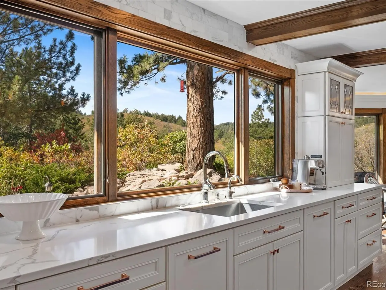 Situated atop 40 acres of breathtaking Colorado landscape, this fully renovated Tudor estate in Sedalia offers an unparalleled blend of sophistication and country charm in a private setting. The gourmet kitchen has been artfully reimagined with top-of-the-line finishes, fixtures, and appliances, featuring a rare artifact from the French Revolution as the cooktop backsplash. Charm and intrigue continue to flow throughout the home, highlighted by remarkable details such as an authentic stage coach bar, historic period fixtures, stunning chandeliers, and custom stonework, complemented by five inviting fireplaces and elegant marble flooring. This residence boasts a striking two-story glass atrium that invites natural light and panoramic views of the majestic mountains and Downtown Denver. The expansive outdoor living areas are equally impressive, showcasing meticulously landscaped grounds complete with low-maintenance turf, serene water features, sports field, grazing pasture, ATV track, shooting range, treehouse, and walking trails that enhance the estate's tranquility. Additional amenities include a spacious bonus/playroom, a state-of-the-art home theater, and two versatile outbuildings, ideal for vehicles, animals, or potential caregivers accommodations. The expansive primary suite is the epitome of luxury with dual walk-in closets, sitting area, fireplace, coffee bar and five piece marble bathroom. The generously proportioned secondary bedrooms are perfect for children and guests. For those with a passion for sustainable living, this estate features a goat and chicken farm, adding a unique touch to this luxurious retreat. Situated just 25 minutes from the Denver Tech Center and a mere 12 minutes from Whole Foods, this property ensures both privacy and accessibility. This exceptional estate is a rare opportunity, embodying the height of luxurious mountain living while providing countless amenities for a lifestyle of comfort and seclusion.