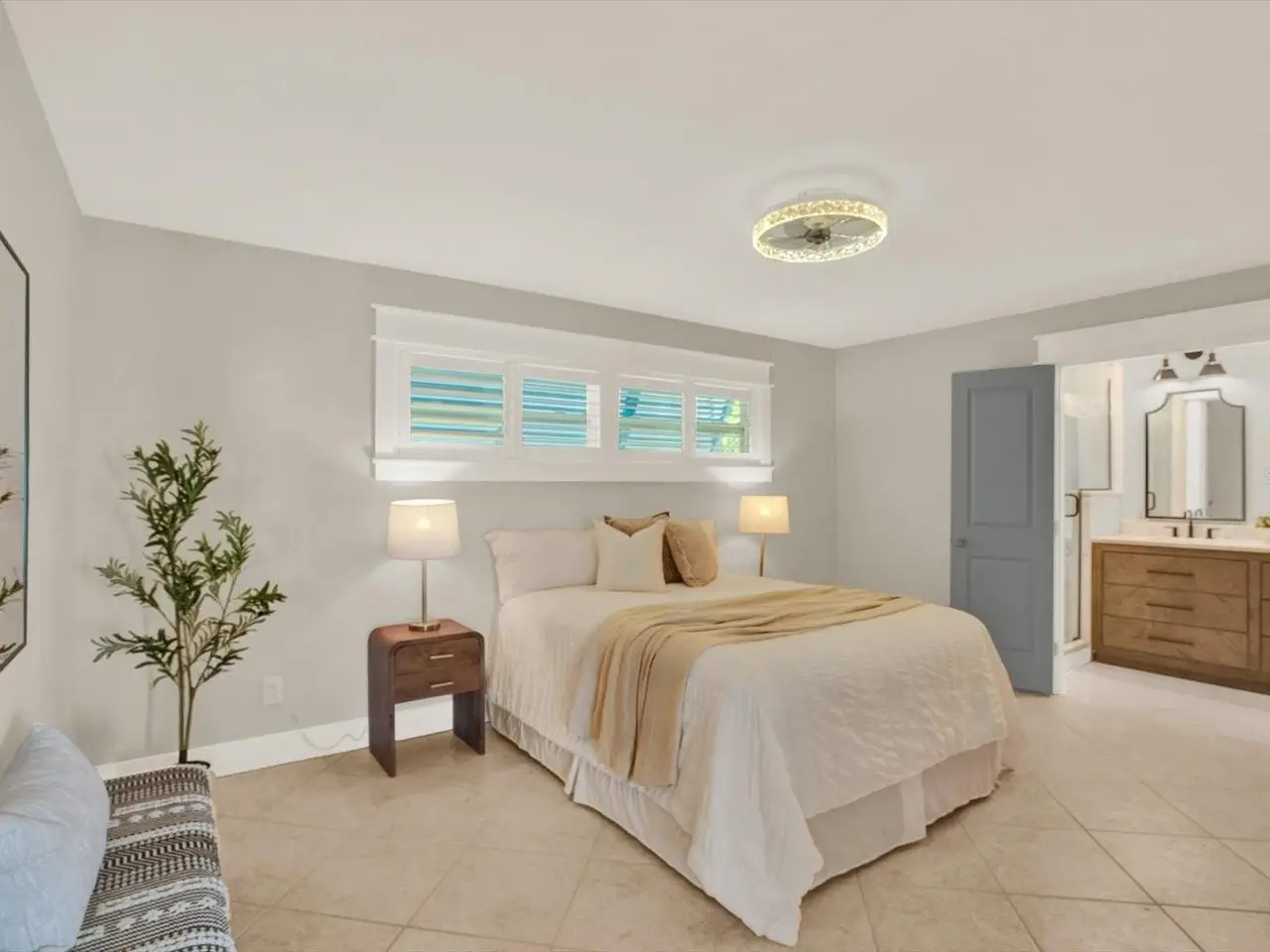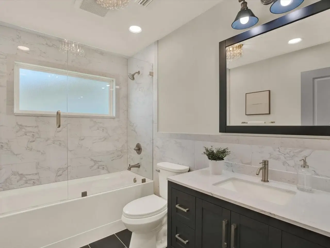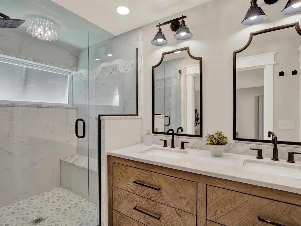 Remodeled en-suite bath with glass shower