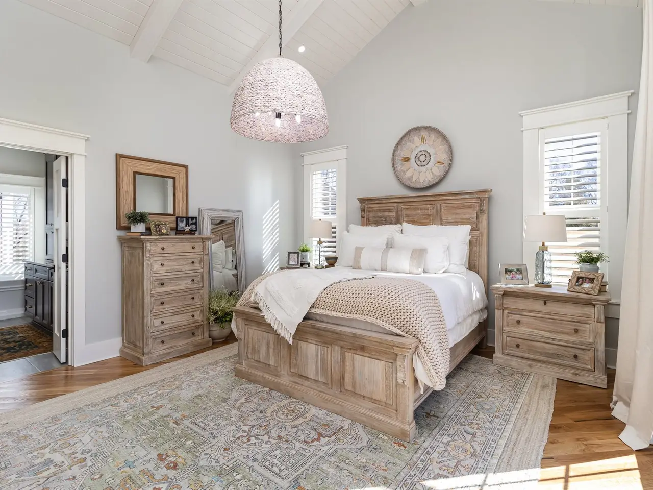 Exquisite Golf Course Estate with Unrivaled Views and Refined Luxury. Discover the pinnacle of luxury living in this nearly-new masterpiece, perfectly positioned on the 7th green of a celebrated Pete Dye-designed golf course. This remarkable home showcases front-facing views of the serene pond on the 8th hole and sweeping fairway vistas from the rear, offering a truly breathtaking backdrop from every angle. Designed for those who appreciate elegance and lifestyle, this sophisticated residence features 4 expansive bedrooms, 3.5 impeccably designed bathrooms, and a flexible second-floor bonus room perfect for a media space, home office, or guest retreat. The luxurious primary suite is a private oasis, where panoramic golf course views, a spa-inspired bath, and a custom walk-in closet with pass-through access to the laundry room combine for everyday indulgence. At the heart of the home, a chef's kitchen awaits - crafted to impress with gleaming white quartz countertops, a designer farm sink, and a tasteful blend of natural wood and white cabinetry. Vaulted tongue-and-groove ceilings elevate the open-concept living area, creating a warm yet airy ambiance ideal for entertaining or relaxing in style. Seamlessly blending indoor elegance with outdoor charm, this home offers multiple gathering spaces. Savor your morning coffee on the spacious front porch as the sun rises over the pond, or host unforgettable evenings on the covered back patio, complete with a dramatic stone wood-burning fireplace - perfect for intimate dinners or festive celebrations. Exceptional Features Include: A spacious three-car garage with soaring ceilings and a built-in indoor basketball court Meticulous craftsmanship and high-end finishes throughout ALL FURNISHINGS NEGOTIABLE with an accepted offer, offering a turnkey opportunity for the discerning buyer This is more than a home? - t's an invitation to experience a lifestyle of serenity, sophistication, and recreational elegance. With every detail thoughtfully curated, this golf course estate redefines luxury living.