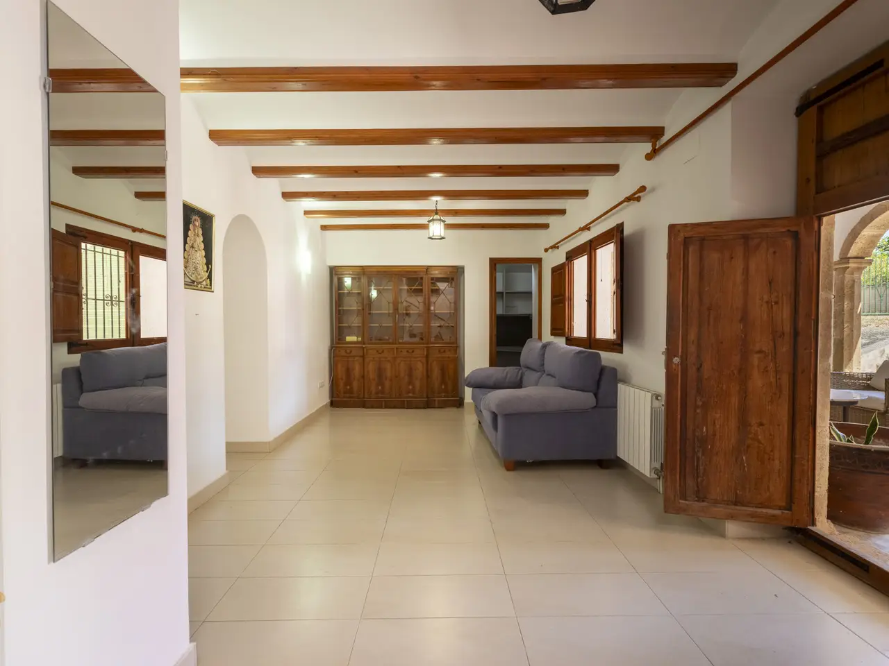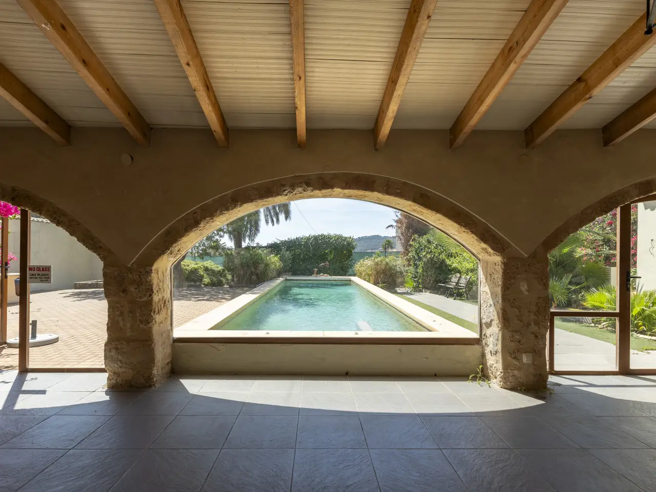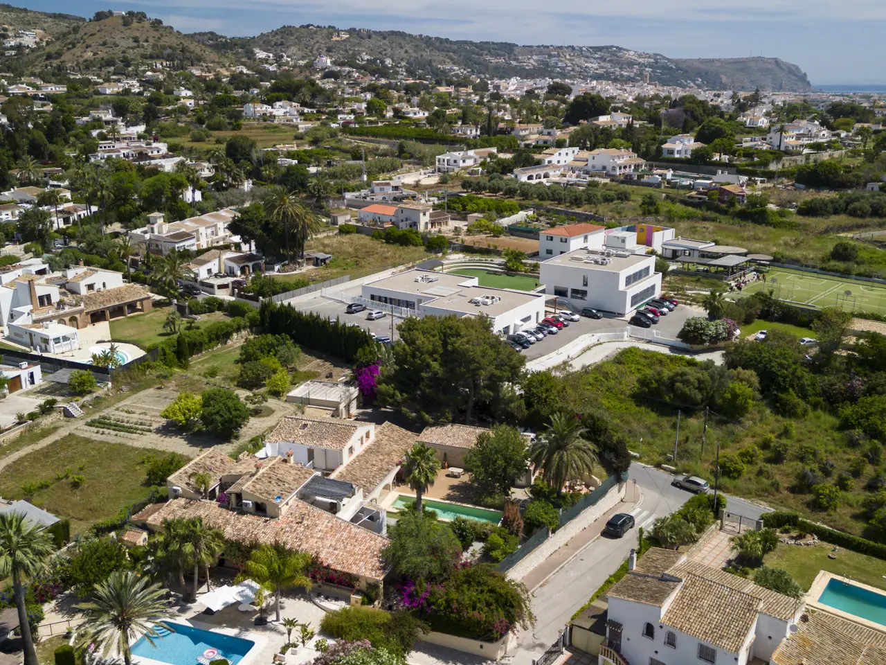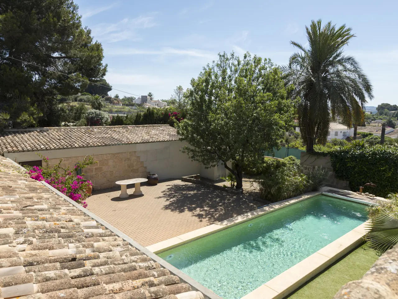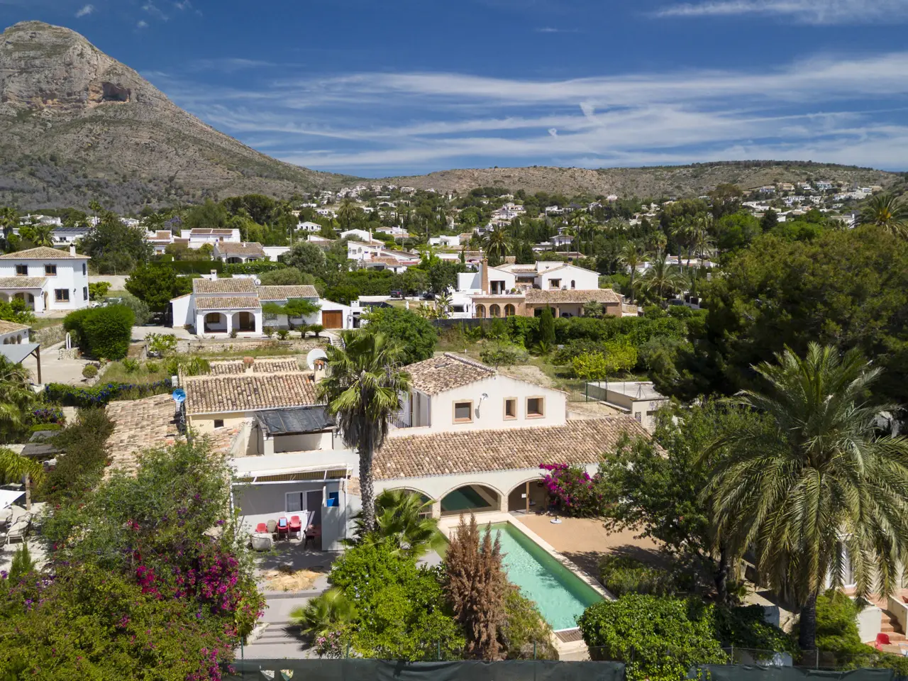 This Mediterranean-style villa is situated on a large, flat plot of approximately 2,100 m² in the Senioles area of Jávea (Alicante). The property stands out for its traditional style, preserving the original Jávea tosca stone arches, offering a private and tranquil setting while being close to shops, the town center, the port, and schools, making it an ideal option for both permanent residence and holidays. The main house features a spacious entrance hall with a fireplace and a small office, living room, dining room, and kitchen with a pantry and access to an outdoor patio. On the upper floor is the sleeping area, with 2 bedrooms, 1 bathroom, and the master bedroom with a walk-in closet and en-suite bathroom. In addition, there is a spacious terrace with open views of the garden area. There is also a guest apartment with 2 bedrooms, 1 bathroom, and a kitchen, perfect for offering privacy to family or friends. The property boasts a spacious glazed terrace next to a summer kitchen with a guest toilet. The private garden, with an automatic irrigation system, surrounds a magnificent 12x3 private pool, creating a perfect environment for outdoor leisure and relaxation. The property is completed by a private garage and central heating system by radiators, ensuring comfort throughout the year. This villa represents a unique opportunity to live in a privileged environment, combining privacy, Mediterranean style, and proximity to all necessary services, next to the international school.