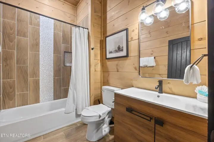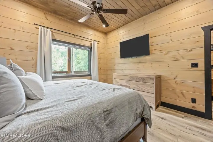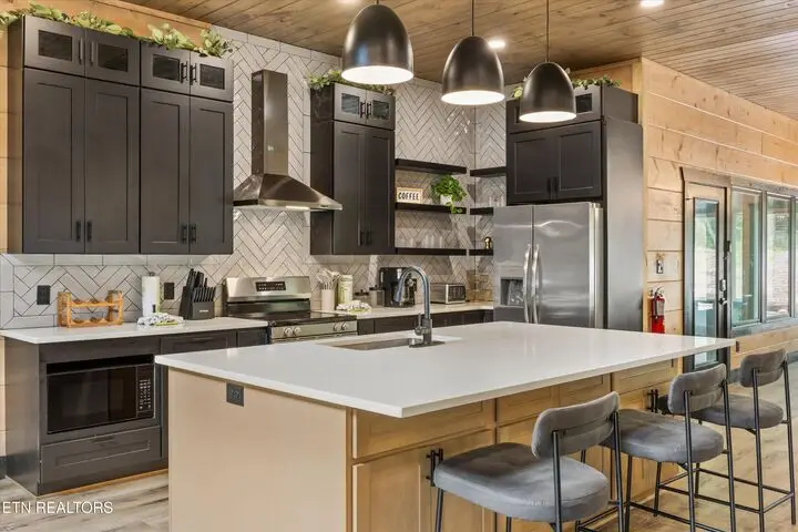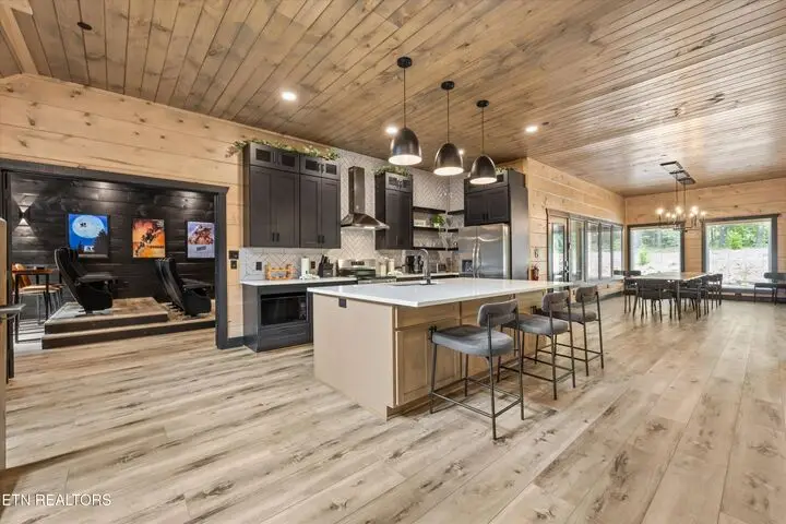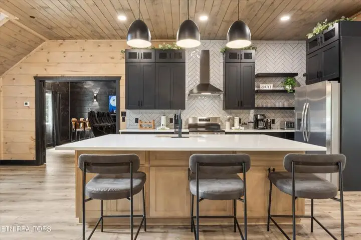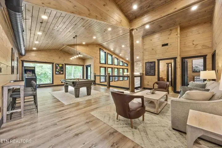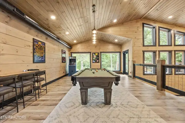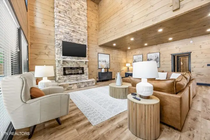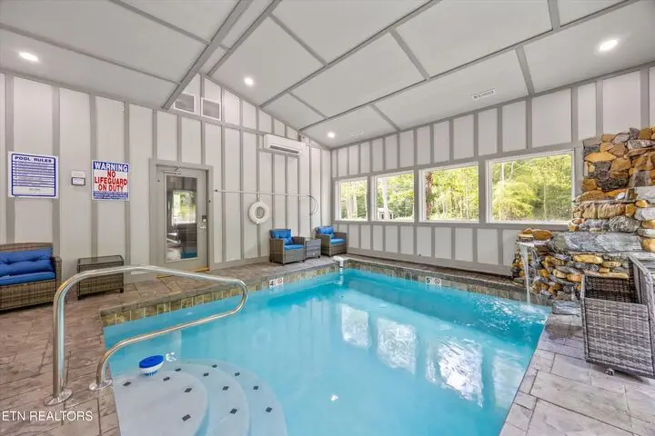 Discover your perfect creek side mountain retreat. Stunning two-story Modern new construction home. Located just moments from the parkway, this property offers convenient access to Sevierville, Pigeon Forge, Gatlinburg, and the world-renowned Dollywood, making it ideal for both full-time living and vacation getaways. Key Features: •Spacious Living: 4,350 Sq' 4 well-appointed bedrooms and 4 full bathrooms provide ample space and comfort for family and guests. . Comfortable accommodations: the home is designed to sleep 16 to 18 guests comfortably perfect for large families or vacation rental. •Entertainment Paradise: Enjoy movie nights in your private theater room, perfect for creating unforgettable experiences. An indoor pool allows for year round enjoyment. •Chef's Dream Kitchen: An oversized kitchen with modern appliances and abundant counter space ensures cooking and entertaining are a joy. •Cozy Ambiance: Gather around the inviting fireplace that serves as the focal point of the main living area. •Natural Beauty: A serene creek borders the subdivision, offering a peaceful outdoor experience and beautiful views and walking trails. •Low Maintenance: Built with durable hand hewn looking concrete siding. This home ensures easy upkeep for years to come. This property seamlessly combines luxury, convenience, and natural beauty. Don't miss this opportunity to make it your own and enjoy all that the Smoky Mountain area has to offer!