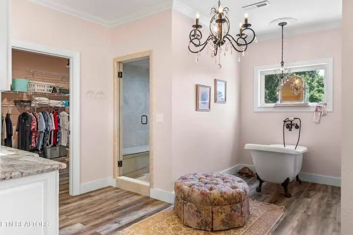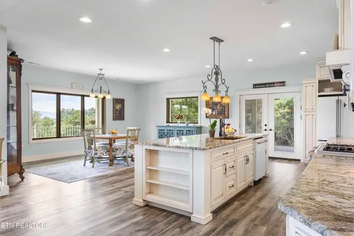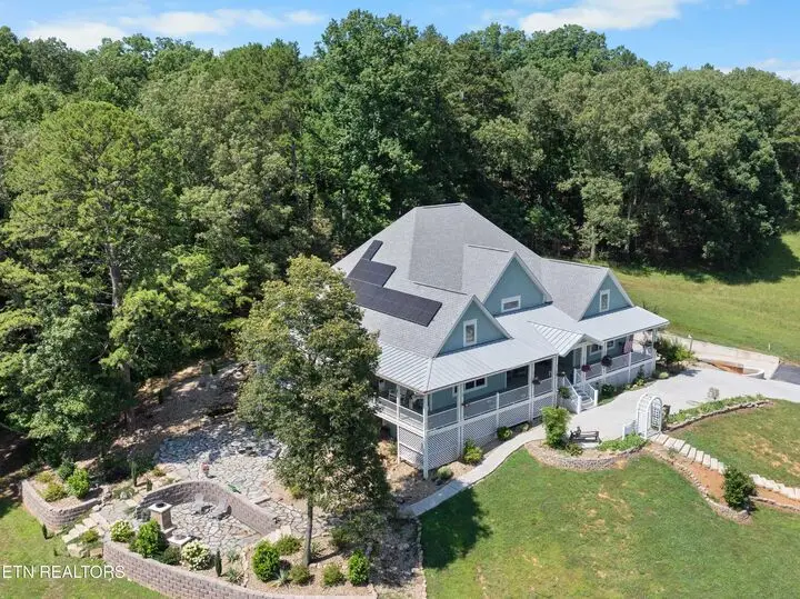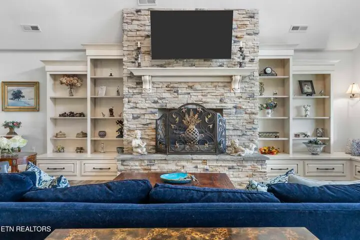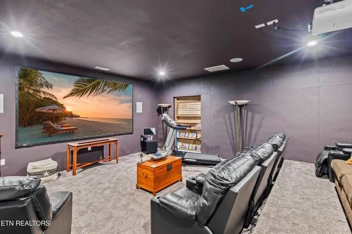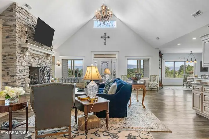 Luxury Smoky Mountain Estate with Unmatched Views and Amenities Discover a one-of-a-kind luxury estate nestled in the heart of the Smoky Mountains. This exceptional property sits on 6.5 private acres, offering breathtaking, panoramic views of the Smokies from nearly every vantage point. Designed for both comfort and grandeur, the four-bedroom, five-and-a-half-bath residence features soaring ceilings, refined finishes, and an open-concept chef's kitchen complete with high-end appliances, an oversized pantry with additional sink and counter space, and abundant storage. Entertain with ease in the private theater room, boasting a 150-inch screen and stadium-style seating for up to 20 guests. Enjoy evenings in the screened-in dining area overlooking the mountains, or unwind on the expansive wraparound porch. The main level includes three bedrooms, perfect for seamless single-level living, while the fully appointed in-law suite in the basement offers its own kitchen, private entrance, and room for multigenerational living. A safe room and space for a future elevator provide additional security and convenience. For car enthusiasts, the property features a four-car garage plus a 40x60 barn, ideal for additional vehicles, toys, or storage. Outdoors, a hardscaped patio with fireplace and water feature, a pond with a walking trail, and meticulously designed landscaping create a serene mountain retreat. Property Highlights: • 4 Bedrooms | 5.5 Baths | In-Law Suite • 150-Inch Private Theater | Seats 20 • Chef's Kitchen | Oversized Pantry with Sink • 4-Car Garage + 40x60 Barn • 6.5 Acres | Pond | Walking Trails • Hardscape Patio with Fireplace & Water Feature • Screened-In Dining Area with Mountain Views • Potential Elevator Access | Safe Room This is more than a home—it's a legacy mountain estate designed for refined living, entertaining, and enjoying the best of East Tennessee's natural beauty.