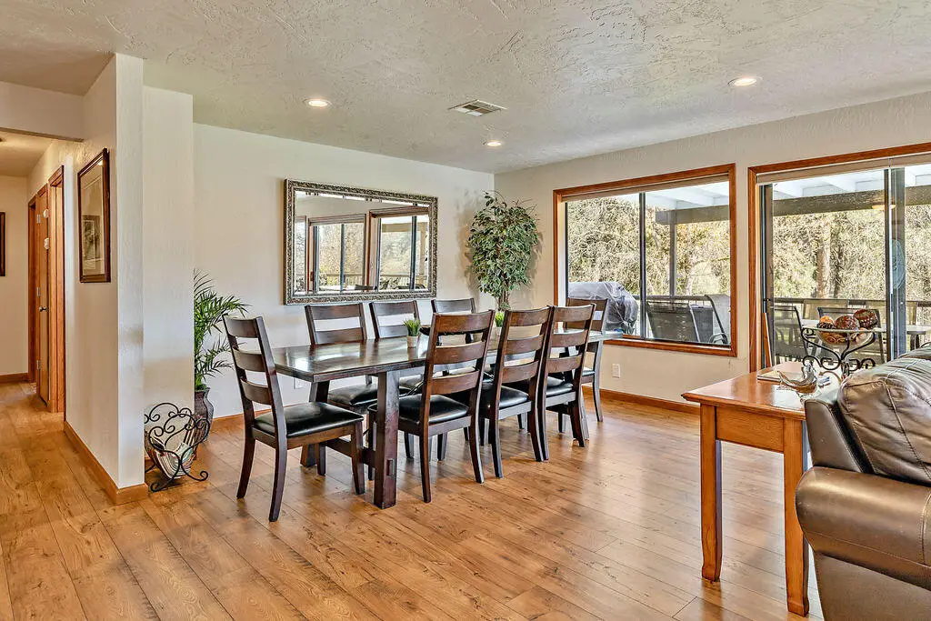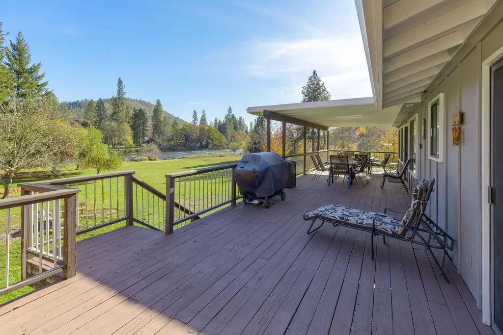 Such a special home and property offering a comprehensive package that's nearly impossible to find on the Rogue River! 1.41 irrigated acres on a beautiful section of the river with a large, usable yard and low bank river access; a turn-key home with two attached garages and a detached shop, plus RV parking with power and water hookups. Recently remodeled with a custom kitchen and baths, flooring throughout, interior and exterior paint, fixtures and other upgrades, the 2,740 SF home offers a flexible layout with diverse possibilities. Single or multi-family living (kitchen & living rooms on each level), weekend getaway and even a vacation rental, this home accommodates a variety of lifestyles! Catch steelhead from your backyard or relax on the 720 SF deck watching the river meander by while you enjoy deer, eagles and other wildlife. Wrap around asphalt driveway and a strong well with new pump and pressure tank. Owner carry considered. Seller is a Licensed Real Estate Broker in Oregon.