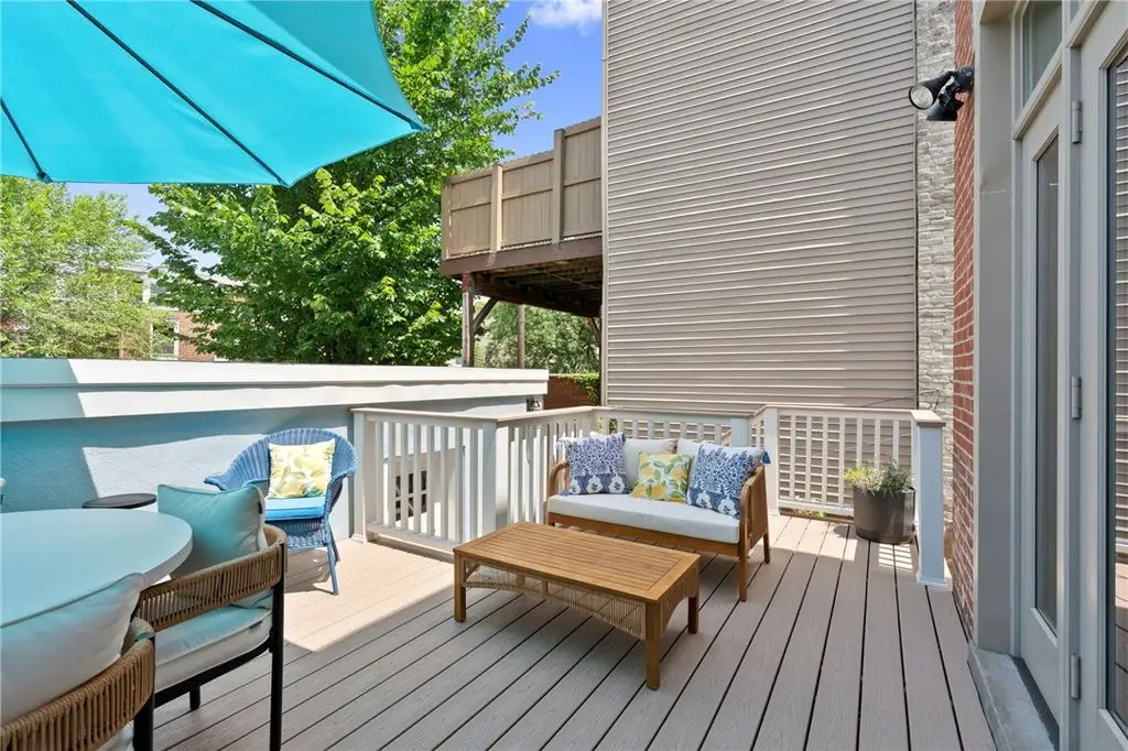Beautiful Shadyside Brownstone just steps from Walnut Street shopping and dining. High ceilings and light filled rooms grace this chic residence. Glass doors off of white cooks kitchen lead to a beautiful deck and two car garage. Second floor has massive family room with exquisite built ins and master bedroom with new spa like bath and ample closet space. Third level has two full sized bedrooms and bath . New mechanics and tasteful decor make this a must see.