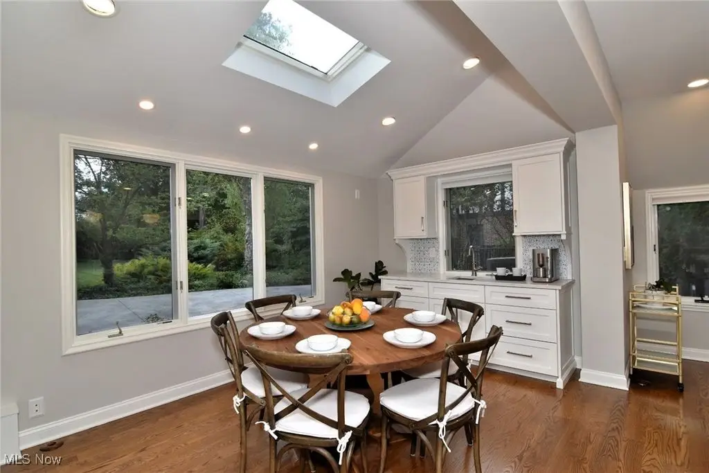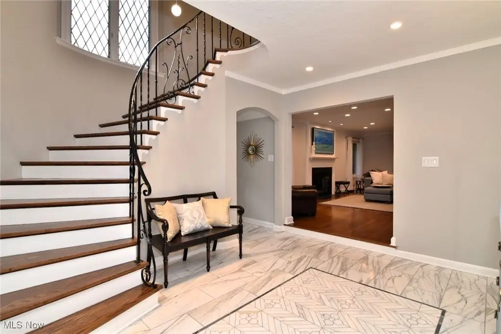 Absolutely beautiful and updated 6 bedroom, 4.2 bath Tudor located on a pretty tree lined street in Shaker Heights. This stunning and stately move in ready home combines the charm and significant architectural details of its original design with improvements and high end/current updates for today's living. Spacious light and bright living room with hardwood floors, fireplace and crown molding. Large dining room with hardwood floors and crown molding. Gourmet, custom, spacious, remodeled eat-in kitchen (2022) with white Shaker cabinetry, center island, quartz counter tops, high-end stainless-steel appliances, breakfast/coffee bar, 2 sinks, sky lights, ample storage and counter space overlooks the beautiful rear yard. First floor includes: foyer with dramatic circular staircase, wood paneled library/study/office with fireplace, leaded bay window and built-ins. Family room with vaulted ceiling and wet bar transitions to the patio and rear yard. Mud room area at rear entry with built-ins and cubbies. Second floor features 5 bedrooms, 3 full baths and laundry. Primary suite with large walk-in custom closet and gorgeous, glamour, updated ensuite bath. Third floor with 6th bedroom and full bathroom, additional living area and custom storage and closet space. Lower level with finished rec room and half bath. This majestic home is situated on 0.60 acres and is great for family living or entertaining. Complete with attached garage, inviting patio, amazing rear yard and central A/C. Flexible floor plan with many updates including - a/c condenser (2023), state of the art kitchen (2022), regrading front and rear yard (2023), new trees/grass (2022), interior painting (2022), new shed (2022), custom concrete driveway (2022), new a/c unit and lines (2021/2022) and more! Great location - close to Shaker Nature Center, shopping, restaurants, public and private schools, CWRU, CCF, UH and Circle, Cleveland's cultural hub.