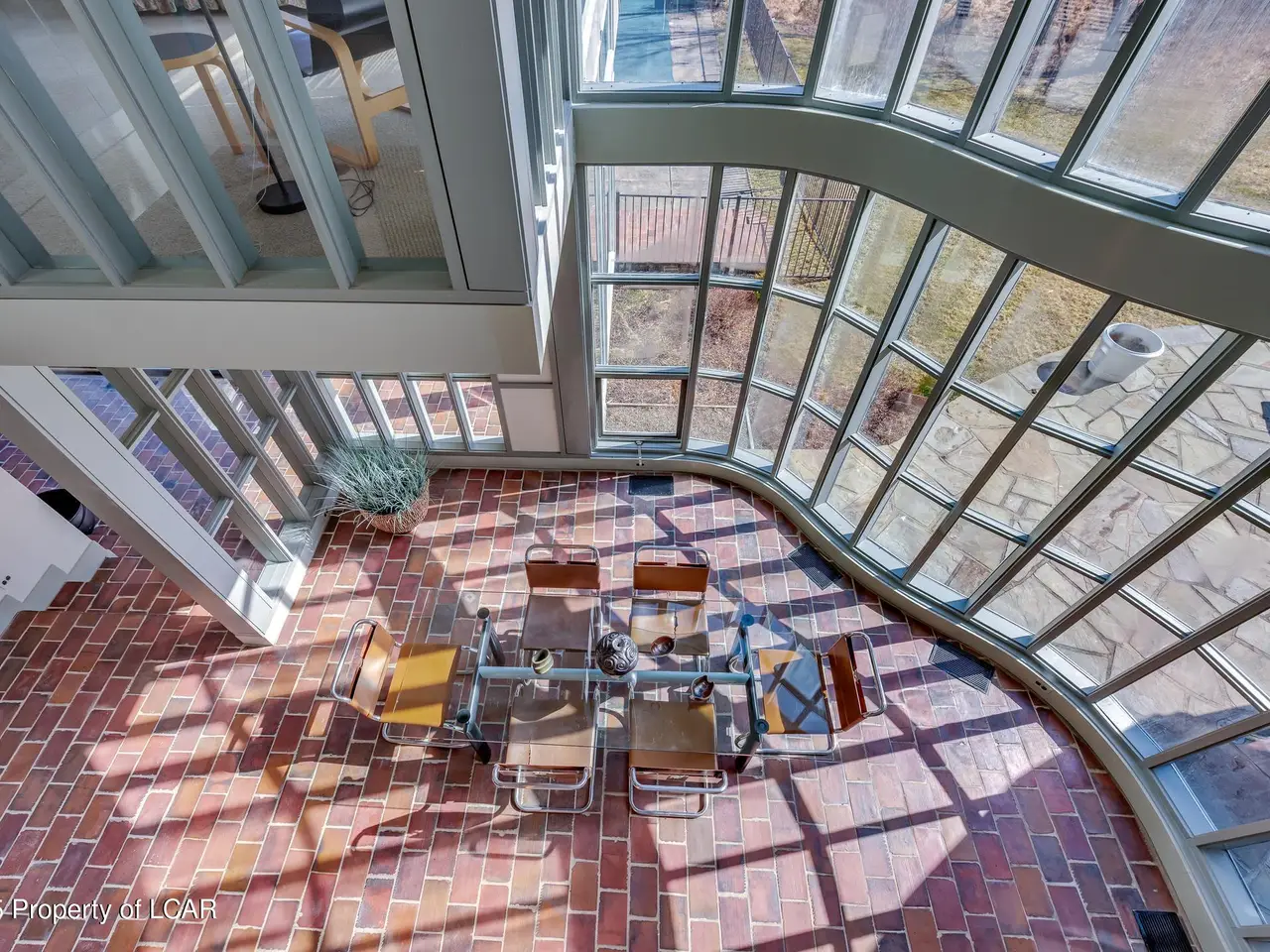 This exceptional 3-story residence, situated in a picturesque 4-acre setting, was designed by world renowned architect Peter Bohlin. The remarkable home is dramatic yet inviting.Source:Supplied Impressive columns of glass and steel combine with intricate millwork with hints of artful, whimsical detail. An array of windows provides sweeping views of the large stone patio, pool, and scenic surroundings.