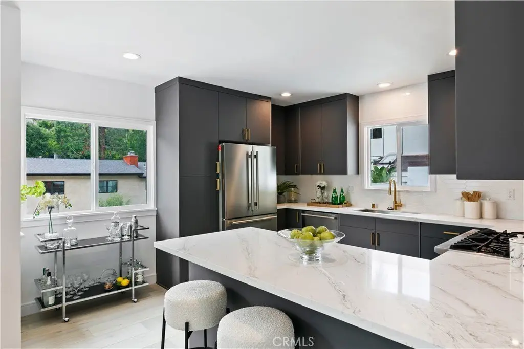 Welcome to your dream home, South of the Boulevard in Sherman Oaks! This beautifully just completed modern residence offers three spacious bedrooms and four luxurious baths, all enhanced by high-end finishes. Step inside to discover an open floor plan adorned with elegant laminate flooring, seamlessly connecting the living, dining, and kitchen areas. The en suite primary bedroom provides a serene retreat with its sophisticated design and ample closet space. Enjoy the convenience of an attached direct entry garage and an oversized circular driveway, making parking a breeze. Relax and entertain in your private oasis featuring a sparkling pool and a cozy fireplace in the living room and outside on the patio. Laundry on the main floor adds to the home's practical charm. Nestled in a walkable neighborhood, you're just moments away from premier shopping and dining options. Plus, with easy access to the 101 freeway, your commute will be a breeze. This stunning home is a perfect blend of modern luxury and everyday convenience. Don't miss out on this exceptional opportunity!
