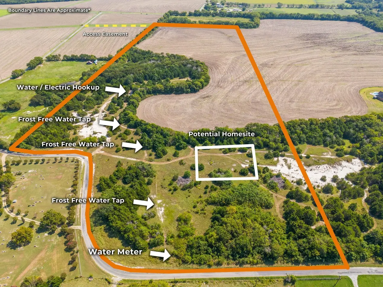 Tucked away just 15 minutes from Sherman, this 44.169-acre of ag-exempt property offers a rare blend of natural beauty and ready-to-use improvements. Imagine building your dream home on the highest point, where sunsets spill across rolling pastures, ponds, and a distant church steeple. With over 1,300 feet of road frontage and three miles of winding trails, the land invites exploration and peace in equal measure. A finished cabin with full utilities, bath-kitchen space, lofts, and a covered porch is already in place, along with a powered shipping container, upcoming shed, picnic area, and multiple water access points. Whether you're seeking a private retreat, weekend getaway, or a forever homestead, this land is more than just property. It's a place to write your next chapter.