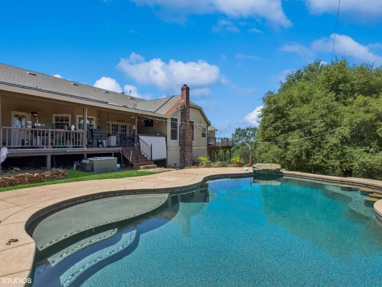 Stunning Country Estate! This elegant single-level home is situated on a sprawling 10-acre lot in the prestigious Sunridge Ranch community. The bright and open floor plan boasts 15 foot ceilings, with a charming brick and stucco exterior. The gourmet kitchen is equipped with a walk-in pantry and the home also features two luxurious master suites that offer ultimate comfort and privacy. Enjoy breathtaking distant and local views from the property, surrounded by beautiful wooded and private acreage. Located conveniently across the street from the fire retention pond ensuring safety and peace of mind. Additional features include a mobile fire suppression system, 3 Tesla back-up batteries, and zoned for highly desirable Oak Ridge High School in EDH & Latrobe School District for elementary and middle school. Outdoor amenities include a personal campsite, a pool with a Cabo shelf and swim-up bar, a fenced agricultural area with fruit trees and vegetable beds, and a chicken coop. The expansive outdoor living space is perfect for entertaining guests. The property also boasts a full-height crawl space, a cedar-floored master walk-in closet, and luxury vinyl flooring in the family, dining, and living rooms. This estate truly offers the best of country living with modern amenities.