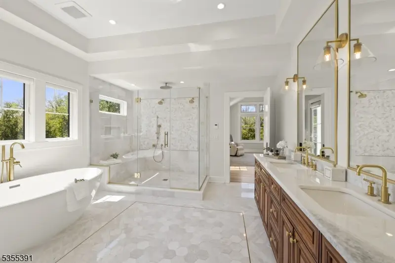 Welcome to this stunning, architect-designed luxury home in the prestigious Hartshorn section of Short Hills. Fully gut-renovated within the last two years by renowned architect Tom Baio, this 6-bedroom, 6.5-bath residence offers exceptional craftsmanship, thoughtful design, and modern amenities. The expansive floor plan includes a first-floor guest suite and ensuite baths in every bedroom. The chef's kitchen features custom Omega cabinetry with built-in inserts, an oversized quarter-sawn white oak island, quartzite countertops and backsplash, a Wolf 48 range, Sub-Zero 60 refrigerator/freezer, two dishwashers, and a large walk-in pantry with a second dishwasher and mirrored coffee bar backsplash. Enjoy indoor-outdoor living with sliding doors that open to a fully fenced, flat backyard with a bluestone patio, gas line for grill or firepit, and room for a pool. The primary suite on the offers vaulted ceilings, a private balcony, a spa-like marble bath with radiant floors, a soaking tub, and two walk-in closets with a center island and dressing area. Additional highlights include white oak floors, two fireplaces, a surround sound system (interior and exterior), 3-car heated garage, Andersen 400 series windows and doors, a circular driveway, and HardiePlank/Azek siding. Featuring heated bidet toilets, instant hot/cold filtered water in kitchen and second-floor laundry no detail is spared. Conveniently located near public transportation, Gero parks, shopping, and top-rated schools.