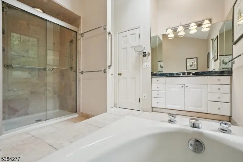 Be prepared to fall in love with this grand 5 bedroom Colonial, set on .42 acres of lush property in the heart of Short Hills, just blocks to town, top schools and train stations. Ideal floor plan with massive formal living room with fireplace, dining room with fireplace, gourmet eat-in kitchen with natural stone countertops and top of the line stainless steel appliances open to family room with high ceilings and fireplace, pair of French doors open to a spacious deck overlooking the beautiful totally level property. There is a 1st level great room / home office with fireplace and built-in bookcases. Formal entrance hall and beautiful powder room and laundry room complete the 1st level. The 2nd level has a luxurious Primary Suite with walk-in custom closet, + 2 additional walk-in closets and spa-like bath with great natural light, a jetted tub and large glass enclosed shower. 4 more large bedrooms, 2 of which have en suite full baths, and an additional hall bath complete the 2nd level. Beautifully finished lower level with recreation room, wine cellar, office, powder room, mudroom and access to 2-car garage. Ideal location on a prestigious quiet street walking distance to the Short Hills Train Station (just .7 miles). Bus service to highly rated Hartshorn Elementary school (#3 in New Jersey), as well Washington School, Millburn Middle & High School. This great Short Hills home is the dream home you've been waiting for. An architect has confirmed there is plenty of room for a pool. Low taxes!