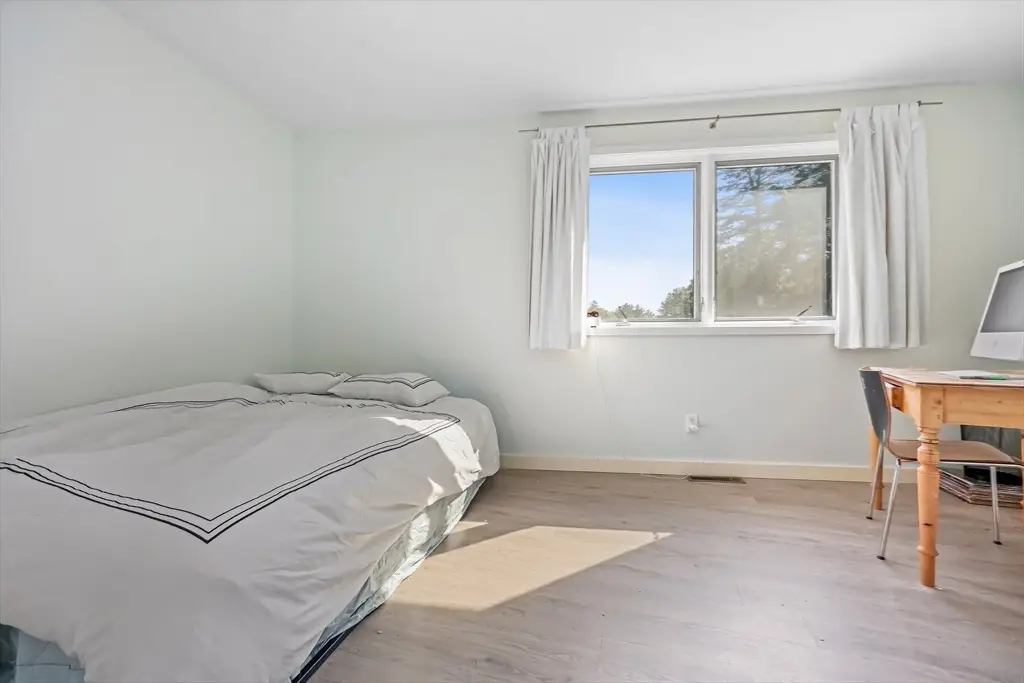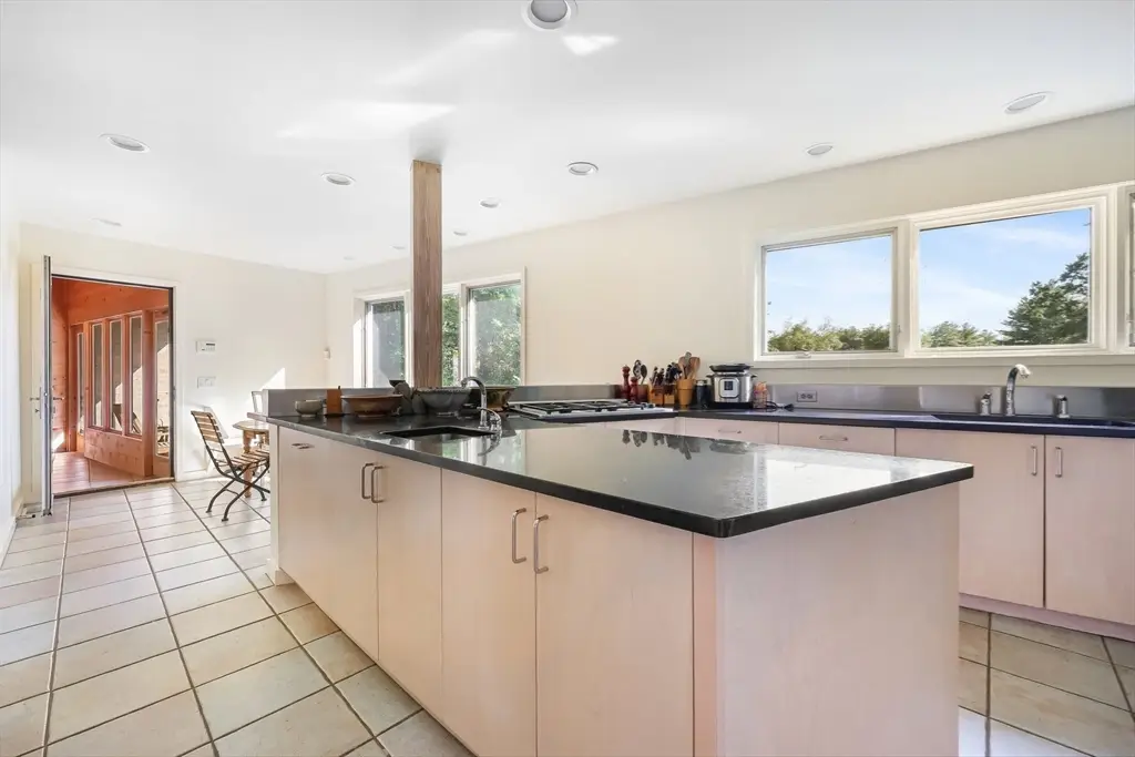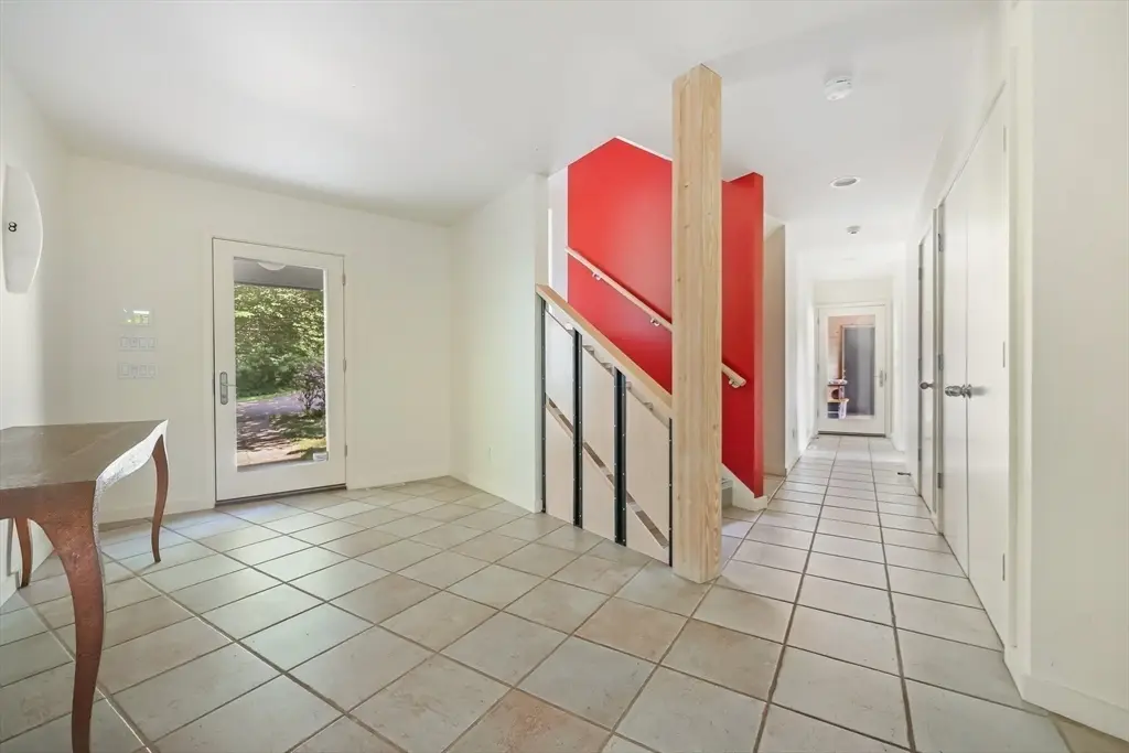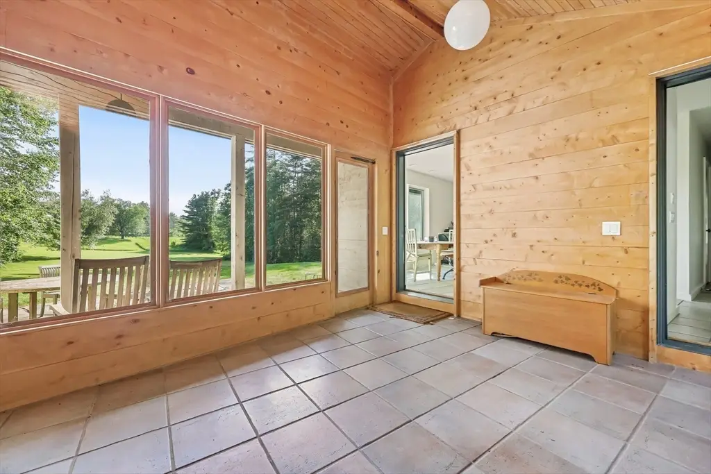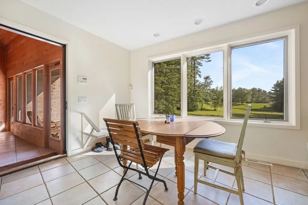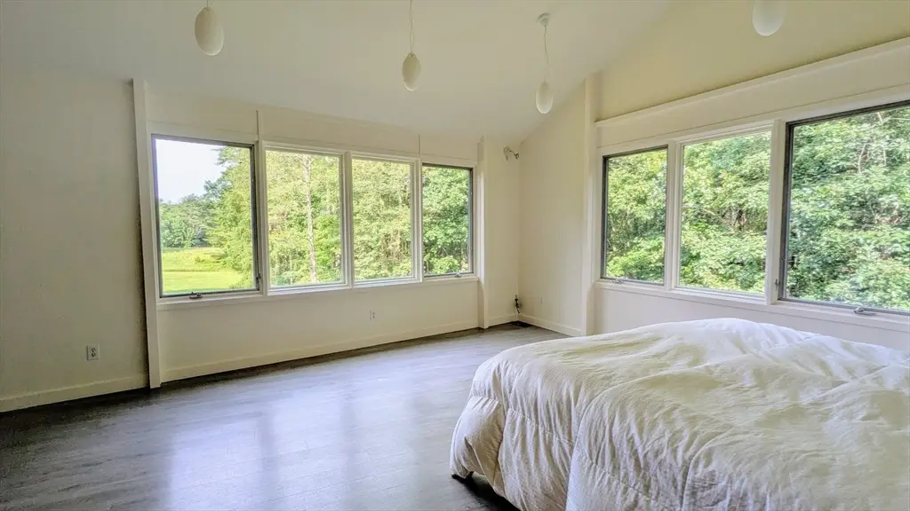Designed by architect Kathleen Lugosch, founding Director of the Master of Architecture at UMass Amherst, this extraordinary residence is sited on 7.9 serene acres that look onto 25 additional acres of protected land, providing rare privacy that's a 10-minute drive from the center of Amherst and its colleges, cultural attractions, and village life. A formal entry introduces the home's signature design elements: custom millwork, translucent screen partitions, and a fluid layout that guides you through the space. Expansive glazing along the entire southern facade floods the interiors with natural light and offers uninterrupted views of the rolling fields beyond. The upper-level features 3 bedrooms, including a luxurious primary suite with ensuite bath and views of the meadow throughout. The lower level offers versatile secondary living spaces, with 1 bedroom, a library and media room, and full bath. The office wing offers 2 large office spaces with stunning views of the property.