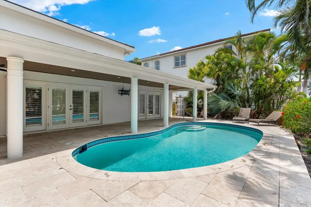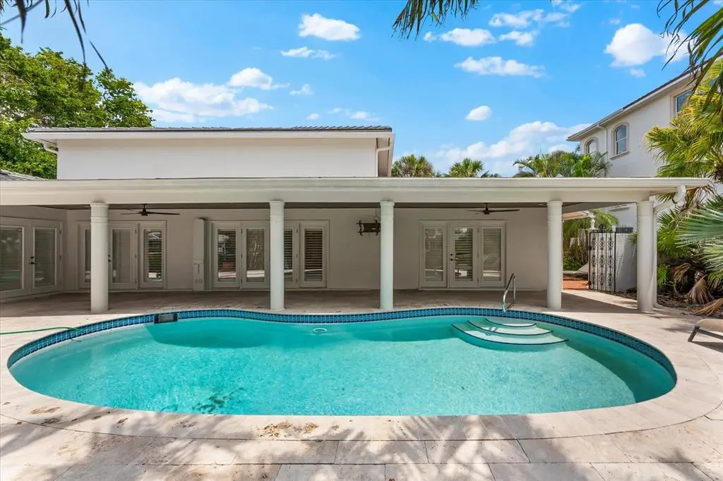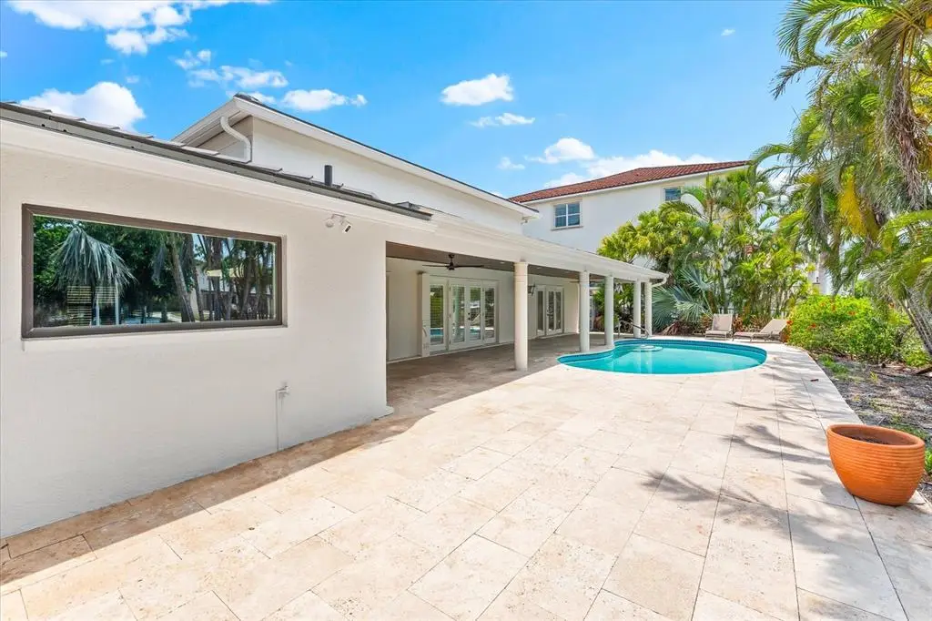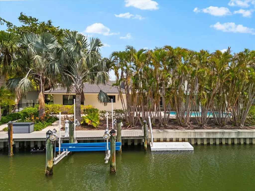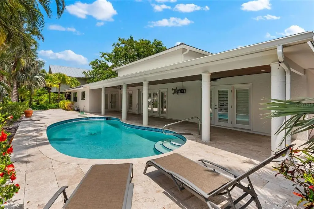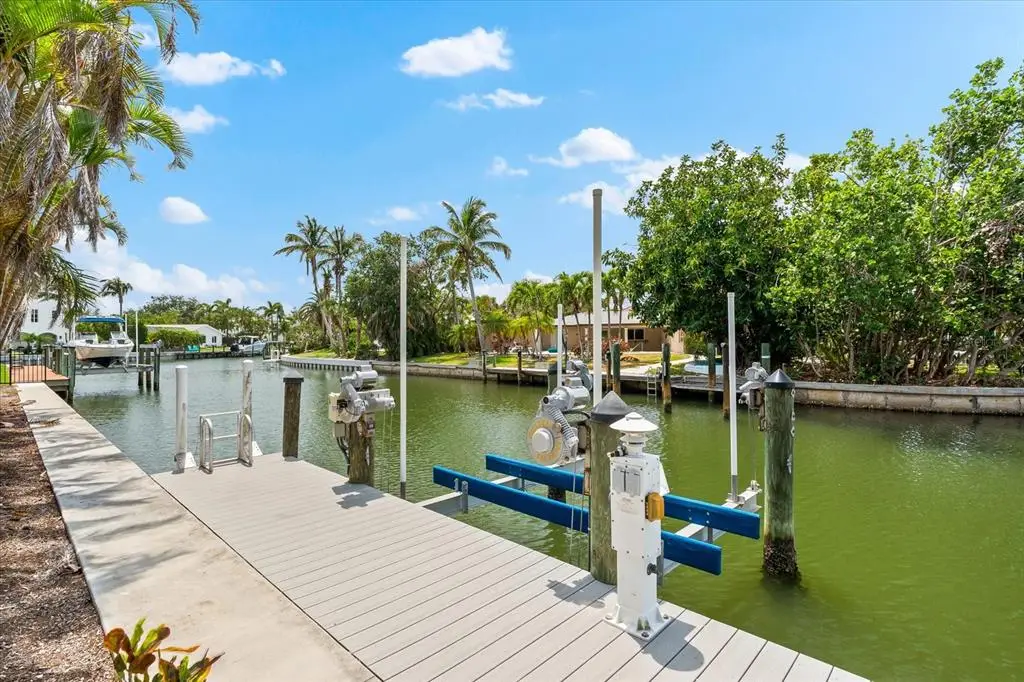 This island-style, ranch waterfront home offers an incredible opportunity to renovate and make it your own. While it did take on water during Hurricanes Helene and Milton, it boasts several key updates including a newer roof, fresh exterior paint, impact windows and doors, vaulted ceilings, and charming plantation shutters - just a few of the features that make this Siesta Key property so appealing. The open floor plan 3 bedroom, 3 full baths is designed for both comfort and privacy, featuring a completely secluded primary suite with its own walled sun terrace. Two guest suites are thoughtfully positioned for privacy as well. Abundant natural light fills the home, which opens out to a stunning open-air pool and a travertine terrace perfect for entertaining. Waterfront features include a newer seawall, boat lift, floating dock, Trex deck, and sailboat-depth water with immediate access to the Intracoastal Waterway - just minutes from Skier's Island. Plus, you're only a short trip away from the vibrant Siesta Village and the world-renowned Siesta Key Beach.