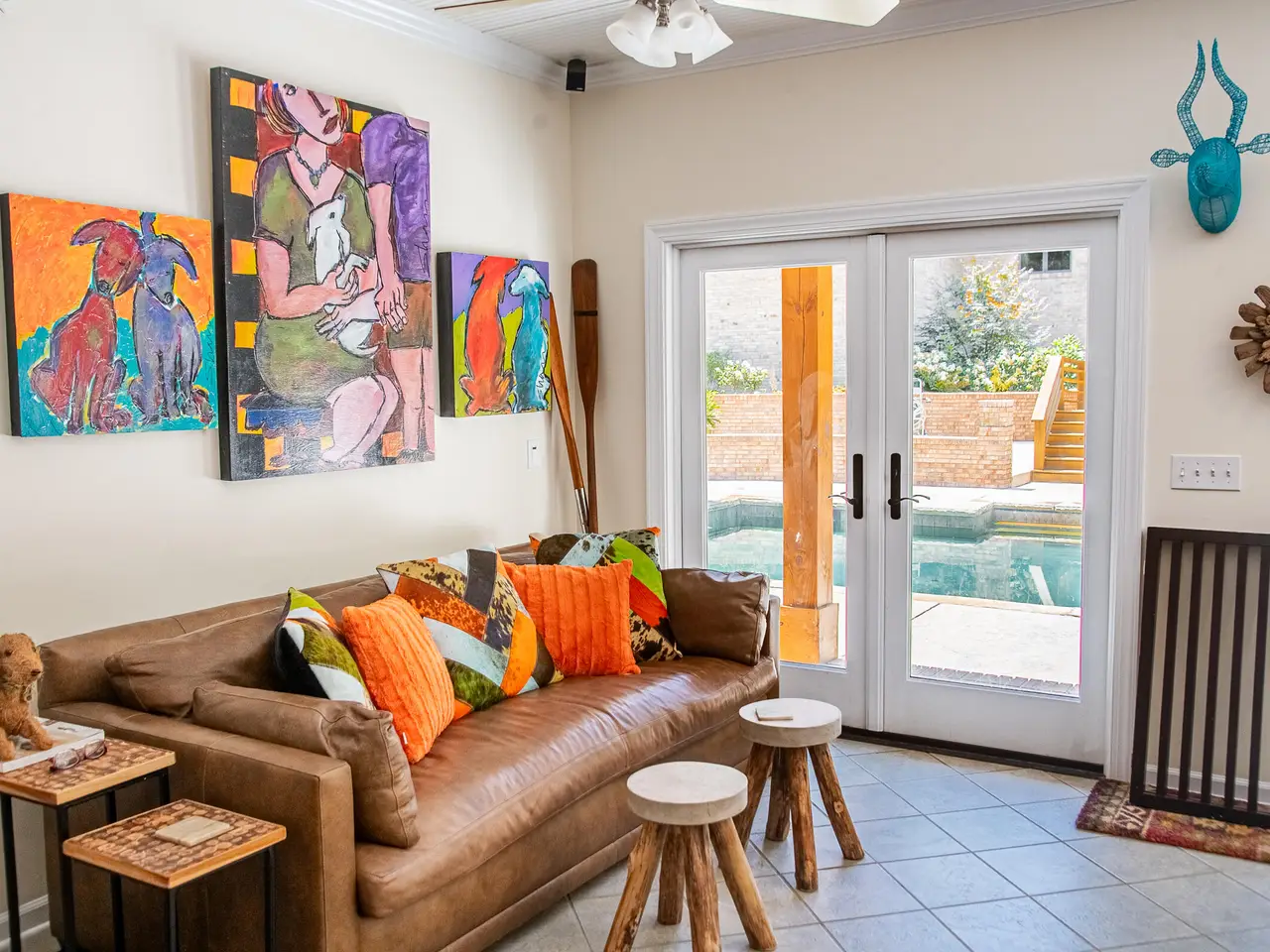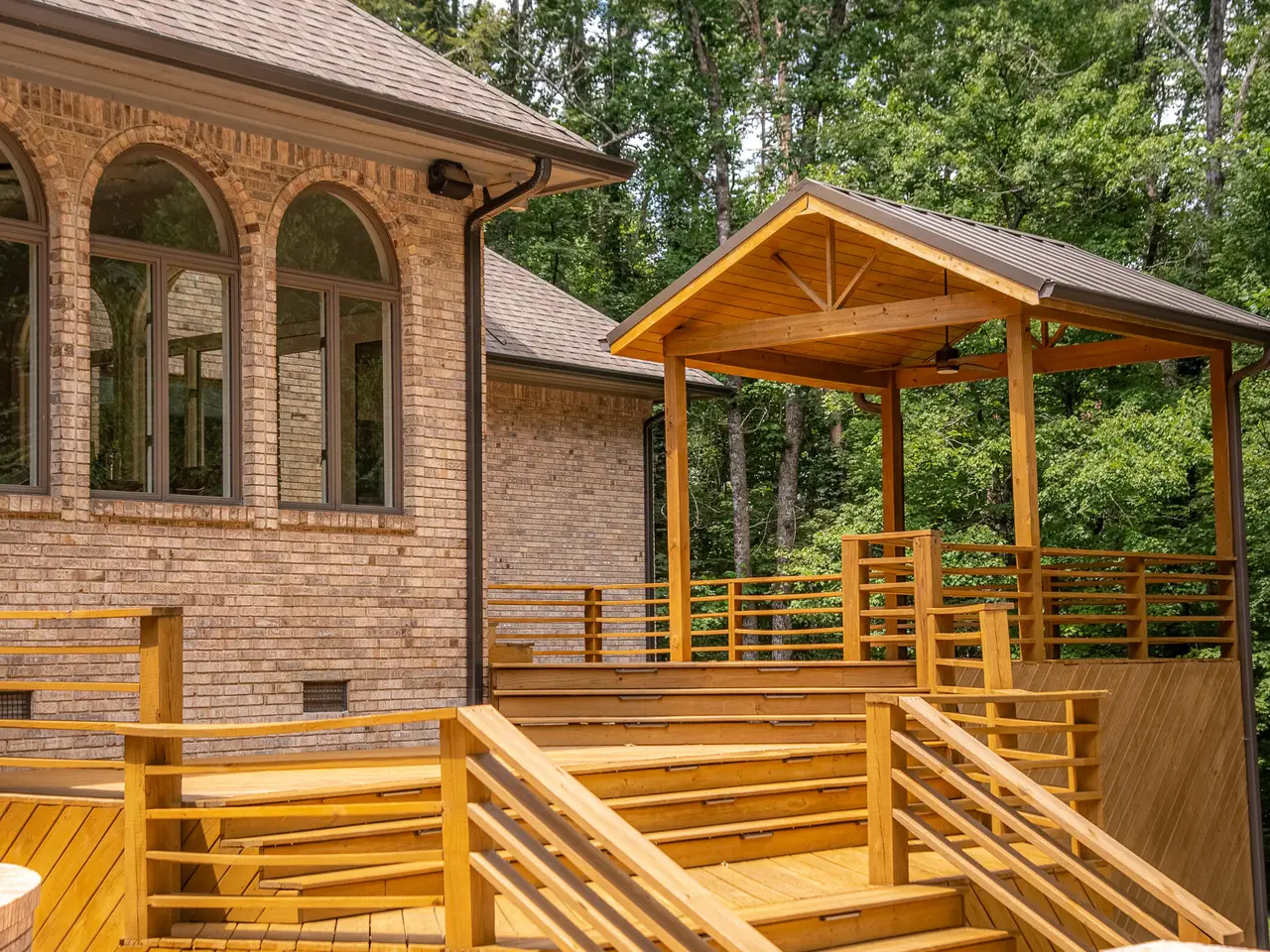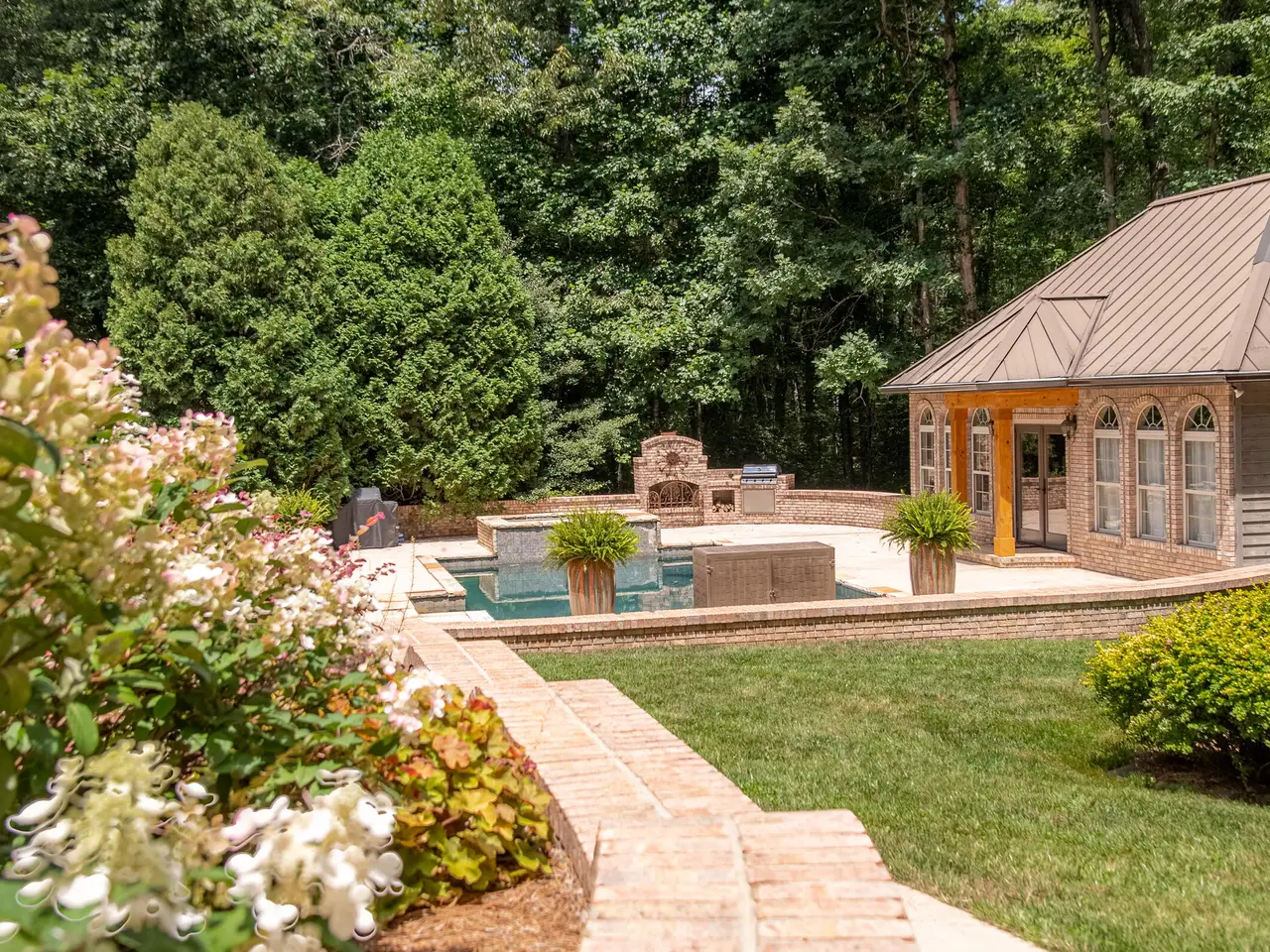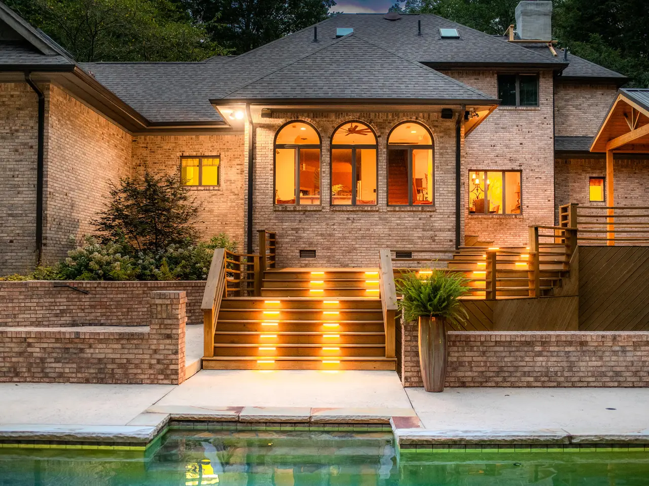Fabulous estate property on 3.3 acres in the heart of Signal Mountain, offers both privacy and luxurious resort-style living. A long driveway through lush grounds leads you to the home. The all brick home features 10 foot ceilings, hardwood flooring, fireside den and living room, dining room, kitchen, office with built-ins, powder room, spacious primary bedroom on the main level with new Calacatta tile shower, chef's kitchen with Viking, Wolf and Kitchen Aid appliances, custom cabinetry and granite countertops. A most inviting sunroom overlooks the salt water pool, spa, 3 tiered decking with Pergola, outdoor fireplace, gathering and grilling area and pool/guest house - a true oasis to come home to! Upstairs are 2 additonal bedrooms each with ensuite bath. A separate stairway leads to the light filled 4th bedroom/bonus room and bath. There is a main level 3 car garage and a lower level gym/workshop. The main house has 3,989 square feet with an additional 584 square feet in the lower level gym space. The 710 square foot poolside studio guest house offers a fireside living area, kitchen with all Kitchen Aid Appliances and Laundry and 5th bedroom and bath. The grounds are truly stunning - and so very private. a year round spring runs parallel to the back yard for added privacy. Beautiful hardwood trees and native plants provide a lush setting. There is a charming garden shed in the backyard and an additonal building with garage door that has a car lift for working on cars/storage and workshop. The entire backyard is fenced and there is a separate fenced area for dogs. Zoned for top rated Signal Mountain schools, 72 Cool Springs is more than a home, it is a lifestyle!