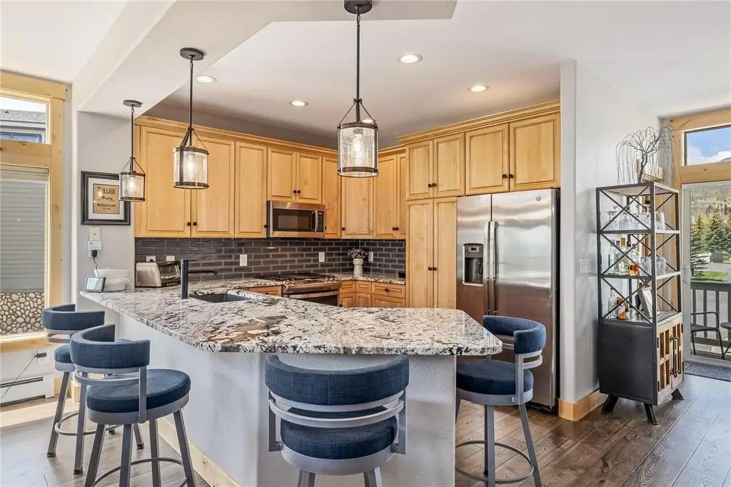 Fantastic mountain townhome in one of the best locations in Blue River Run. This desirable end unit offers a functional, open floorplan with only one shared wall and abundant natural light. Enjoy serene views of the river, adjacent wetlands, and direct access to the Silverthorne recreation path. Thoughtfully updated with new flooring, cabinetry in the kitchen and bathrooms, modern appliances, and brand-new windows on the upper level. Enjoy the large, covered deck or walk-out patio with private hot tub for relaxing after a day of activities. An attached 2-car garage adds convenience, and with a central location to all the major ski resorts, this home is an ideal Summit County basecamp for year-round adventure or a comfortable mountain retreat.