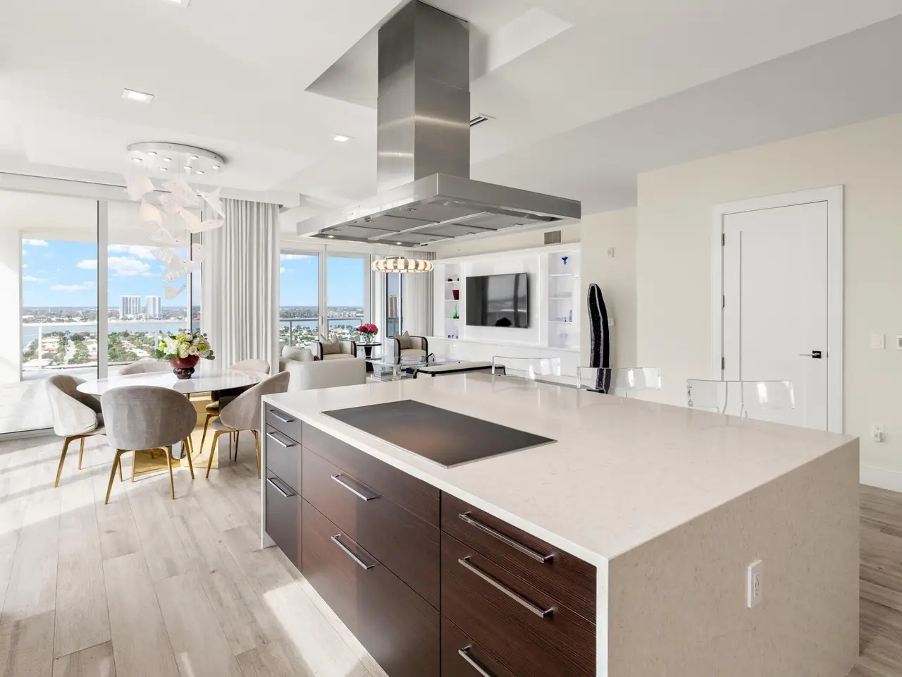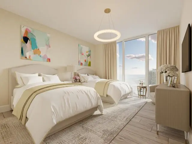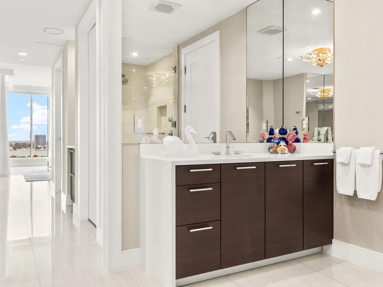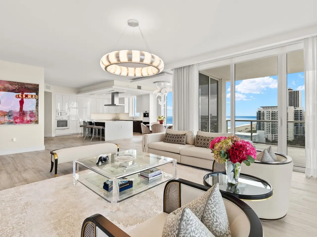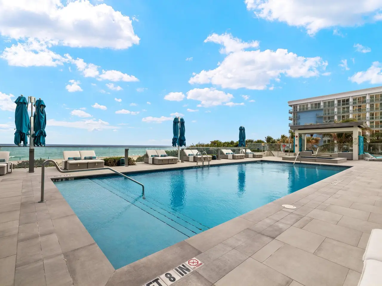 Indulge in unparalleled luxury at Vistablue with this exclusive residence. Featuring sweeping city, Intra-coastal, and ocean views 17 D is the epitome of sophistication. This 17th-floor residence has been elegantly crafted by Haleh Design. Complementing its design is Poggenpohl custom cabinetry, quartz counter tops, and premium Miele and Subzero appliances, complemented by Lutron shades and high-impact glass throughout. Enjoy lavish living with high-end furnishings amidst five-star amenities including a gated entry with security, on-site concierge services, an elevated pool terrace, cabanas, spa pool, and a state-of-the-art fitness center. With an expansive private beach and social lounge, this residence exemplifies sophistication and opulence at every turn.
