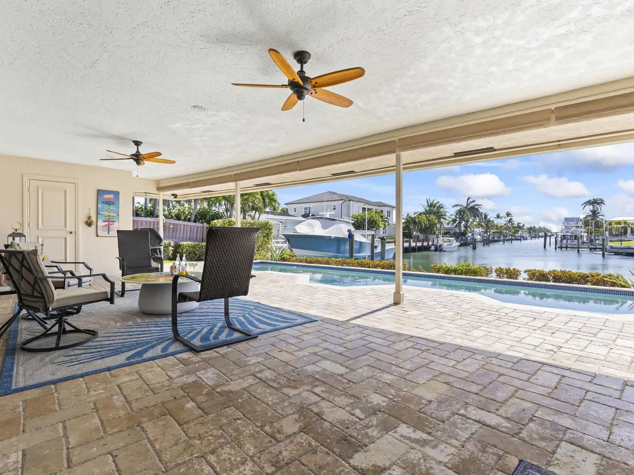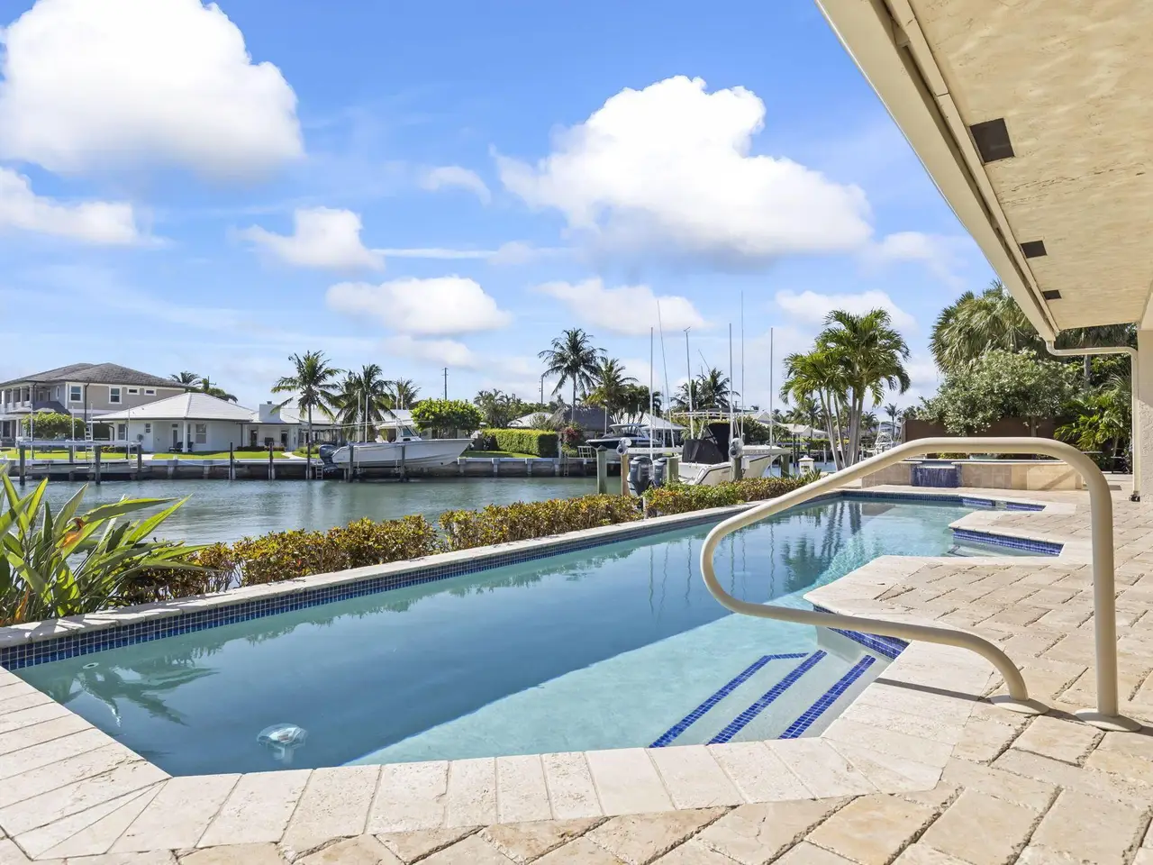 Steps from Singer Island's gorgeous beaches, this waterfront gem offers wide canal and Intracoastal views, 90+ feet of deep-water frontage, and no fixed bridges, ideal for boaters. The 3BR/3BA/2 Car Garage home features 14'6'' vaulted ceilings, travertine marble floors, custom cabinetry, and a chef's kitchen with granite countertops, stainless appliances, and a copper range hood. Enjoy water views from nearly every room, a heated pool, 64' dock, 14k lb lift, and a large covered patio with cabana bath. Located across from Ocean Reef State Park and minutes to Peanut Island, Palm Beach Inlet, upscale shopping and fine dining. Live the best of coastal Florida in total privacy and comfort. Concrete Tile Roof 2014, Newer AC's, Recent $30k in dock & seawall maintenance done. Low HOA! Direct access to the Intracoastal Waterway and ocean within minutes. No fixed bridges. This home has a great foundation for you to make it your own. Making it a perfect Vacation home or full time residence.