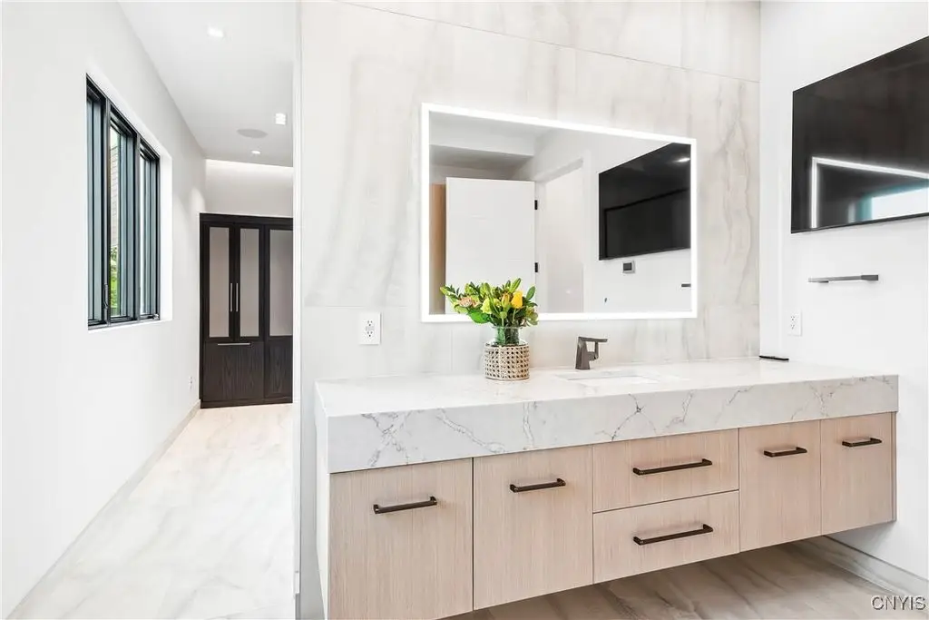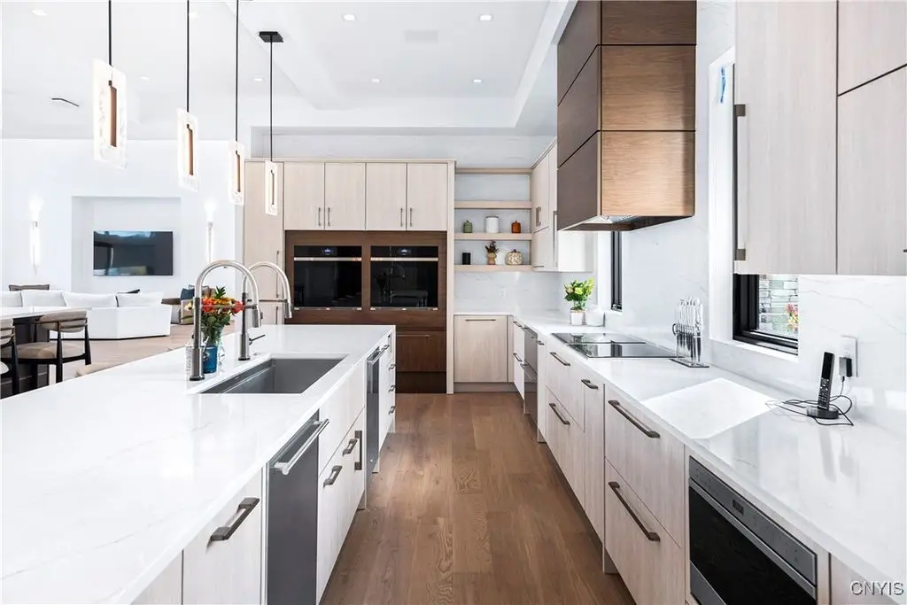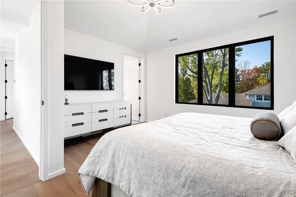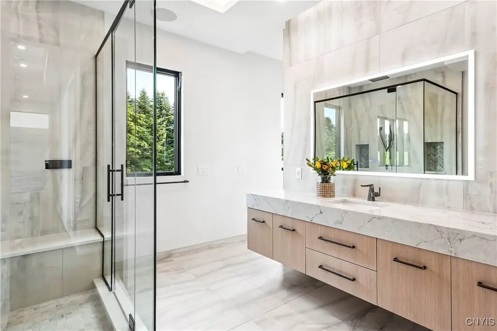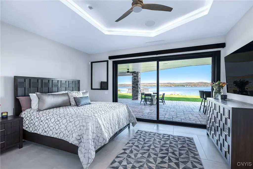 Wow, prepare to be amazed by this stunning custom-built contemporary home situated on 200 feet of pristine lakefront on Skaneateles Lake. With a fully developed waterfront perfect for all your lakeside and boating activities, this newly constructed "Mansion" offers luxury living at its finest. Featuring 9 bedrooms, 14 baths, 2 Chef's kitchens, a guest suite, and a full glass elevator accessing all levels of the home, no detail has been overlooked. State-of-the-art technology including Savant WIFI controlled custom blinds and lighting scenes, along with top-notch infrastructure, ensure convenience and comfort. Boasting over 12,000 square feet of living space with an adaptable floor plan, each bedroom comes complete with its own en-suite bath and custom California closets. The home exudes both space and privacy, providing a truly luxurious living experience. Located in the prestigious Skaneateles School District and just minutes from the charming Village of Skaneateles, this home offers an extensive list of impressive features and amenities. Don't miss the opportunity to make this incredible property your own.