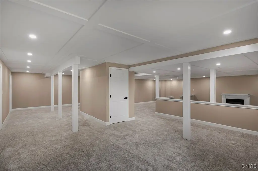 This magnificent custom-built Colonial residence is situated on over 18 acres of land, surrounded by beautifully landscaped grounds that enhance its overall curb appeal. The property features 4-5 bedrooms, two full bathrooms, and one half bathroom. As you step inside, you are greeted by a welcoming foyer, formal dining and living areas, and a recently updated kitchen with a convenient coffee station that flows into the cozy family room with a gas fireplace. The family room is bright and airy with plenty of windows and sliders that open up to the spacious back deck overlooking the lush yard. Additional amenities include a butler's pantry, mudroom with hooks, and a half bathroom. Upstairs, you will find a laundry room, a primary bedroom with an updated ensuite bathroom featuring a double vanity, soaking tub, tiled shower, water closet, and walk-in closet. There are also three more bedrooms, a bonus room above the garage that can serve as a fifth bedroom or office, and another updated full bathroom. The finished lower level offers an additional 1000 square feet of living space with a gas fireplace. Located in the award-winning Skaneateles school district and just a short drive away from schools and the village center, this exceptional property is truly a gem.