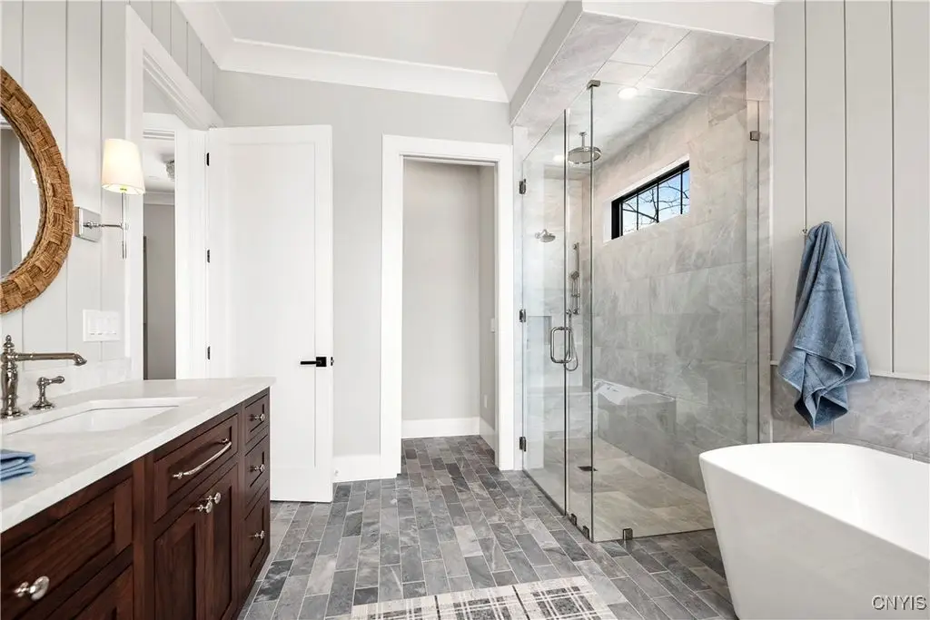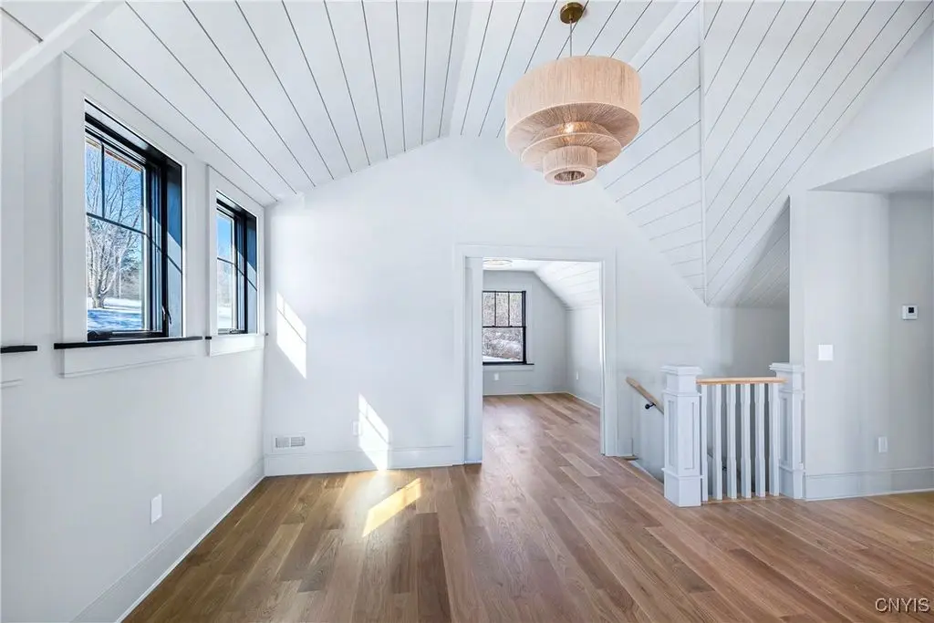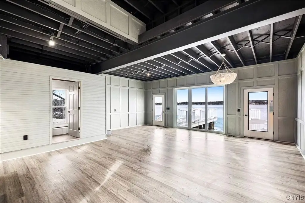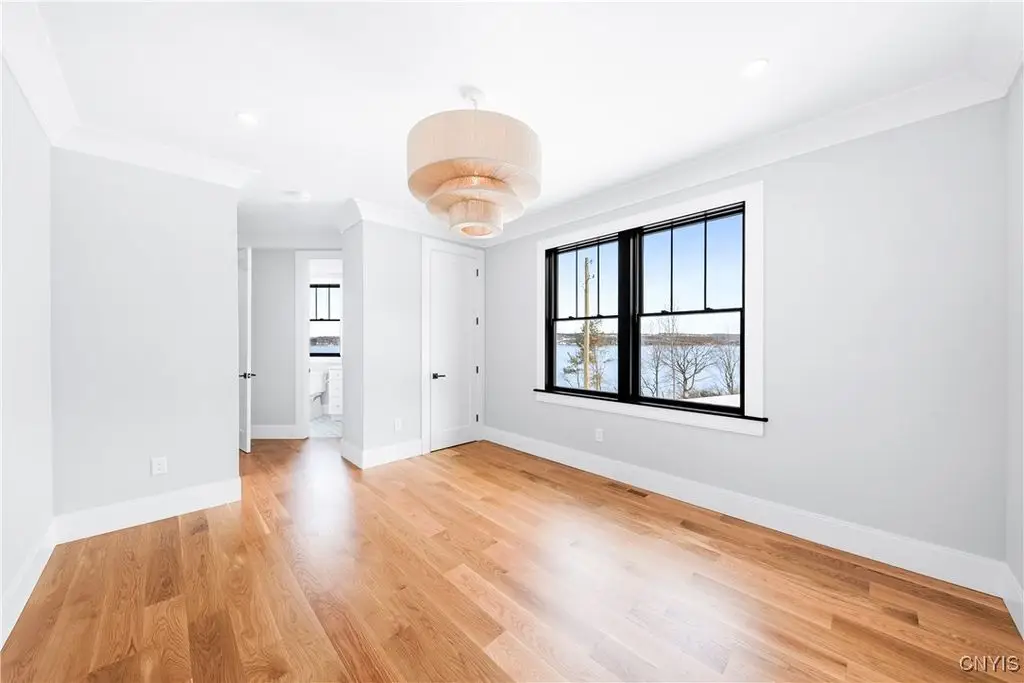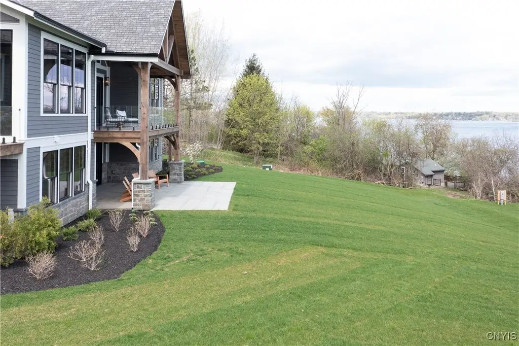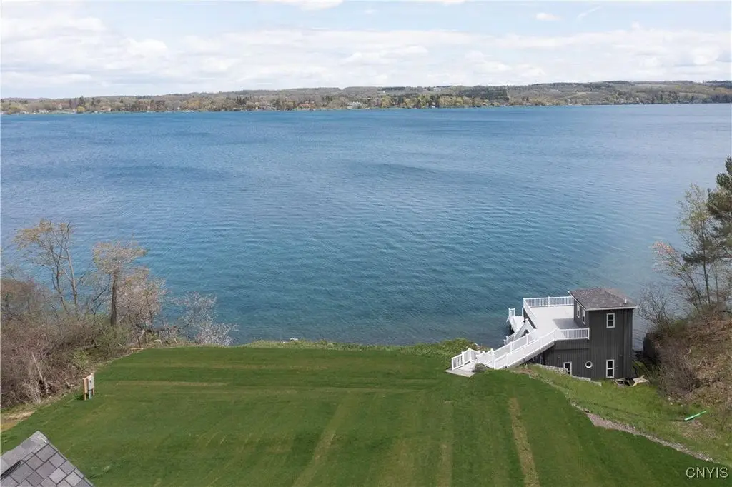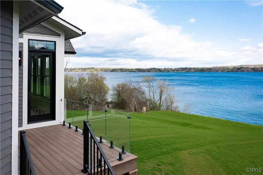 A stunning luxury lake house, custom-built just two miles from the village center, sits on 26.7 acres with 389 feet of exclusive private Skaneateles waterfront. This magnificent home features 5 bedrooms, 5 full baths, and 2 half baths. Upon entering, the grand vaulted ceilings immediately capture your attention, offering breathtaking views of the lake. The open floor plan effortlessly connects each room, showcasing water views, exquisite moldings and hardwood floors throughout. The first floor includes a private office with a built-in coffee station, a formal dining room, and a family room with a striking gas fireplace. Sliding doors lead to an expansive deck with glass railings that illuminate at night, creating a magical ambiance. The chef's kitchen is a culinary masterpiece, with custom cabinets, built-in refrigerator and freezer, a spacious island with marble countertops, and a commercial-grade stove with a custom wood hood vent. A butler's pantry with a second dishwasher and beverage drawers adds convenience for entertaining. The primary bedroom on the first floor features a private deck, a custom California walk-in closet, and a luxurious primary bath with double vanity, soaking tub, heated tile floors, a water closet, heated floors and glass surround shower. Another bedroom on the first level has its own en-suite bath. The second level includes a bedroom, loft area, and a full bath. The lower finished walkout level boasts a second family room with a stone fireplace, sliders to an oversized patio, a custom-made bar with glass backsplash and black walnut countertops, and an ice maker. Two additional bedrooms, two full baths, and a second laundry area complete this level. Outside, a two-level boathouse sits on 389 feet of waterfront, featuring a kitchen with a refrigerator, icemaker, and microwave. The main level offers a beautiful gathering area and a half bath. This brand new custom-built home by S & R Custom Homes is a luxurious private retreat that embodies the best in lakeside living. With its flawless design, top-of-the-line amenities, breathtaking views, and ultimate privacy, this home is truly a masterpiece and a once-in-a-lifetime opportunity.