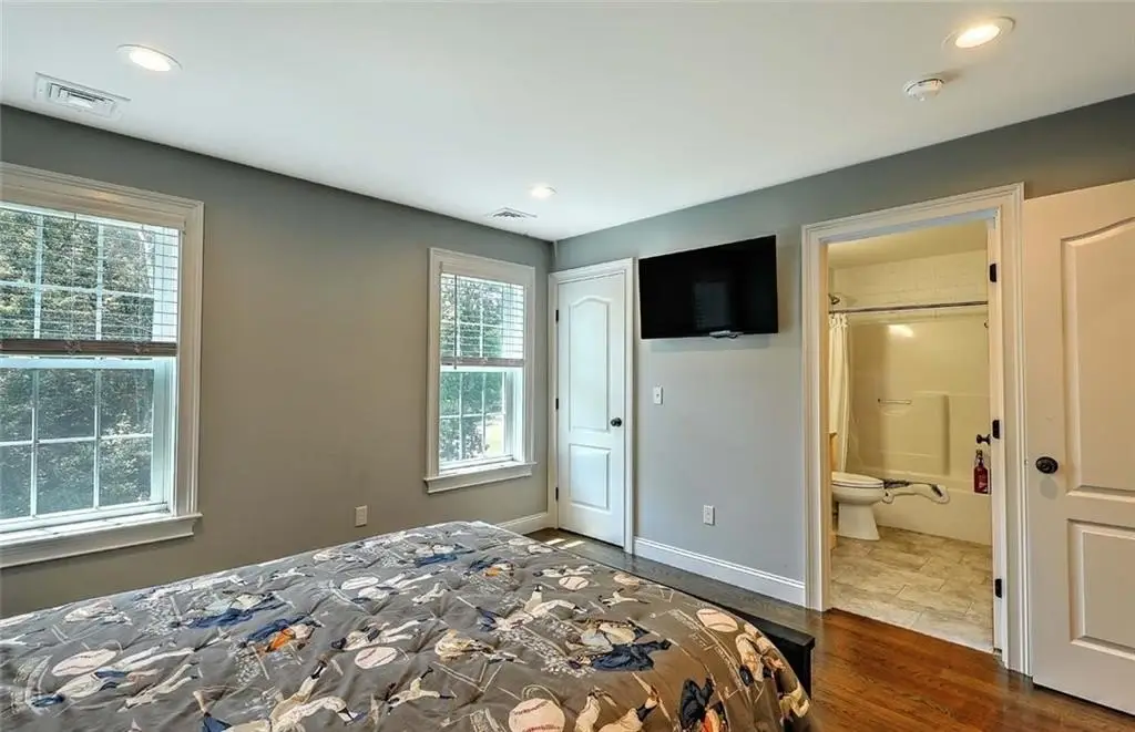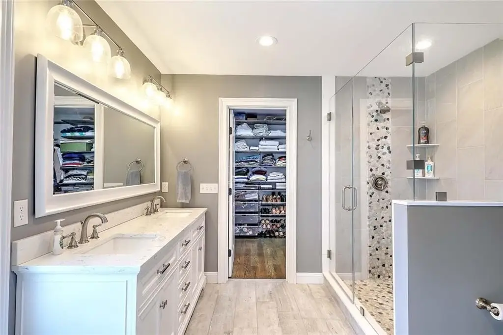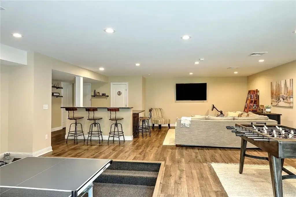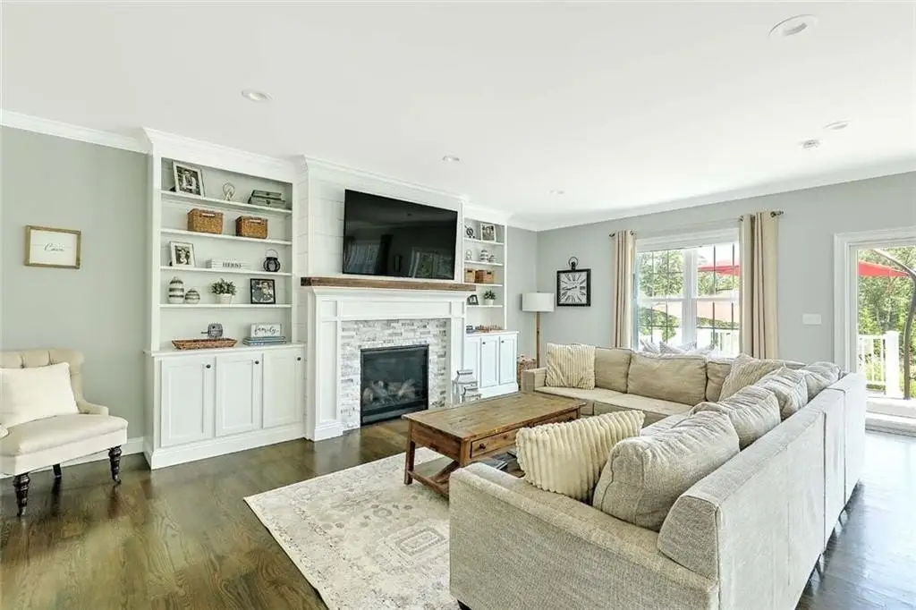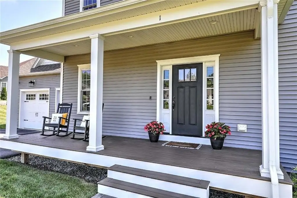 Ready to make this beautiful house your home, this modern Colonial in Smithfield is an end lot surrounded by 30+ acres of pristine conservation land. This 3-4-bedroom home, with potential to expand, was recently painted throughout and designed with an addition of an in-law apartment in mind. The main level features a bedroom and full bath, as well as an open-concept kitchen, open living and dining area. Custom built-in shelving frames the charming gas fireplace, walk-in pantry, beverage fridge, gas stove, farmers sink and sliders leading out to the deck and patio. From the garage, step into a spacious laundry/mudroom with ample cabinetry. Upstairs, you'll find an office, a bedroom with a walk-in closet & ensuite bath, plus an owner’s suite featuring a tiled glass shower and a custom walk-in closet. A large great room creates endless possibilities for a playroom, media room, or additional living space. The finished lower level includes a gym area, wet bar with fridge, and a half bath for entertaining a weekend crowd. Outside, added trees, additional landscaping, full fencing for pets completes this exceptional country abode. Laperche Elementary which is a state of Rhode Island Blue Ribbon School, Deerfield Park provides playgrounds, tennis courts, and trails. Close to the Crossings at Smithfield, Lincoln Mall, only 10 minutes away. Close proximity to highways for an easy commute to Boston or Providence. Contingent on finding suitable housing. Ask me about assumable VA at 2.25%