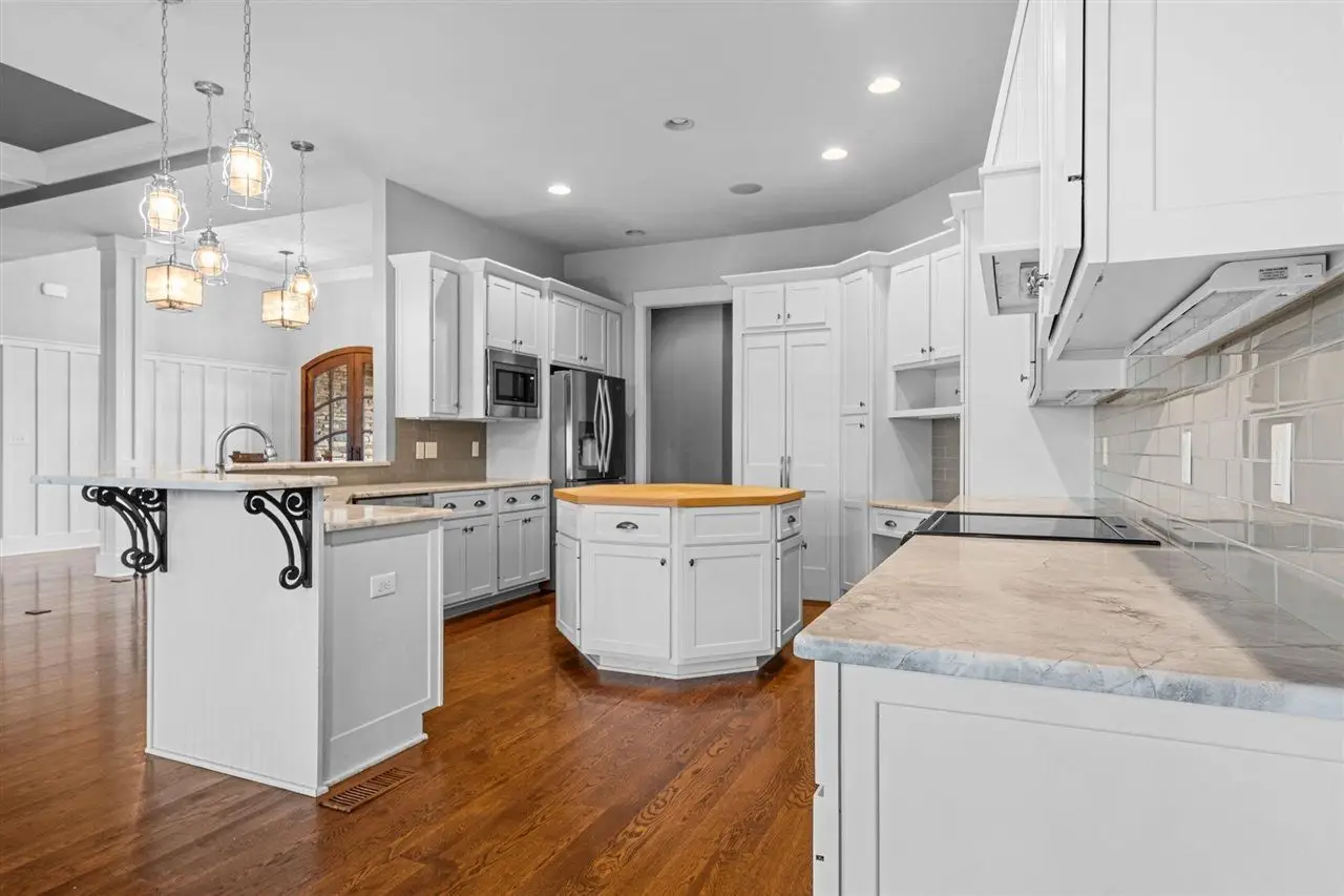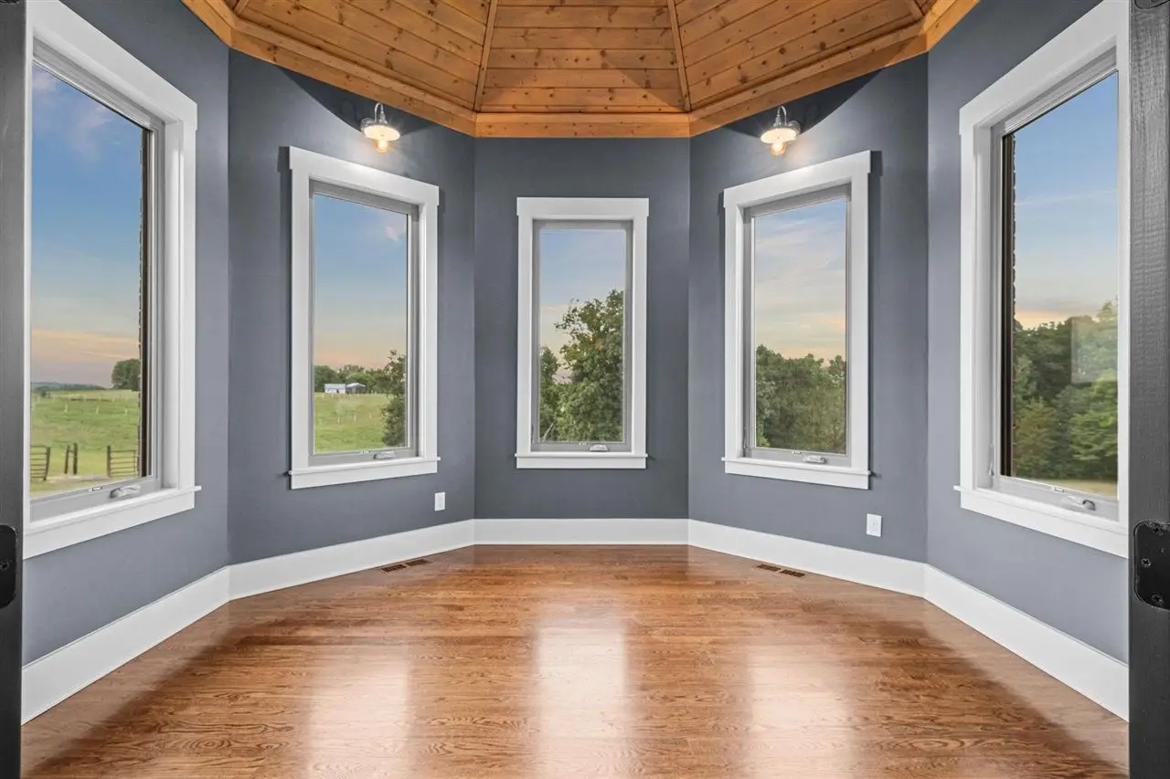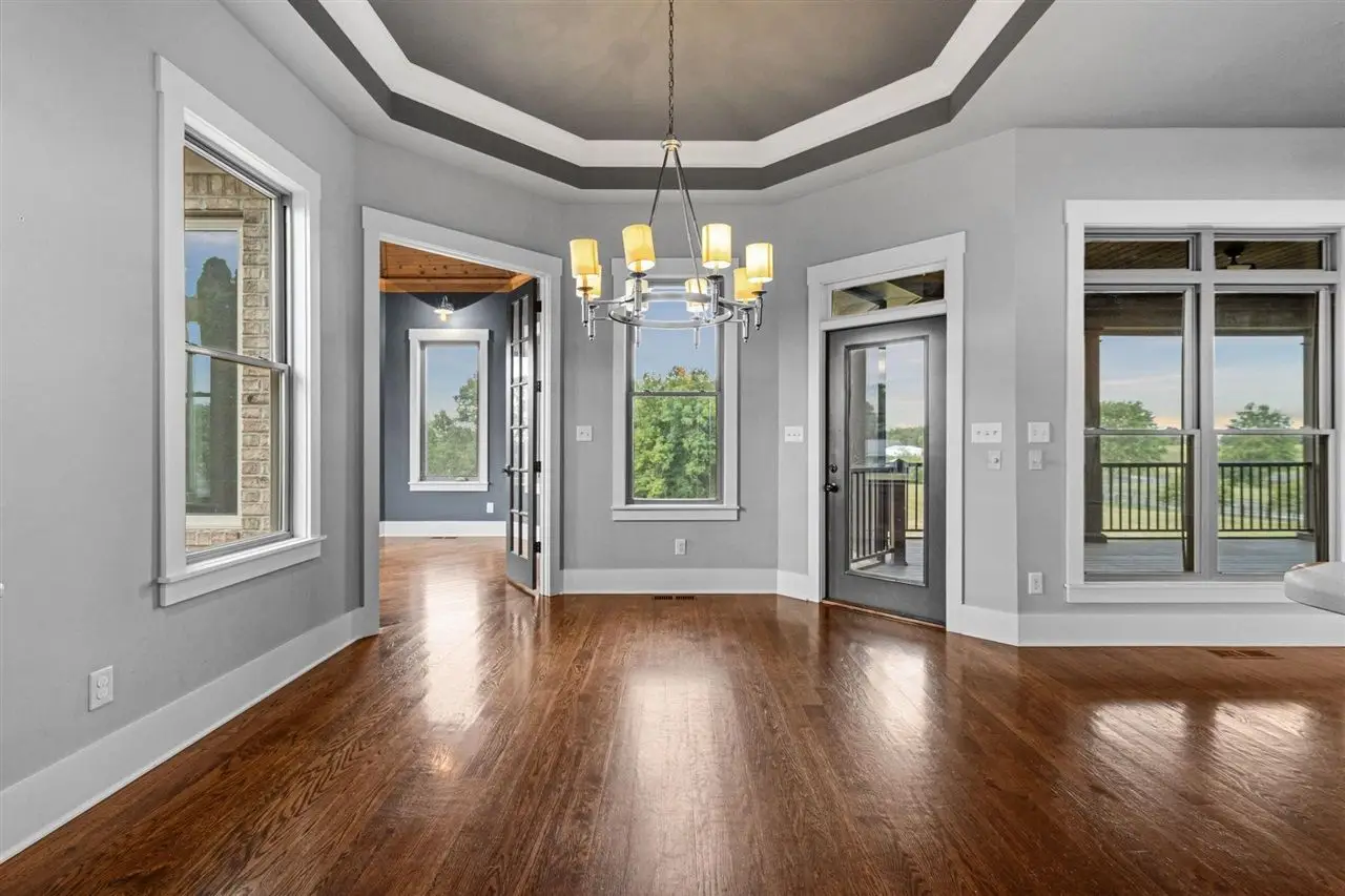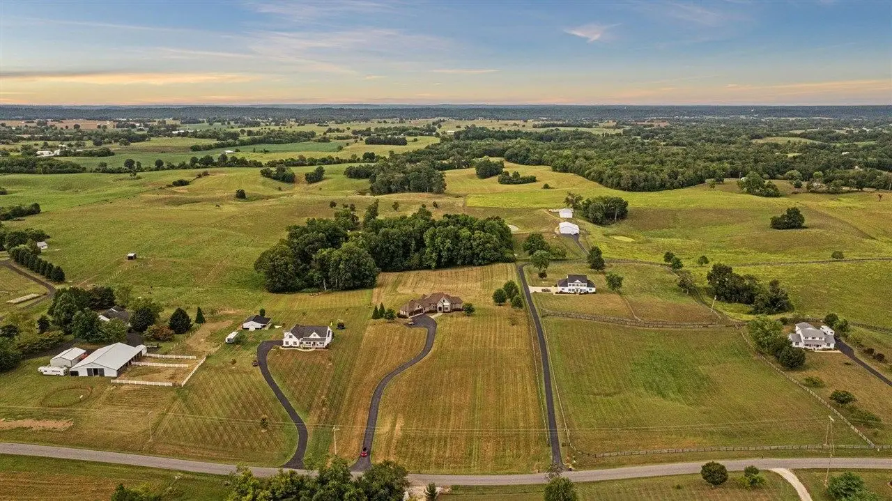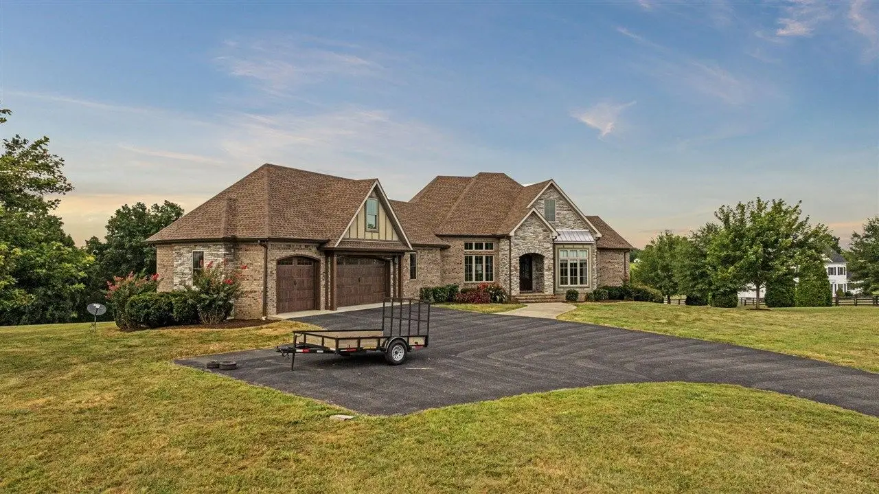 Nestled on seven beautiful acres, this stunning four-bedroom, four and a half-bath custom built home offers elegance, comfort, and functionality. A sweeping, spacious yard welcomes you to the property, providing plenty of room for outdoor activities, gardening, or simply enjoying the serene surroundings. Inside, the open-concept floor plan is filled with natural light and enhanced by thoughtful details such as coffered ceilings, designer selections and a cozy fireplace, creating a warm and inviting atmosphere. The kitchen is designed for both everyday living and entertaining, featuring a large walk-in pantry and easy flow to the dining and living spaces. The primary suite is a true retreat, complete with dual closets, a soaking tub, and a beautifully tiled shower. The fully finished walk-out basement expands the living space, offering a second kitchen, whole home surround sound system, and abundant storage. Perfect for gatherings or private guest quarters, this level provides flexibility for a variety of needs. Additionally the basement offers an extra finished space that can serve as a home gym, office or a secondary garage with exterior garage door access. Outdoor living is equally enjoyable with a screened porch ideal for relaxing evenings. Additional highlights include a three-car garage, tankless water heater, and thoughtful upgrades throughout. With its expansive acreage, modern amenities, and luxurious touches, this home combines peaceful country living with upscale comfort truly a must-see property.