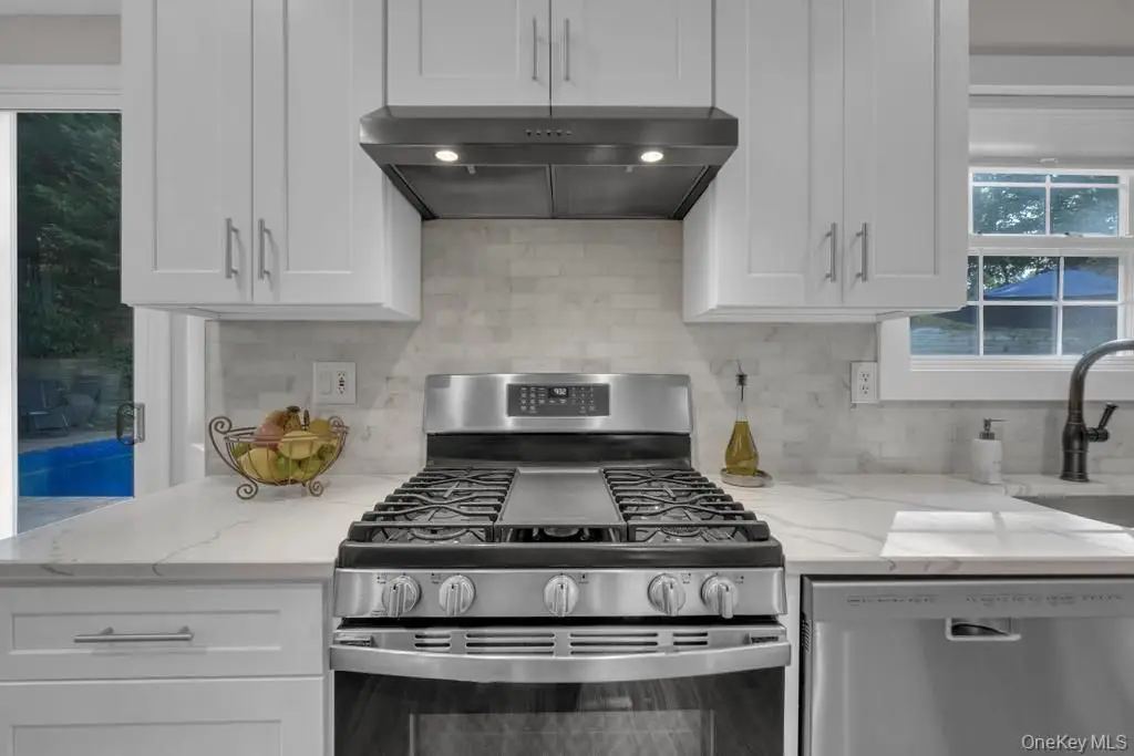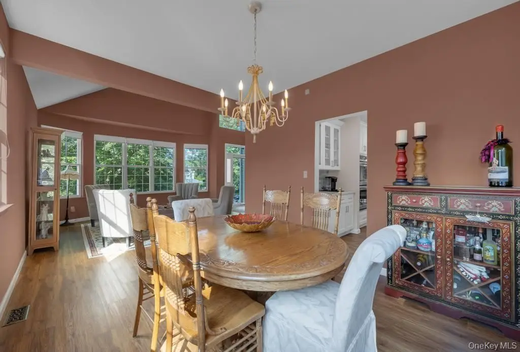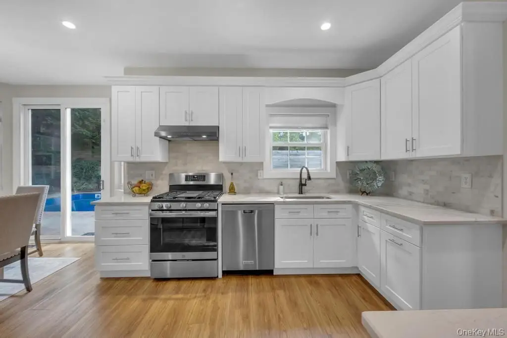 Welcome to 22 Whispering Woods Drive, located in the sought-after Smithtown School District! This beautiful home sits on a .35-acre property and boasts a true resort-style backyard. Step into the two-story entry foyer, where vaulted ceilings set the tone for this inviting home. The young, updated chef's kitchen is a true showstopper, offering plenty of counter space, a wine and coffee bar, and views of the stunning yard. Sliders off the kitchen lead to a paver patio, making summer barbecues easy and enjoyable. The yard is an entertainer's dream, featuring a sparkling inground pool with a new liner and heater, plus a relaxing hot tub. The first floor sitting room is the perfect place to unwind with a good book or can double as a home office. The thoughtful floor plan allows seamless entertaining between the living room, den, and kitchen, while the spacious dining room is ideal for hosting holiday gatherings. Upstairs, you'll find generously sized bedrooms, creating a private retreat for rest and relaxation. The full basement offers additional living space, perfect for a play area, home gym, or theater. Additional highlights include Updated roof and hot water system,150 Amp electric service, LED high hats throughout, Precast cesspool. This home blends style, function, and outdoor living for the ultimate lifestyle experience!