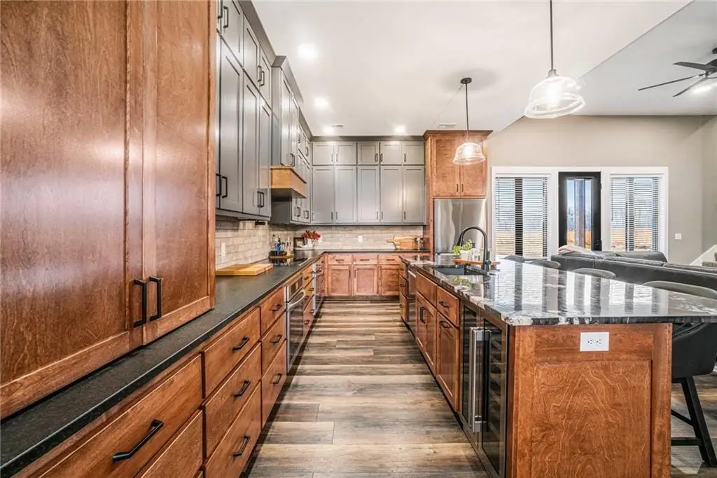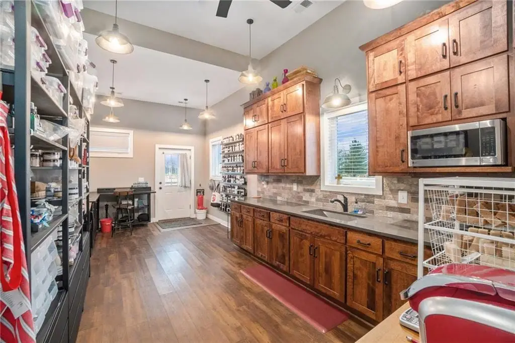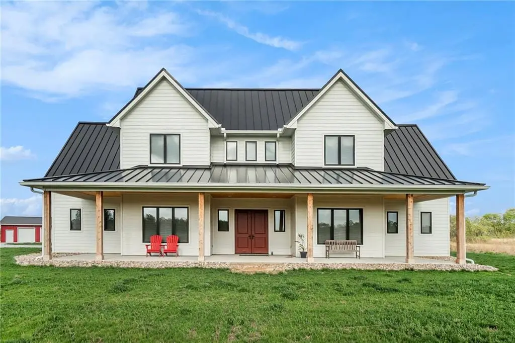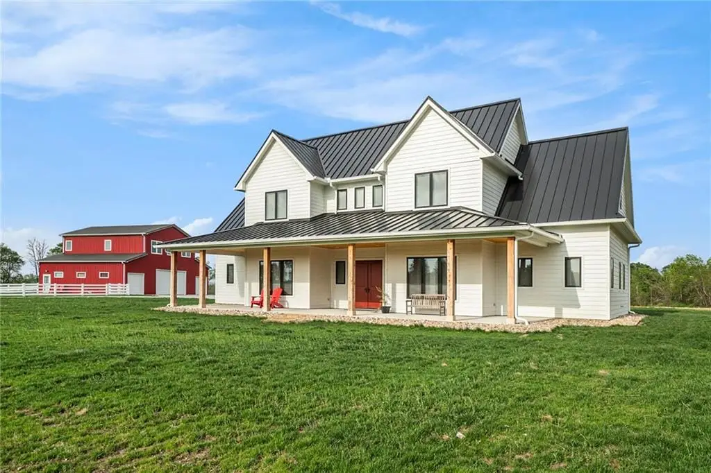 Just six months young, this breathtaking 3270 sq. ft. 1.5-story custom-built home is ready to impress! Nestled on a sprawling 20.75+/- acres, this property is an outdoor lovers paradise, offering endless opportunities for adventure. Designed with comfort and efficiency in mind, the home features geothermal heating and cooling, luxury vinyl plank flooring throughout, and built-in decorative shelving and cabinetry in the living room. The exceptional chef's kitchen boasts two-toned cabinets, built-in stainless steel appliances, an oversized island with exotic stone countertops, a walk-in pantry, and a spacious dining area. A large laundry/mudroom conveniently connects the kitchen and garage. The primary suite, located on the main level, is a true retreat with a spa-like ensuite featuring a walk-in shower, soaking tub, dual vanities, and an expansive 6x16 walk-in closet. Also on the main level is a dedicated office, perfect for remote work. Upstairs, four generously sized bedrooms, two full bathrooms, and a loft area create an ideal space for kids or guests, perfect for gaming, studying, or hanging out.Need additional living space? The big red barn includes finished living quarters upstairs, offering approximately 1,580 sq. ft. of space, complete with a living room, kitchen, dining area, two bedrooms, 1.5 bathrooms, an office, and an impressive garage/workshop area for vehicles, tools, and toys. Additionally, a detached two-car garage provides extra storage for gardening tools or the perfect setup for a He/She Shed entertainment space. This signature property, proudly presented by the Eric Craig Real Estate Team, is a rare find. Don't wait - schedule your private showing today!