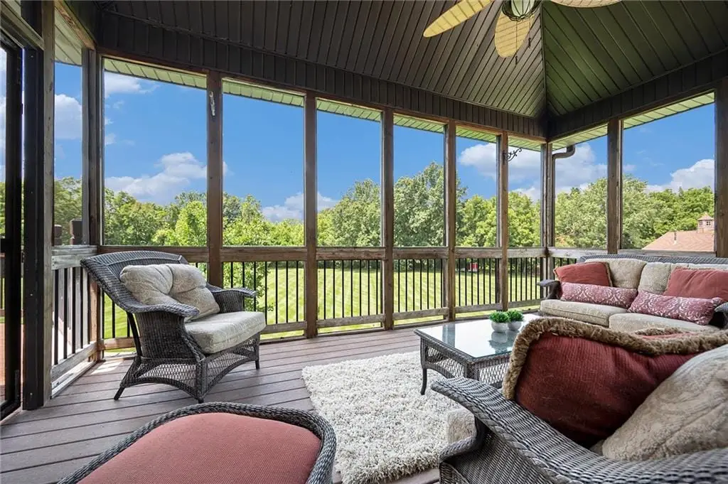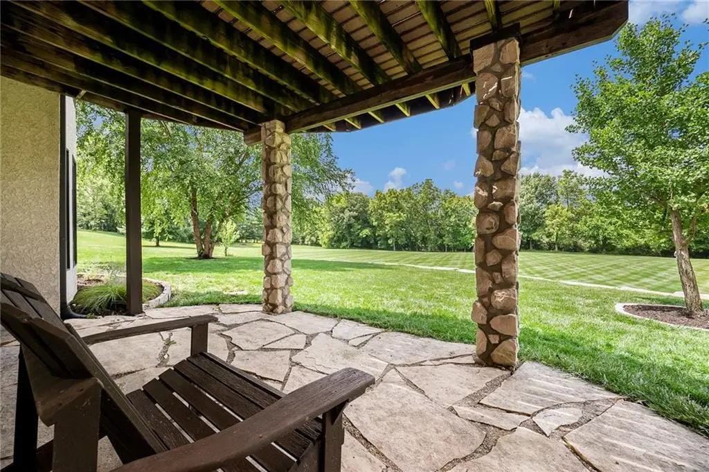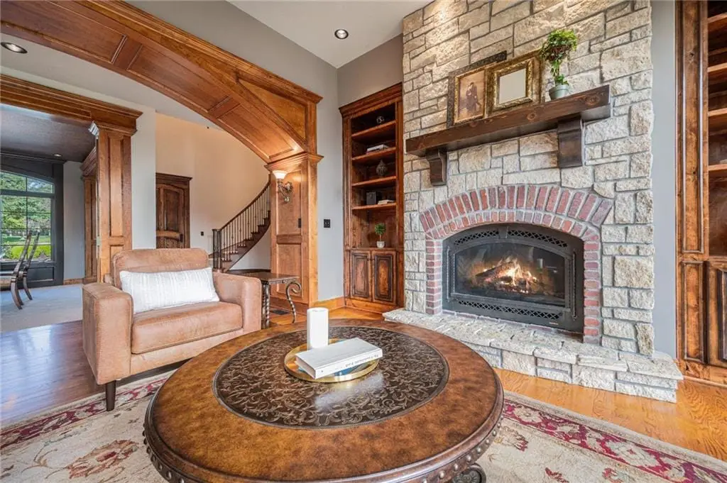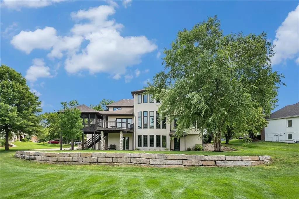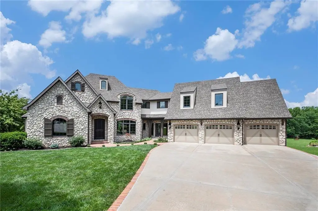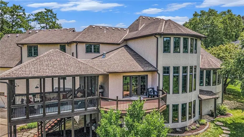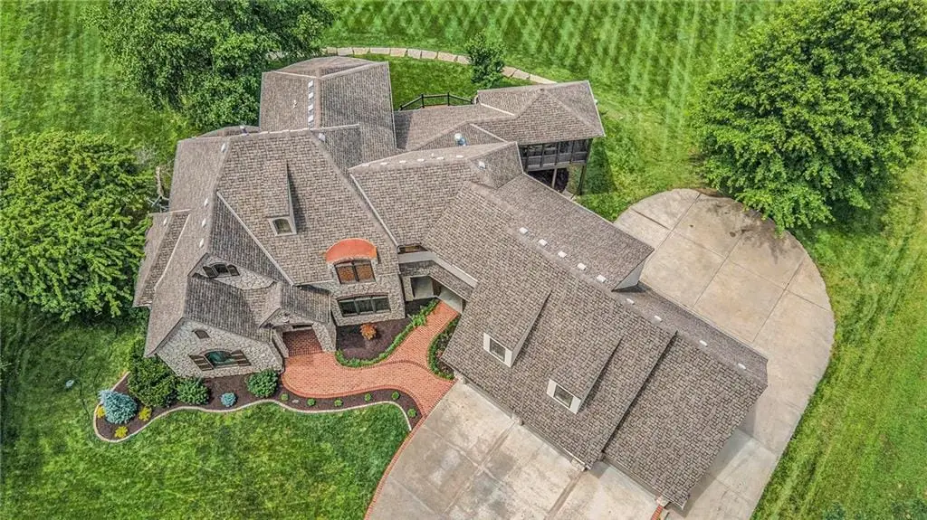 Tucked away on a quiet cul-de-sac in the desirable Strawberry Hill development, this impressive 1.5 story residence rests on a sprawling 1.76 acre lot. With quick access to The Litton Center, scenic walking trails, a play park & nearby Smithville Lake, the location offers both convenience & recreation. From the moment you arrive, the exterior showcases pride of ownership w/timeless curb appeal & meticulous care. Step inside to be greeted by a dramatic foyer featuring a curved staircase, soaring 2-story ceilings & rich, moody-traditional design details. Recently refinished hardwood floors, 2 geothermal HVAC systems (both in ground loop), computer-controlled Vantage Luxury Lighting, structured wiring & thoughtful upgrades throughout set this home apart. The great room makes a bold statement w/an arched wood entry, a striking stacked-stone fireplace flanked by custom built-ins & a wall of windows filling the space with natural light. The gourmet kitchen is designed for the chef at heart, offering knotty alder cabinetry, stone countertops, tile backsplash, built-in refrigerator, gas cooktop, oversized island & an exceptional walk-in pantry. Enjoy meals in the elegant formal dining room or the inviting 3-season room overlooking your private backyard. The main-level primary suite is a true retreat, boasting a coffered ceiling, spa-inspired ensuite w/dual custom vanities, large walk-in shower, jacuzzi tub & an expansive walk-in closet. Upstairs, discover 3 generously sized bedrooms, each with ample closet space & private or jack-and-jill bath access. The finished walkout lower level is designed as a full secondary living space - perfect for guests or multi-generational living. It includes a 2nd full kitchen, bedroom, bathroom, recreation/living areas, garage access & abundant storage. For entertaining, there’s even a theater/media room ready for movie nights or game day. Outside, the expansive backyard is ideal for gatherings, grilling, or tossing the football with friends.