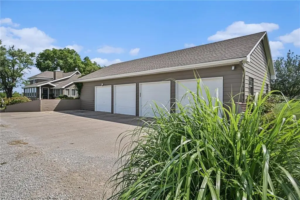 This gated property offers a unique blend of tranquility and modern living, situated on 29 picturesque acres with breathtaking views, including a 6-acre pond. The landscape features rolling hills and a variety of fruit trees, including apple, cherry, plum, pear, and peach. The equestrian enthusiast will appreciate the 7-stall horse barn equipped with electricity, a sheep barn and tractor barn, providing ample space for all your needs. A 4-car detached garage with large doors, perfect for SUVs and trucks, featuring a convenient 1/2 bath and an 8x12 concrete storm shelter for added safety. Enjoy outdoor living with covered patios and walkways leading to the garage, perfect for entertaining or relaxing. The home itself has been completely remodeled, featuring all new wiring and plumbing, a stunning kitchen with custom cabinets, high-end appliances, a butler's pantry area that any chef would adore. The primary bath and closet have also been fully renovated. The home features a newer roof, new HVAC, new windows, combining the charming character of an old farmhouse with the modern conveniences of today. The property is powered by GEOTHERMAL energy ensuring efficiency and sustainability. The pond is complete with a dock & stocked with bass, crappie, perch, and catfish. Experience the best of country living while being conveniently close to amenities and the airport. Don't miss this opportunity to own a slice of paradise!