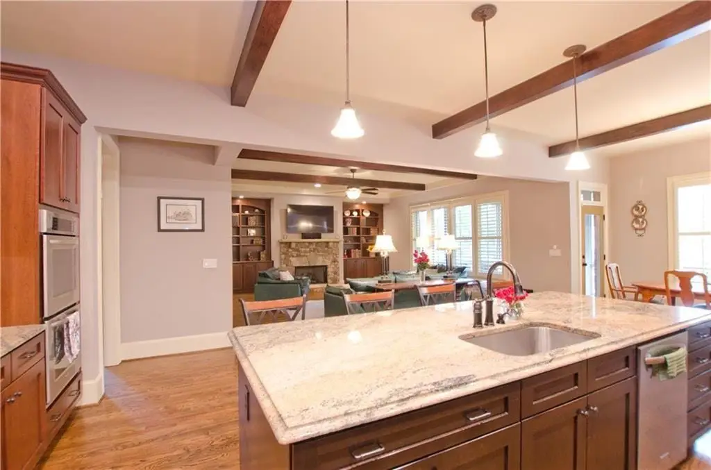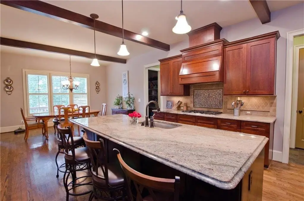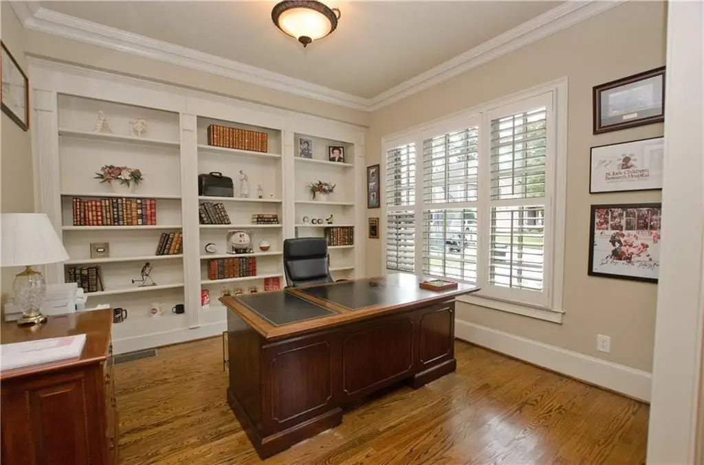 Location, Location, Location! Discover timeless sophistication in this exceptional Monte Hewett-built brick home offers timeless elegance, exceptional craftsmanship, and thoughtful upgrades throughout. Ideally located with easy access to Truist Park, The Battery, Home Depot HQ, major highways, shopping, and dining - this home truly has it all. This stately residence exudes craftmanship and style across all three levels, with rich hardwood floors, soaring ceilings, custom millwork. A welcoming two-story foyer leads to a spacious, open floor plan designed for refined living and effortless entertaining. A formal dining room with a butlers pantry offers the ideal setting for elegant dinner parties, while a private home office with custom built-ins bookcases provides both functionality and charm perfect for work from home professionals. At the heart of the home is a chefs dream kitchen featuring stainless steel appliances, double ovens, stained cabinetry, granite countertops, a large center island, and a generous walk-in pantry. The kitchen flows seamlessly into the impressive great room, complete with exposed wood beams, a striking stone fireplace with gas logs, custom built-ins bookcases, a wall of windows and a wet bar with a wine cooler. Retreat upstairs to a luxurious primary suite complete with a private sitting area, trey ceiling, and spa-inspired bath featuring dual vanities, a whirlpool tub, frameless glass shower, and a fully customized walk-in closet. Three additional spacious bedrooms ensure versatility for family, guests, or a second office. The fully finished terrace level - featuring a custom bar, wine cellar, fireside den with built-ins bookcases, exercise room, full bath, and a spacious game/billiards room for hosting in style. Seamless indoor-outdoor living includes a serene, screened porch, open-air deck, and a lower-level patio overlooking the professionally landscaped, irrigated yard - your private oasis in the city. This distinguished home combines elegance, comfort, and convenience in a premier community - offering a lifestyle of true luxury.