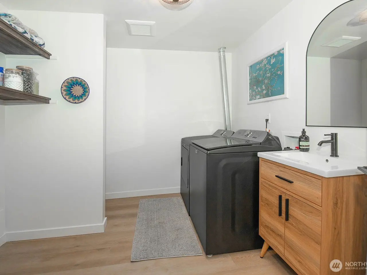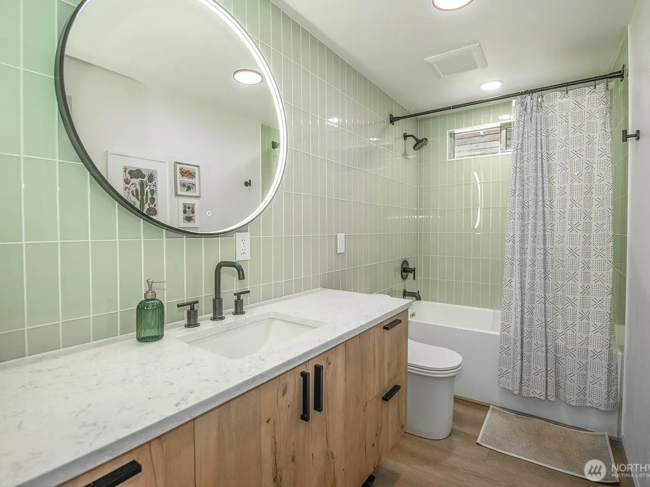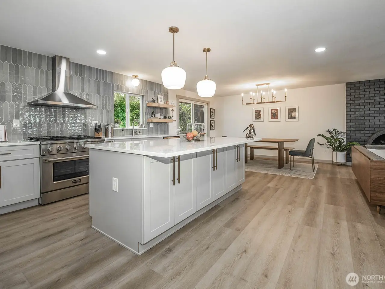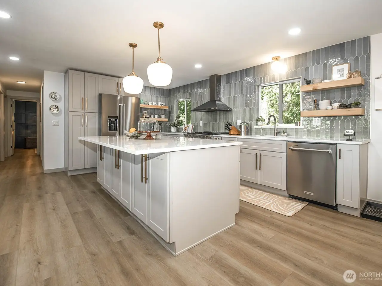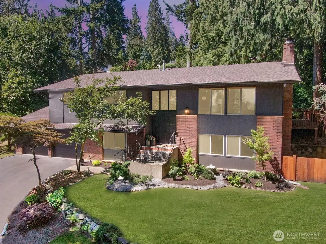Stunning, like-new split-level on a serene park-like lot in Kenwanda. Fully renovated with timeless charm and modern style. Designer kitchen with shaker cabinets, quartz counters, and oversized island, envouge hardware and high-end stainless appliances flows to dining and chic living area with painted brick fireplace. Oversized windows showcase partial Snohomish Valley and Cascade views. Primary suite with updated bath, two more beds, & full updated guest bath. Flexible lower level offers stylish rec room w/w/built-ins, fireplace, 4th bed, half bath & laundry, storage/flex room, plus private entry, ideal MIL/guest suite. Tranquil yard, big deck, 2-car garage w/ shop, newer roof, new furnace/water heater, Snohomish schools, and HWY 9 access.