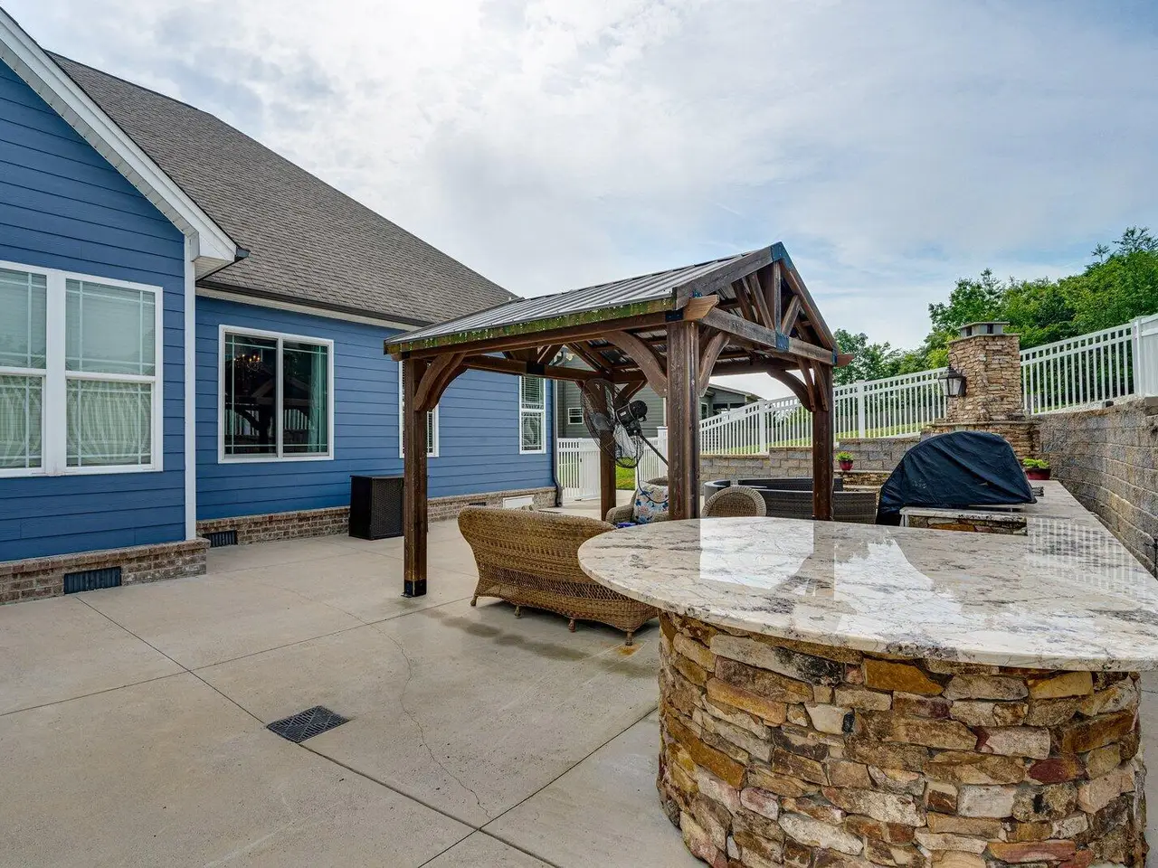 OPEN HOUSE JUNE 23RD 2:00-4:00 PM PRICE IMPROVEMENT!!! WELCOME to this stunning custom built, one owner home! From the impressive outdoor fountain with shrubs to the backyard that invites you to stay and play! This home has a space for all your wants and needs. Entering from the foyer you can't help notice the spacious open floor plan with a gathering room and soaring ceilings, floor to ceiling fireplace, built-in cabinetry, connecting dining area, adjoining kitchen with granite countertops, cabinetry galore, extra large island that allows you to be a part of everything while in your kitchen includes wall oven, microwave, refrigerator, dishwasher, breakfast nook, and beverage center. The office, 2 or 3 main level guest bedrooms (current owner utilizes one of the bedrooms as a game room), Jack n Jill bath,, hallway half bath, and a large laundry/pantry. The private owner's suite includes an oversized jetted tub, walk-in shower (rain shower), and walk-in closet. Before exiting to the backyard don't forget the activity room with a wet bar and refrigerator. Located on the second level is a bonus room/multi-purpose with a full bath. The walk out attic is located on this level also, so no climbing wobbly attic steps to store your items. Next to the backyard area...salt water pool, slide, full outdoor kitchen, fireplace -gas or wood, gas grill, storage building, and ornamental fence surround this outdoor space where you will want to spend those warm summer days. Additionally, in 2018 the owner's had a vapor barrier installed. The water heater is gas tank-less & continuous...so you never run out of hot water! The front and back doors ( West Shore Home) and several windows (Renewal by Anderson-lifetime transferable warranty) were recently upgraded. More of the custom features are 36'' doorways and several ramps. The garage will accommodate 2 vehicles, with parking in the driveway or side entrance to the home.. THIS IS A MUST SEE!! Buyer is responsible to do their due diligence to verify that all information that is pertinent to them.