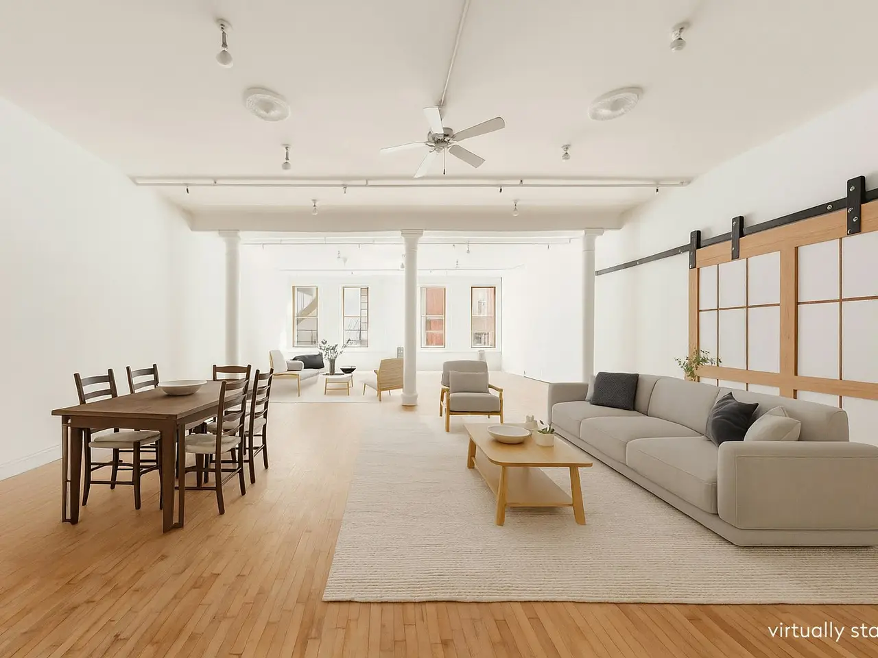 A True Soho Original Bring your architect and your creative vision to this classic 2,300SF artist loft located in a landmarked building right in the heart of Soho's historic Cast-iron District. Enter to an expansive 40-foot wide Great Room with 11-foot ceilings, original columns and bright east exposures from a wall of enormous oak-framed windows. The current layout features a large entertaining space with a set-back kitchen, a pin-drop quiet bedroom with floor-to-ceiling closets, two additional interior rooms and a full windowed bathroom with a washer-dryer. Whether you choose to move-in with the minimal amount of work, or completely gut renovate, this grand and flexible loft offers tremendous scale and an unmatched sense of peace and tranquility throughout. Built in 1896 and designed by G.A. Schellinger, the 6-story brick, terracotta and limestone building is part of an established 22-unit cooperative with a key-locked elevator, video intercom security system and private basement storage. The pet-friendly building is financially sound and responsibly managed. Pied-a-terre's and subletting are permitted. Best of all is the prime location, surrounded by historically significant architecture with great restaurants, cafes, world-class shopping and all modes of public transportation right at your doorstep. An ideal home for those who appreciate the real thing!